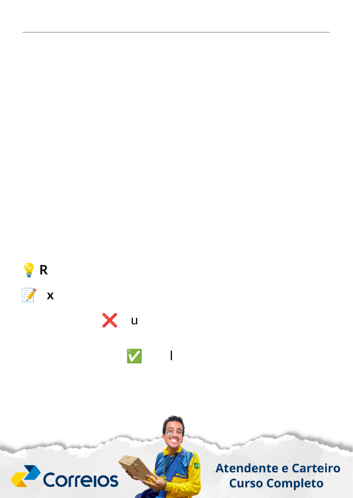<p>43</p><p>Questão 5:</p><p>Leia a frase a seguir e identifique a palavra que precisa</p><p>de acento:</p><p>"O juiz leu o acordão com atenção."</p><p>Pergunta:Qual palavra precisa de acento na frase?</p><p>● (A) "Juiz"</p><p>● (B) "Acordão"</p><p>● (C) "Atenção"</p><p>● (D) "Leu"</p><p>● (E)Nenhuma precisa de acento.</p><p>💡Resposta Correta: (B) "Acordão"</p><p>📝 Explicação:</p><p>● (A) "Juiz":❌ "Juiz" é uma paroxítona terminada</p><p>em "z" e não precisa de acento.</p><p>● (B) "Acordão":✅A palavra correta é "acórdão",</p><p>que é uma paroxítona e precisa de acento circunflexo</p><p>no "o".</p>