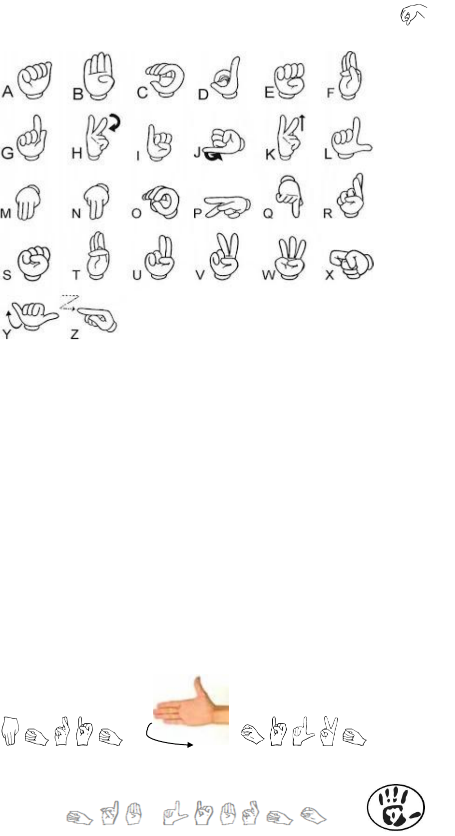 <p>4.2 Você sabe o que é DATILOLOGIA?</p><p>É a soletração de uma palavra utilizando o alfabeto digital ou manual de língua de</p><p>sinais. O alfabeto manual de Libras tem sua base no alfabeto da Língua Francesa de Sinais</p><p>e, neste, cada sinal corresponde a uma letra. A datilologia é comumente usada para</p><p>expressar substantivos próprios, também palavras que não possuem sinal conhecido ou,</p><p>ainda, palavras da língua portuguesa que foram incorporadas à Libras e, por isso, são</p><p>também soletradas como “nunca”, “oi” e “reais”. Importante! É importante frisar que o</p><p>emprego da datilologia não substitui ouso correto dos sinais, pois, assim como no</p><p>português, a Libras tem um léxico próprio, comunicado pelos sinais. E é bom destacar que,</p><p>a relação da pessoa surda com a língua portuguesa é diferenciada.</p><p>Agora que você já conhece o alfabeto manual, vamos praticar?</p><p>Faça seu nome completo em libras, nome de sua cidade, nome do seu bairro, nome</p><p>da sua mãe, nome de seu pai etc..</p><p>Praticando você vai memorizar rapidamente os sinais.</p><p>Obs. Palavras compostas necessitam da utilização de um sinal que indica o espaço entre</p><p>uma palavra e outra.</p><p>Ex:</p>