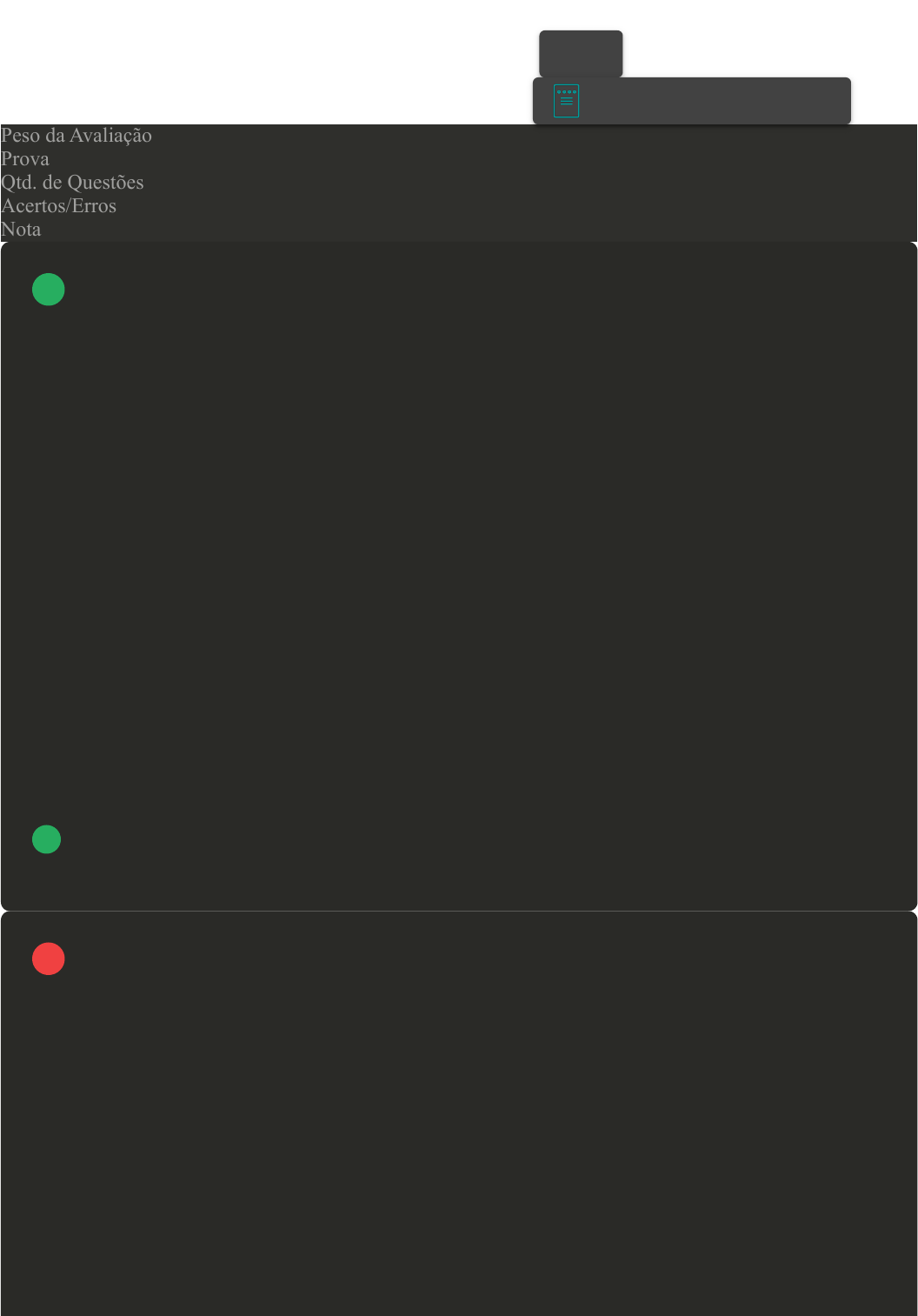 <p>Prova Impressa</p><p>GABARITO | Avaliação Final (Objetiva) - Individual</p><p>(Cod.:988248)</p><p>Peso da Avaliação 4,00</p><p>Prova 90778668</p><p>Qtd. de Questões 10</p><p>Acertos/Erros 8/2</p><p>Nota 8,00</p><p>Podemos definir o termo Gestão Ambiental como o conjunto de políticas, programas e práticas</p><p>administrativas e operacionais que levam em conta a saúde, a segurança das pessoas e a proteção do</p><p>meio ambiente, através da eliminação ou minimização de impactos ambientais decorrentes do</p><p>planejamento, implantação, operação, ampliação, realocação ou desativação de empreendimentos ou</p><p>atividades, incluindo-se todas as fases do ciclo de um produto. Ou seja, a Gestão Ambiental deve, ou</p><p>deveria, ser prevista antes mesmo da instalação de um determinado empreendimento.</p><p>Assinale a alternativa CORRETA que apresenta o sistema criado para orientar quanto à instalação</p><p>desses empreendimentos:</p><p>A SGL (Sistema de Gestão de Liberação).</p><p>B SGO (Sistema de Gestão Operacional).</p><p>C SGI (Sistema de Gestão para Instalação).</p><p>D SGA (Sistema de Gestão Ambiental).</p><p>As atividades que deverão realizar o licenciamento ambiental precedido de EIA/RIMA são aquelas</p><p>atividades modificadoras do meio ambiente que possam causar significativa degradação ambiental</p><p>e/ou de empreendimentos que também degradam o meio ambiente. Sobre as atividades que deverão</p><p>ser licenciadas pelo órgão federal, classifique V para as opções verdadeiras e F para as falsas:</p><p>( ) Obras de saneamento básico.</p><p>( ) Portos e terminais de minério, petróleo e produtos químicos.</p><p>VOLTAR</p><p>A+</p><p>Alterar modo de visualização</p><p>1</p><p>2</p><p>21/10/2024, 20:28 Avaliação Final (Objetiva) - Individual</p><p>about:blank 1/7</p><p>( ) Ferrovias.</p><p>( ) Manutenção das redes de distribuição de energia elétrica com baixa tensão.</p><p>Assinale a alternativa que apresenta a sequência CORRETA:</p><p>A F - V - F - F.</p><p>B F - V - V - F.</p><p>C V - V - V - V.</p><p>D V - F - F - V.</p><p>Imagine que o interessado em abrir uma pequena fábrica entrou em contato com você para</p><p>esclarecer algumas dúvidas com relação ao Licenciamento Ambiental junto ao Órgão Ambiental</p><p>Estadual. Questionamentos quanto ao processo de Licenciamento são levantados. Sobre as regras</p><p>inerentes aos instrumentos de Licenciamento Ambiental e EIA/RIMA, analise as sentenças a seguir:</p><p>I- A Licença de Instalação é a primeira licença ambiental a ser requerida.</p><p>II- Caso o empreendimento se enquadre nas hipóteses assim previstas em Resoluções CONAMA ou</p><p>ainda caso o empreendimento possa apresentar significativo impacto ambiental, será exigido Estudo</p><p>Prévio de Impacto Ambiental e respectivo Relatório de Impacto ao Meio Ambiente - EIA/RIMA.</p><p>III- O EIA/RIMA é exigido pelo Órgão Ambiental competente para o licenciamento somente após o</p><p>deferimento da Licença de Operação.</p><p>IV- Informações falsas ou enganosas incluídas pela equipe multidisciplinar no EIA/RIMA</p><p>caracterizam crime previsto expressamente na Lei 9.605/98.</p><p>Assinale a alternativa CORRETA:</p><p>A Somente a sentença II está correta.</p><p>B As sentenças III e IV estão corretas.</p><p>C As sentenças I e IV estão corretas.</p><p>D As sentenças II e IV estão corretas.</p><p>Sabe-se que há determinadas diferenças entre licença e o processo de licenciamento.</p><p>Revisar Conteúdo do Livro</p><p>3</p><p>4</p><p>21/10/2024, 20:28 Avaliação Final (Objetiva) - Individual</p><p>about:blank 2/7</p><p>Diante disso, assinale a alternativa CORRETA:</p><p>A A licença é um procedimento administrativo e o licenciamento ambiental são atos administrativos</p><p>de controle preventivo das atividades potencialmente poluidoras.</p><p>B</p><p>O licenciamento ambiental é o ato administrativo que impõem condições e medidas de controle</p><p>ambiental e a licença é um procedimento que compreende a instauração do processo, o</p><p>licenciamento prévio, o licenciamento de instalação e o licenciamento de operação.</p><p>C A licença ambiental é um ato administrativo de controle preventivo das atividades potencialmente</p><p>poluidoras, enquanto que o licenciamento ambiental é um procedimento administrativo.</p><p>D Não existe diferença entre os termos, os dois se referem ao procedimento administrativo.</p><p>Na administração da qualidade de uma empresa é importante que certos aspectos sejam observados</p><p>para o bom funcionamento do Sistema de Gestão Ambiental (SGA).</p><p>Assinale a alternativa CORRETA que apresenta o nome do processo utilizado para o controle e</p><p>melhoria contínua de processos e produtos:</p><p>A Fluxograma Vertical.</p><p>B Ciclo PDCA.</p><p>C Ciclo de Gestão Organizacional.</p><p>D Especificação Técnica.</p><p>O Sistema de Gestão Ambiental (SGA) permite à empresa avaliar e controlar os impactos ambientais</p><p>de suas atividades, produtos ou serviços, mas é importante que certos aspectos sejam observados para</p><p>o bom funcionamento do SGA, como a adoção do Ciclo PDCA ou Ciclo de Deming.</p><p>Assinale a alternativa CORRETA que apresenta uma descrição sobre o PDCA:</p><p>Revisar Conteúdo do Livro</p><p>5</p><p>6</p><p>21/10/2024, 20:28 Avaliação Final (Objetiva) - Individual</p><p>about:blank 3/7</p><p>A O Ciclo PDCA ou ciclo de Deming é um método que se aplica para a recuperação de áreas</p><p>degradadas.</p><p>B O Ciclo PDCA ou ciclo de Deming é uma ferramenta de controle gerencial cuja finalidade é</p><p>monitorar a melhoria contínua de um processo e produtos de uma organização.</p><p>C O Ciclo PDCA ou ciclo de Deming é uma ferramenta de verificação de fatores institucionais,</p><p>econômicos e sociais vinculados ao processo decisório.</p><p>D O Ciclo PDCA ou ciclo de Deming é uma sigla formada por P