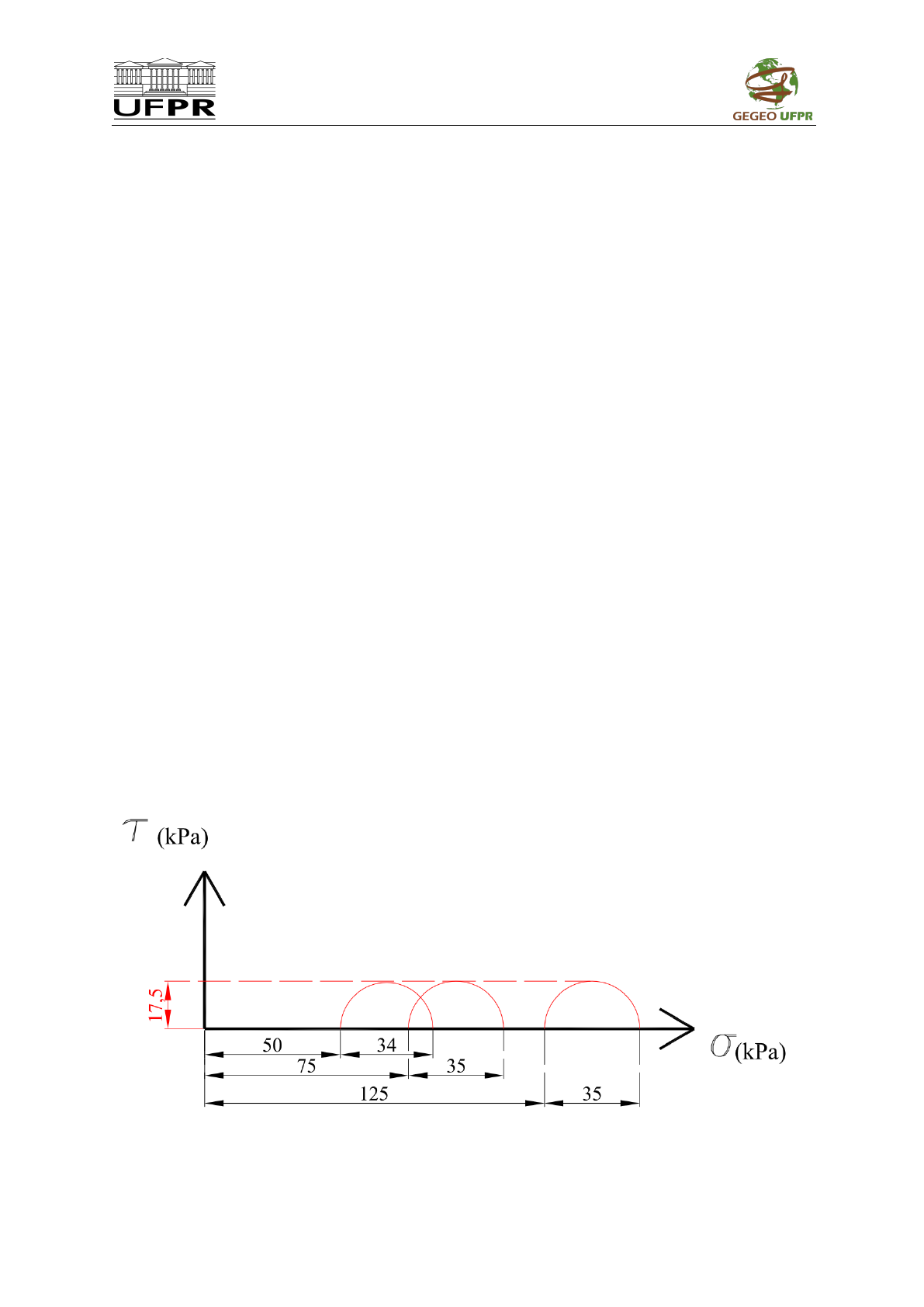 <p>Resistência 03.12</p><p>Amostras de uma argila normalmente adensada saturada foram submetidas a ensaios de</p><p>compressão triaxial do tipo UU (não adensado - não drenado), obtendo-se os seguintes</p><p>resultados:</p><p>1) Ensaio 1:</p><p>- Tensão confinante: 50 kPa.</p><p>- Tensão axial no momento de ruptura: 84 kPa.</p><p>2) Ensaio 2:</p><p>- Tensão confinante: 75 kPa.</p><p>- Tensão axial no momento de ruptura: 110 kPa.</p><p>3) Ensaio 3:</p><p>- Tensão confinante: 125 kPa.</p><p>- Tensão axial no momento de ruptura: 160 kPa.</p><p>Com base nessas informações, quais os parâmetros de resistência em termos de tensão</p><p>total desse solo?</p><p>Resolução 03.12</p><p>133</p><p>Rev. 00 Out/2021</p>