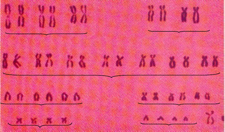 <p>RESUMO PROVA DE GENÉTICA</p><p>AULA 01 – Genética Clássica e Molecular</p><p>· Os cromossomos humanos são classificados em grupos (A a G) de acordo com o tamanho e morfologia.</p><p>A</p><p>C</p><p>E</p><p>D</p><p>F</p><p>G</p><p>B</p><p>Conceitos gerais</p><p>1. Genes e Alelos:</p><p>· Genes: Segmentos de DNA que contêm informações para a produção de proteínas.</p><p>· Alelos: Diferentes versões de um gene que podem existir em um locus específico.</p><p>2. Cromossomos Homólogos:</p><p>· Pares de cromossomos que têm a mesma sequência de genes, mas podem ter alelos diferentes. Um é herdado do pai e o outro da mãe.</p><p>3. Cromossomos Autossômicos:</p><p>· Cromossomos que não estão envolvidos na determinação do sexo. Humanos têm 22 pares de cromossomos autossômicos.</p><p>4. Cromossomos Sexuais:</p><p>· Cromossomos que determinam o sexo de um indivíduo. Humanos têm dois: X e Y. Mulheres têm XX e homens têm XY.</p><p>5. Cromátides Irmãs e Não Irmãs:</p><p>· Cromátides Irmãs: Duas cópias idênticas de um cromossomo, unidas pelo centrômero.</p><p>· Cromátides Não Irmãs: Cromátides de cromossomos homólogos que não são idênticas.</p><p>6. Genótipo:</p><p>· A composição genética de um organismo, ou seja, os alelos que ele possui.</p><p>7. Fenótipo:</p><p>· As características observáveis de um organismo, resultantes da interação do genótipo com o ambiente.</p><p>8. Dominante:</p><p>· Um alelo que expressa seu fenótipo mesmo na presença de outro alelo diferente (recessivo).</p><p>9. Recessivo:</p><p>· Um alelo que só expressa seu fenótipo quando está em homozigose, ou seja, quando os dois alelos são iguais.</p><p>10. Cromossomo:</p><p>· Molécula de DNA que apresenta vários genes.</p><p>AULA 02 – Mitose e Meiose; Aberrações cromossômicas numéricas e estruturais</p><p>Mitose e meiose</p><p>DNA</p><p>Agnaldo Timóteo A - T (Adenina - Timina)</p><p>Gal Costa G - C (Guanina - Citosina)</p><p>RNA</p><p>Citosina, guanina, adenina e uracila</p><p>*Interfase</p><p>G1 – Síntese de RNA e proteínas</p><p>Recuperação do volume celular</p><p>S – Síntese de DNA</p><p>Duplicação dos centrômeros e centríolos</p><p>G2 – Acúmulo de energia</p><p>Síntese de tubulina</p><p>*Papel da Meiose</p><p>· Gerar gametas haploides;</p><p>· Gerar novas combinações gênicas.</p><p>*Topografia cromossômica</p><p>Aberrações cromossômicas</p><p>*Numéricas</p><p>· Euploidia: um ou mais conjuntos completos de cromossomos (+ ou - n);</p><p>· Aneuploidia: ganho ou perda de um ou mais cromossomos, mas não do conjunto inteiro (+ ou – 1).</p><p>*Estruturais:</p><p>· Balanceadas: manutenção da informação genética;</p><p>· Não-balanceadas: ganho ou perda de informação genética.</p><p>Tipos de aneuploidias</p><p>Autossômicas (cromossomos não-sexuais)</p><p>· Síndrome de Down (trissomia do 21) - 47, XX ou XY +21</p><p>· Síndrome de Edwards (trissomia do 18) - 47, XX ou XY +18</p><p>· Síndrome de Patau (trissomia do 13) - 47, XX ou XY +13</p><p>Alossômicas (cromossomos sexuais)</p><p>· Síndrome de Turner (monossomia) - 45, X</p><p>· Síndrome de Klinefelter (trissomia) - 47, XXY</p><p>· Síndrome do Triplo X (trissomia) - 47, XXX; 48, XXXX</p><p>· Síndrome do XYY (trissomia) - 47, XYY</p><p>Aberrações estruturais</p><p>· Mudanças na estrutura dos cromossomos, resultantes de uma ou mais quebras em um ou mais cromossomos e reunião em uma configuração diferente.</p><p>· Dois tipos essenciais: Balanceados e Não-Balanceados</p><p>*Rearranjos balanceados:</p><p>· Inversões e translocações;</p><p>· O complemento cromossômico é completo, sem ganho / perda de material genético;</p><p>· Efeitos clínicos somente quando danificam regiões funcionais;</p><p>· Não há mudança na localização das regiões cromossômicas.</p><p>*Rearranjos não-balanceados:</p><p>· Deleções, duplicações, cromossomos em anel, isocromossomos;</p><p>· o complemento cromossômico contém quantidade incorreta de material genético;</p><p>· Efeitos clínicos mais graves.</p><p>· Há alteração no nº de regiões cromossômicas.</p><p>*Deleção</p><p>· Perdas de regiões cromossômicas.</p><p>· Podem ser de dois tipos:</p><p>1. Deleção terminal;</p><p>2. Deleção intersticial.</p><p>· Consequências: perda do segmento acêntrico; desbalanço genômico e o desmascaramento de alelos letais recessivos.</p><p>Síndrome de Cri du Chat – estrutural</p><p>Deleção da ponta do braço curto de um dos homólogos do cromossomo 5</p><p>Síndrome Cromossomo 18 em anel</p><p>Síndrome de Pallister-Killian ou tetrassomia do braço curto do cromossomo 12 em mosaico</p><p>A tetrassomia X é uma anomalia dos cromossomas sexuais causada pela presença de dois cromossomas X extra em indivíduos do sexo feminino (48,XXXX, em vez de 46,XX).</p><p>Translocações</p><p>Dois tipos:</p><p>· Recíprocas: trocas de segmentos entre os cromossomos não-homólogos que sofreram quebras, gerando dois cromossomos translocados (Tipo mais comum)</p><p>· Não-recíprocas/ simples: o segmento de um cromossomo liga-se a outro, sem que haja toca entre eles.</p><p>Translocações Robertsonianas: tipo especial de translocação, em que dois cromossomos acrocêntricos sofrem quebras nas regiões centroméricas, havendo trocas de braços cromossômicos inteiros.</p><p>AULA 03 - Padrões de Herança Cromossômica I</p><p>· Autossômica Recessiva</p><p>· Autossômica Dominante</p><p>· Ligada ao X recessiva</p><p>**Autossômico recessivo</p><p>· Gene localizado num cromossomo autossômico;</p><p>· Ambos os sexos têm a mesma probabilidade de serem afetados;</p><p>· Expressam-se apenas em homozigotos recessivos (aa, bb, cc, etc);</p><p>· Os pais obrigatoriamente são portadores do alelo recessivo (normais portadores ou ter leves sintomas).</p><p>· O fenótipo pode ficar por várias gerações sem aparecer.</p><p>· Exemplos de herança: 