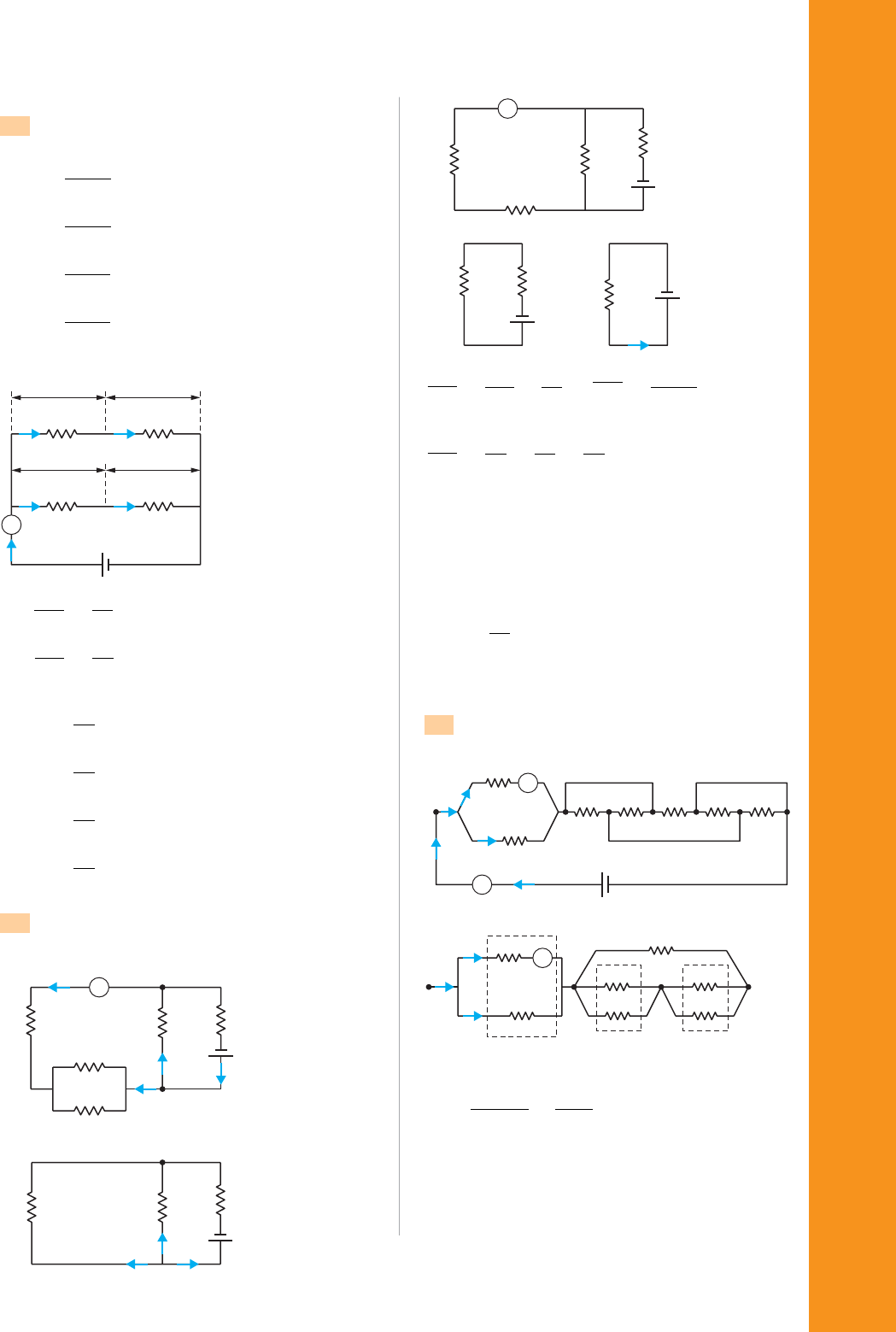 <p>RESOLUÇÃO 253</p><p>SIM</p><p>ULA</p><p>DÃO</p><p>: RE</p><p>SOL</p><p>UÇÃ</p><p>O</p><p>SIM</p><p>ULA</p><p>DÃO</p><p>: RE</p><p>SOL</p><p>UÇÃ</p><p>O</p><p>786 Alternativa a.</p><p>• Cálculo das resitências elétricas das lâmpadas:</p><p>L1: R1 �</p><p>( )20</p><p>10</p><p>2</p><p>� 40 Ω</p><p>L2: R2 �</p><p>( )20</p><p>20</p><p>2</p><p>� 20 Ω</p><p>L3: R3 �</p><p>( )10</p><p>5</p><p>2</p><p>� 20 Ω</p><p>L4: R4 �</p><p>( )10</p><p>10</p><p>2</p><p>� 10 Ω</p><p>• O circuito equivalente fica:</p><p>1</p><p>Rp</p><p>�</p><p>1</p><p>18</p><p>�</p><p>1</p><p>9</p><p>→</p><p>1</p><p>Rp</p><p>�</p><p>1 2</p><p>18</p><p>�</p><p>Rp � 6 Ω</p><p>1</p><p>Rp</p><p>�</p><p>1</p><p>9</p><p>�</p><p>1</p><p>9</p><p>�</p><p>2</p><p>9</p><p>→ Rp � 4,5 Ω</p><p>Rs � 3 � 6 � 9 Ω</p><p>A resistência equivalente do circuito é:</p><p>Req � 6 Ω</p><p>b) U � R � i → 12 � 6i</p><p>i � 2 A</p><p>Mas:</p><p>i1 � i2 �</p><p>i</p><p>2</p><p>→ i1 � 1 A</p><p>c) PXY � RXYi2</p><p>2 → PXY � 9 � 12</p><p>PXY � 9 W</p><p>788 Alternativa d.</p><p>i</p><p>U3</p><p>U1</p><p>U4</p><p>U2</p><p>A</p><p>i2 40 � 20 �</p><p>20 � 10 �i1</p><p>i2</p><p>i1</p><p>20 V</p><p>i1 �</p><p>20</p><p>30</p><p>�</p><p>2</p><p>3</p><p>A</p><p>i2 �</p><p>20</p><p>60</p><p>�</p><p>1</p><p>3</p><p>A</p><p>i � i1 � i2 � 1 A (indicação do amperímetro)</p><p>U1 � 20 �</p><p>2</p><p>3</p><p>� 13,4 V</p><p>20 V (não queima)</p><p>U2 � 10 �</p><p>2</p><p>3</p><p>� 16,6 V</p><p>10 V (não queima)</p><p>U3 � 40 �</p><p>1</p><p>3</p><p>� 13,4 V</p><p>20 V (não queima)</p><p>U4 � 20 �</p><p>1</p><p>3</p><p>� 6,6 V</p><p>10 V (não queima)</p><p>787 a)Simplificando o circuito, temos:</p><p>3 � 9 �</p><p>18 �</p><p>9 �</p><p>1,5 �</p><p>12 V</p><p>i1</p><p>A</p><p>x</p><p>y</p><p>i1</p><p>i2</p><p>x</p><p>9 � 9 � 1,5 �</p><p>12 V</p><p>i2</p><p>i1 i</p><p>3 � 9 �</p><p>6 �</p><p>1,5 �</p><p>12 V</p><p>A</p><p>⇒�</p><p>4,5 � 1,5 �</p><p>12 V</p><p>6 � 12 V</p><p>i</p><p>i2</p><p>i1</p><p>i</p><p>i</p><p>12 �</p><p>5 �</p><p>4 � 4 � 5 � 6 � 6 �</p><p>A1</p><p>A2</p><p>A</p><p>B</p><p>C C B</p><p>i</p><p>i1</p><p>Re1</p><p>4 �</p><p>4 �</p><p>20 �</p><p>5 �</p><p>5 �</p><p>6 �</p><p>6 �</p><p>A1</p><p>R2</p><p>C D</p><p>B</p><p>i2</p><p>i</p><p>"em pararelo"</p><p>"em</p><p>pararelo"</p><p>"em</p><p>pararelo"</p><p>(2)</p><p>Re1</p><p>�</p><p>20 5</p><p>20 5</p><p>�</p><p>�</p><p>�</p><p>100</p><p>25</p><p>� 4 Ω</p>