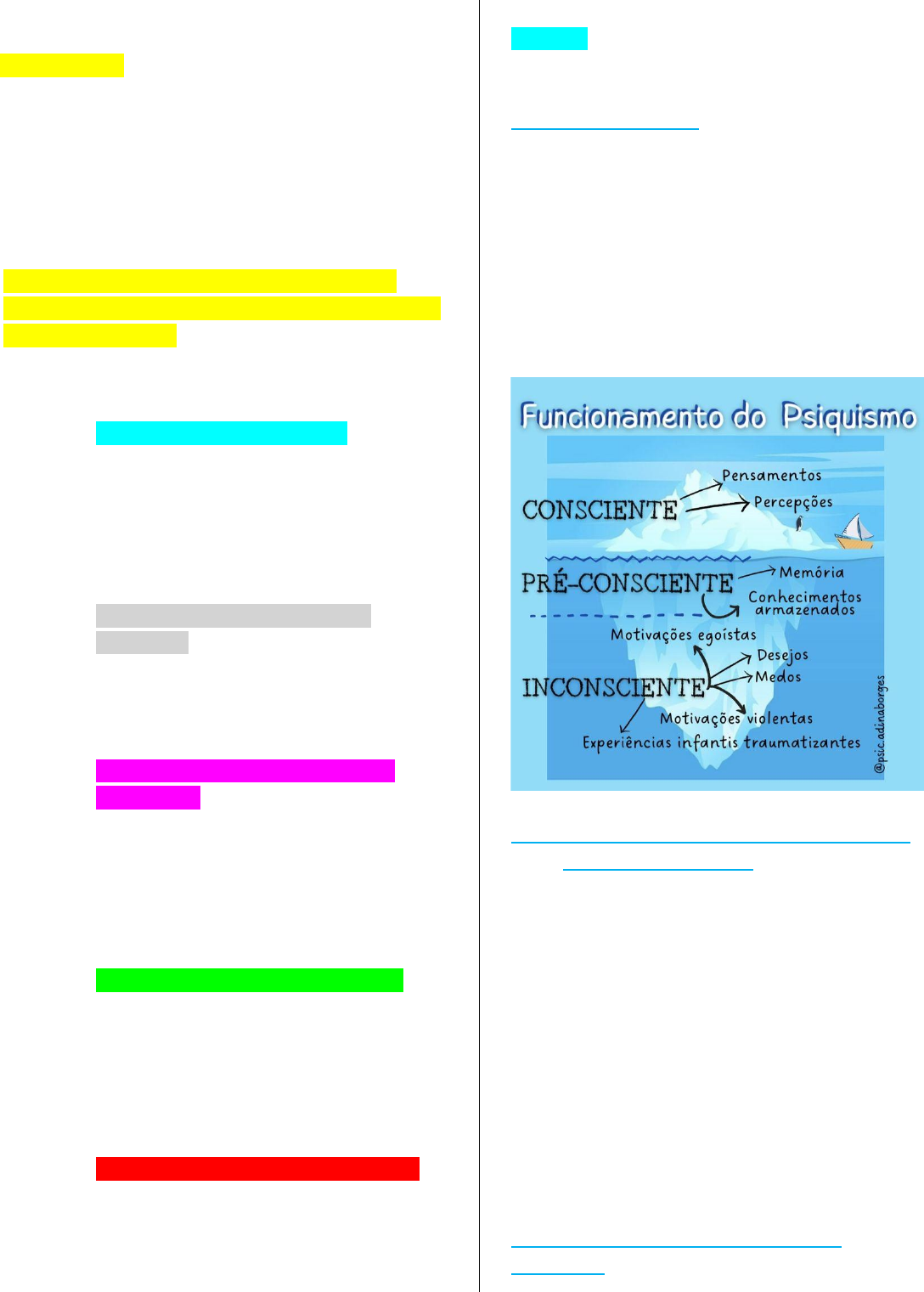 <p>N1 - TEORIAS DA PERSONALIDADE</p><p>Personalidade</p><p>Personalidade é um padrão de traços relativamente</p><p>permanentes e características únicas que dão</p><p>consistência e individualidade ao comportamento de</p><p>uma pessoa. Ela é composta por traços que</p><p>diferenciam os indivíduos e moldam a forma como</p><p>interagem com o mundo e com os outros.</p><p>Características são qualidades peculiares de um</p><p>indivíduo que incluem atributos como temperamento,</p><p>psique e inteligência.</p><p>Principais Teorias da Personalidade:</p><p>1. Teoria Psicanalítica (Freud):</p><p>Foca nos conflitos inconscientes, impulsos</p><p>instintivos e experiências da infância. A</p><p>personalidade é formada pela interação</p><p>entre o id (instintos), ego (realidade) e</p><p>superego (moral)</p><p>2. Teoria de Carl Jung (Psicologia</p><p>Analítica):</p><p>Divide o inconsciente em pessoal e</p><p>coletivo, que contém arquétipos</p><p>universais. Desenvolveu os conceitos de</p><p>3. Teoria de Alfred Adler (Psicologia</p><p>Individual):</p><p>Foca nas motivações sociais e no</p><p>sentimento de inferioridade. A</p><p>personalidade se desenvolve com base no</p><p>desejo de superar a inferioridade e</p><p>4. Teoria Comportamental (Skinner):</p><p>Defende que a personalidade é moldada</p><p>pelo ambiente, com comportamentos</p><p>reforçados ou punidos ao longo da vida. O</p><p>foco é no comportamento observável.</p><p>5. Teoria Humanista (Rogers, Maslow):</p><p>Valoriza o crescimento pessoal e a</p><p>autoatualização. Acredita que os seres</p><p>humanos têm uma tendência inata para</p><p>desenvolver seu potencial máximo.</p><p>FREUD:</p><p>Hipóteses do Funcionamento Psíquico segundo</p><p>Freud</p><p>Níveis de Consciência:</p><p>Freud propôs três níveis de consciência:</p><p>Consciente: Onde se encontram os pensamentos e</p><p>percepções imediatos.</p><p>Pré-consciente: Contém informações que podem</p><p>ser trazidas à consciência facilmente, como</p><p>memórias e conhecimentos.</p><p>Inconsciente: Armazena desejos reprimidos e</p><p>traumas, influenciando o comportamento de forma</p><p>inconsciente.</p><p>Estrutura da Personalidade (Id, Ego e Superego):</p><p>Freud dividiu a personalidade em três sistemas:</p><p>Id: Parte instintiva e impulsiva, opera segundo o</p><p>princípio do prazer;</p><p>Ego: Mediador entre o Id e a realidade, opera de</p><p>acordo com o princípio da realidade, buscando</p><p>maneiras racionais de satisfazer os impulsos. O</p><p>ego ressurge em importância como mediador entre</p><p>exigências contraditórias advindas da realidade</p><p>externa, do id e do superego;</p><p>Superego: Representa os valores morais e éticos</p><p>internalizados, julgando as ações com base no</p><p>certo e errado.</p><p>Modelo Dinâmico (Princípio de Prazer e</p><p>Realidade):</p><p>O funcionamento psíquico é marcado por um</p><p>conflito entre dois princípios:</p><p>Princípio do Prazer: O Id busca satisfação</p><p>imediata de desejos e evita a dor.</p><p>Princípio da Realidade: O Ego ajusta esses</p><p>impulsos às limitações da realidade e às normas</p><p>sociais, buscando formas adequadas de satisfazê-</p><p>los.</p><p>Pontos de vista:</p><p>➢ Dinâmico: Refere-se aos conflitos entre</p><p>forças opostas na mente (Id, Ego e</p><p>Superego), que geram tensões e moldam o</p><p>comportamento;</p><p>➢ Econômico: Foca na circulação e gestão</p><p>da energia psíquica (libido) no sistema</p><p>psíquico, e como o uso inadequado dessa</p><p>energia pode gerar sintomas;</p><p>➢ Topográfico: Divide a mente em três</p><p>níveis – consciente, pré-consciente e</p><p>inconsciente – e descreve como o</p><p>conteúdo de cada nível afeta o</p><p>comportamento e os processos mentais.</p><p>Pulsões:</p><p>• Pulsões de Vida (Eros): Relacionadas à</p><p>sobrevivência, reprodução, amor e</p><p>criatividade.</p><p>• Pulsões de Morte (Thanatos): Associadas</p><p>à agressividade, destruição e retorno a um</p><p>estado inanimado.</p><p>Essas pulsões são fundamentais para entender</p><p>a motivação humana e os conflitos internos</p><p>que podem levar a comportamentos e</p><p>emoções complexas.</p><p>Fonte: É corporal, não é psíquica. É um “processo</p><p>cuja excitação é somática que ocorre num órgão</p><p>ou parte do corpo e representada na vida mental</p><p>pela pulsão”</p><p>Força/Objetivo: O objetivo da pulsão é sempre a</p><p>satisfação. É a necessidade de uma satisfação</p><p>imediata</p><p>Objeto: A coisa em reação a qual ou através da</p><p>qual a pulsão é capaz de atingir seu objetivo... “</p><p>Mecanismos de Defesa:</p><p>Os mecanismos de defesa são estratégias</p><p>inconscientes que o ego utiliza para lidar com</p><p>conflitos e ansiedades.</p><p>▪ Repressão/Recalque: Mantém</p><p>pensamentos e memórias dolorosas fora da</p><p>consciência, evitando lidar com</p><p>experiências ameaçadoras.</p><p>▪ Formação Reativa: Age de maneira</p><p>oposta ao que realmente sente, para</p><p>esconder emoções inaceitáveis. Por</p><p>exemplo, ser excessivamente amigável</p><p>quando se sente raiva.</p><p>▪ Deslocamento: Redireciona sentimentos</p><p>de uma fonte original para uma nova fonte</p><p>menos ameaçadora, como descontar a raiva</p><p>no cônjuge em vez do chefe.</p><p>▪ Negação: Recusa-se a aceitar a realidade</p><p>de uma situação, ignorando ou distorcendo</p><p>a verdade para evitar dor emocional.</p><p>▪ Regressão: Retorna a comportamentos</p><p>infantis ou primitivos como forma de lidar</p><p>com o estresse, como birras ou dependência</p><p>excessiva.</p><p>▪ Projeção: Atribui a outra pessoa</p><p>sentimentos ou desejos inaceitáveis que a</p><p>própria pessoa não consegue aceitar.</p><p>▪ Anulação Retroativa: Tenta "anular" um</p><p>pensamento ou ação indesejada por meio de</p><p>comportamentos opostos ou</p><p>compensatórios.<