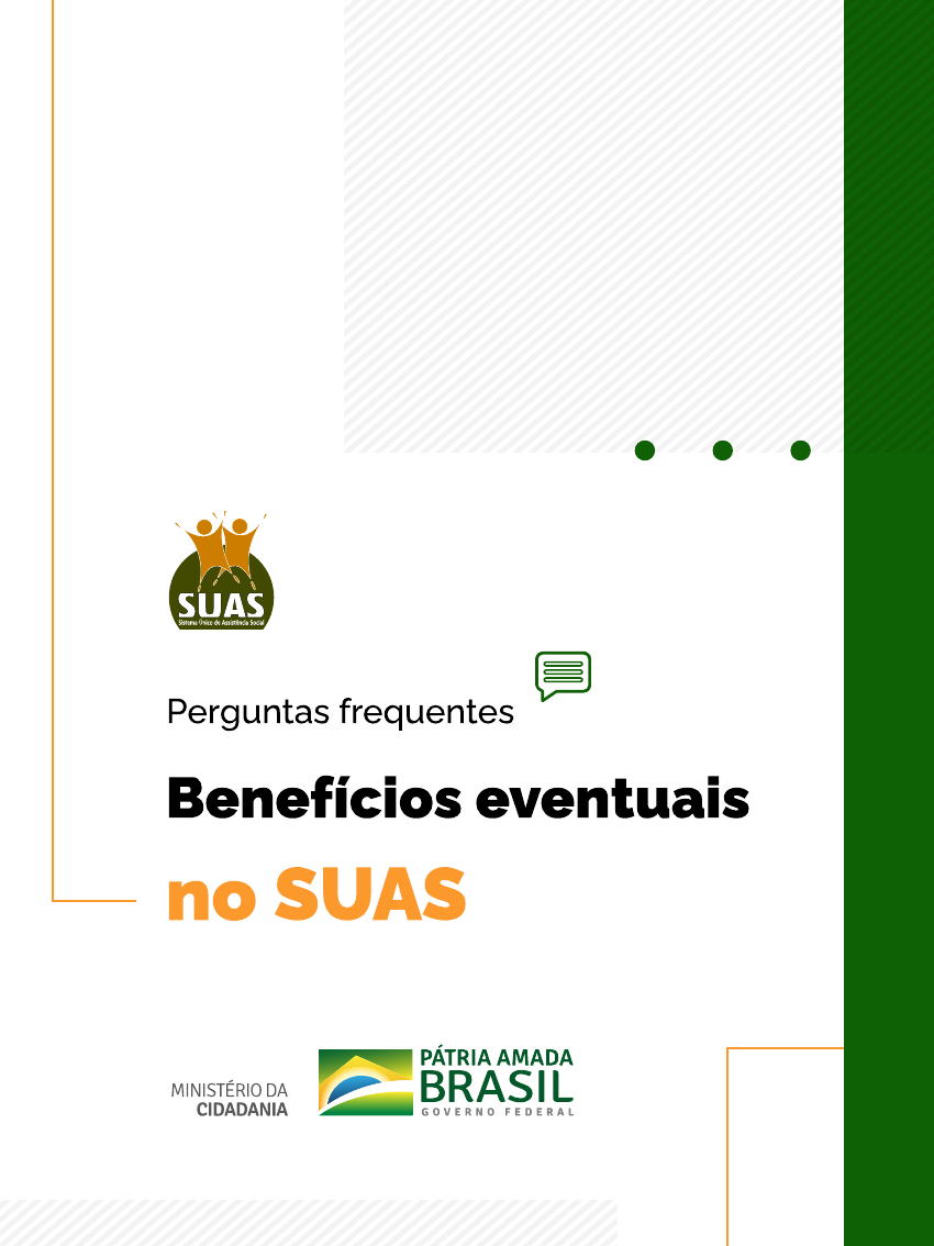 <p>Ministério da Cidadania</p><p>Secretaria Especial do Desenvolvimento Social</p><p>Secretaria Nacional de Assistência Social</p><p>Departamento de Benefícios Assistenciais</p><p>Perguntas Frequentes</p><p>Benefícios Eventuais no SUAS</p><p>Dezembro/2021</p><p>Aqui você encontra informações sucintas sobre</p><p>a regulamentação e operacionalização dos be-</p><p>nefícios eventuais – BE, no âmbito do Sistema</p><p>Único de Assistência Social - SUAS. Há também</p><p>informações sobre a oferta de benefícios even-</p><p>tuais em situação de calamidade pública.</p><p>Se após a leitura você ainda tiver dúvidas, entre</p><p>em contato pelo email:</p><p>beneficioseventuais@cidadania.gov.br</p><p>mailto:beneficioseventuais%40cidadania.gov.br?subject=</p><p>6</p><p>01.</p><p>O que são os benefícios eventuais do Sistema Único</p><p>da Assistência Social?</p><p>São ofertas da Assistência Social para prevenir e enfrentar</p><p>situações provisórias de desproteção decorrentes ou agrava-</p><p>das por nascimentos, mortes, vulnerabilidades temporárias</p><p>e calamidades.</p><p>02.</p><p>Quem tem direito aos benefícios eventuais?</p><p>Todos que necessitem da proteção social do poder público e atendam aos</p><p>critérios legais definidos no município ou Distrito Federal.</p><p>03.</p><p>Como definir critérios para acesso aos benefícios eventuais?</p><p>Os critérios devem ser definidos a partir de informações da realidade local e</p><p>estabelecidos, preferencialmente, na lei municipal do SUAS, utilizando como</p><p>referência a resolução do Conselho que indica os critérios e prazos.</p><p>04.</p><p>É permitido cobrar do requerente declarações ou atestados</p><p>de pobreza?</p><p>Não. O requerente não deve ser submetido a situações cons-</p><p>trangedoras ou humilhantes. Não deve ser exigida qualquer</p><p>comprovação vexatória de necessidade.</p><p>Benefícios Eventuais:</p><p>Aspectos Gerais</p><p>8 9</p><p>Para mais informações consultar as Orientações Técnicas sobre</p><p>Benefícios Eventuais no SUAS, pág. 42.</p><p>05.</p><p>Como realizar o trabalho social com as famílias que recebem os</p><p>benefícios eventuais, uma vez que não se pode cobrar nenhuma</p><p>contrapartida do beneficiário?</p><p>O acesso aos serviços e benefícios socioassistenciais é direito dos beneficiá-</p><p>rios. Orienta-se que o benefício eventual seja concedido, preferencialmente,</p><p>no processo do trabalho social com famílias. Para as demandas espontâneas</p><p>por benefícios, é importante que seja apresentado aos requerentes as de-</p><p>mais ofertas do SUAS. Mas a participação nas ações do trabalho social com</p><p>famílias precisa ser voluntária, não deve ser uma contrapartida para acesso</p><p>ao BE.</p><p>06.</p><p>Por que não pode haver condicionalidades aos usuários no</p><p>recebimento de benefícios eventuais?</p><p>Porque fere um dos princípios do Decreto 6.307/07, que proíbe</p><p>a vinculação do benefício eventual a contrapartidas. O agen-</p><p>te público precisa observar que a necessidade deste benefí-</p><p>cio pelo requerente decorre de situação urgente. A oferta não</p><p>pode depender de condicionantes prévios ou compensações</p><p>de qualquer natureza.</p><p>07.</p><p>Em qual situação o aluguel social é demanda da Política de</p><p>Assistência Social e não da Habitação?</p><p>O acesso provisório a uma residência via benefício eventual da Assistência</p><p>Social busca garantir a segurança de sobrevivência do SUAS, por período</p><p>especificado em regulamento local. É para proteção no momento da ocor-</p><p>rência do evento inesperado, com acesso rápido. Na Política de Habitação, o</p><p>beneficiário deve ter sua demanda por moradia atendida de forma definitiva.</p><p>08.</p><p>O benefício eventual pode ser concedido para compra de</p><p>leite para bebê recém-nascido quando a mãe falece ou não</p><p>consegue amamentar?</p><p>Não. Quando a demanda por leite for destinada a recém-nascidos que,</p><p>por razões diversas, deixam de receber aleitamento materno, deve ser</p><p>feito encaminhamento para a área de saúde, a partir dos fluxos cons-</p><p>truídos entre as políticas locais. A adequada orientação nutricional e a</p><p>consulta médica com pediatra são fundamentais para identificar necessida-</p><p>des alimentares específicas da criança, sendo possível que haja indicação de</p><p>leite especial.</p><p>Para mais informações, consultar: Orientações Técnicas sobre</p><p>Benefícios Eventuais no SUAS, pág. 42).</p><p>10 11</p><p>09.</p><p>Como estabelecer critérios de acesso após a retirada do critério</p><p>de renda de ¼ da LOAS, em 2011, pela Lei 12.435?</p><p>O Município, o DF e respectivos Conselhos de Assistência Social têm à sua</p><p>disposição os seguintes parâmetros para definição de critérios de acesso ao</p><p>benefício eventual:</p><p>A) Princípios da Política Nacional de Assistência Social - PNAS e dos</p><p>Benefícios Eventuais;</p><p>B) Situações que demandam proteção;</p><p>C) Seguranças Sociais afiançadas pelo SUAS;</p><p>D) Dados e indicadores sociais da Vigilância Socioassistencial e de</p><p>outras bases de dados;</p><p>E) Informações gerais sobre as famílias no Cadastro Único (renda</p><p>familiar, local de moradia, empregabilidade) etc.</p><p>Estas informações cruzadas com dados da realidade local indicarão o cri-</p><p>tério mais adequado para garantir proteção social via benefício eventual</p><p>a quem necessita.</p><p>10.</p><p>Onde deve ser a entrega do benefício eventual, em domicílio ou</p><p>no CRAS?</p><p>O município e o DF têm autonomia para definir os locais de concessão e</p><p>entrega dos BEs. Quando a oferta ocorrer em bens, orienta-se que, após o</p><p>reconhecimento do direito, o requerente seja encaminhado para retirada em</p><p>local previamente estabelecido em normativ