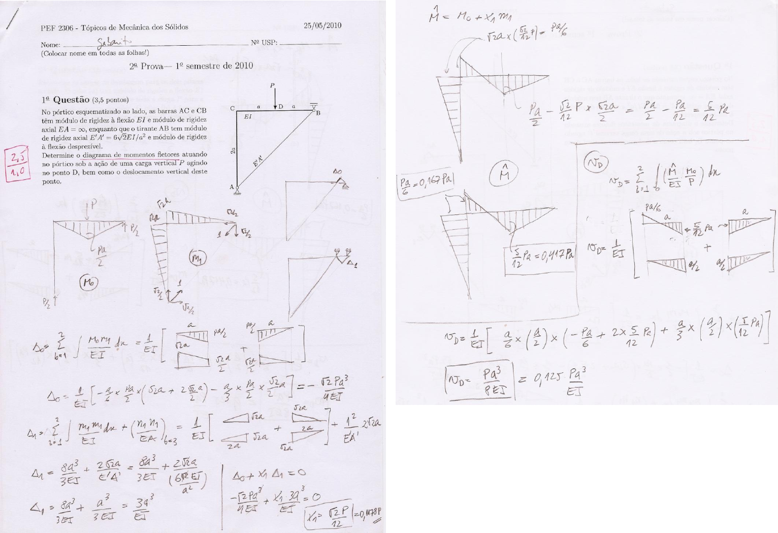 <p>Resolução numérica, com Ansys, para os seguintes parâmetros: 1,0a m ; 100E GPa ; 3 410I m ; 3 26 2 10A m </p><p>a) Momentos fletores b) Deslocamentos</p><p>1</p><p>X</p><p>Y</p><p>Z</p><p>-.416667</p><p>-.351852</p><p>-.287037</p><p>-.222223</p><p>-.157408</p><p>-.092593</p><p>-.027778</p><p>.037037</p><p>.101851</p><p>.166666</p><p>JUN 2 2010</p><p>17:20:57</p><p>LINE STRESS</p><p>STEP=1</p><p>SUB =1</p><p>TIME=1</p><p>MMZI MMZJ</p><p>MIN =-.416667</p><p>ELEM=6</p><p>MAX =.166666</p><p>ELEM=4</p><p>1</p><p>X</p><p>Y</p><p>Z</p><p>JUN 2 2010</p><p>17:21:34</p><p>DISPLACEMENT</p><p>STEP=1</p><p>SUB =1</p><p>TIME=1</p><p>DMX =.137E-08</p><p>U</p><p>F</p><p>c) Deslocamentos verticais d) forças normais</p><p>1</p><p>MN</p><p>MX X</p><p>Y</p><p>Z</p><p>-.125E-08</p><p>-.111E-08</p><p>-.972E-09</p><p>-.833E-09</p><p>-.694E-09</p><p>-.556E-09</p><p>-.417E-09</p><p>-.278E-09</p><p>-.139E-09</p><p>0</p><p>JUN 2 2010</p><p>17:39:04</p><p>NODAL SOLUTION</p><p>STEP=1</p><p>SUB =1</p><p>TIME=1</p><p>UY (AVG)</p><p>RSYS=0</p><p>DMX =.137E-08</p><p>SMN =-.125E-08</p><p>U</p><p>F</p><p>1</p><p>X</p><p>Y</p><p>Z</p><p>-.583333</p><p>-.505424</p><p>-.427514</p><p>-.349605</p><p>-.271696</p><p>-.193786</p><p>-.115877</p><p>-.037968</p><p>.039941</p><p>.117851</p><p>JUN 2 2010</p><p>17:41:51</p><p>LINE STRESS</p><p>STEP=1</p><p>SUB =1</p><p>TIME=1</p><p>N N</p><p>MIN =-.583333</p><p>ELEM=1</p><p>MAX =.117851</p><p>ELEM=10</p><p>U</p><p>F</p>