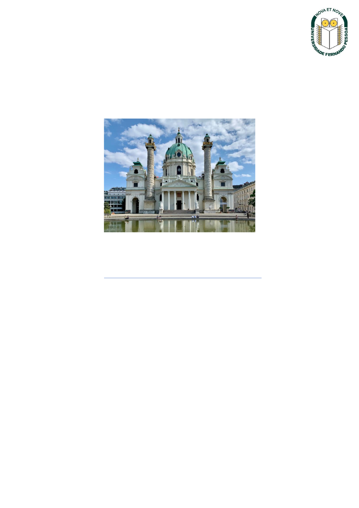 <p>A arquitetura barroca na Igreja</p><p>Karlskirche</p><p>Mestrado Integrado Arquitetura e Urbanismo</p><p>2º Semestre (2023)</p><p>Lara Monteiro (2022109503)</p><p>Docentes: Ilídio Silva</p><p>Universidade Fernando Pessoa</p><p>1</p><p>Índice</p><p>• Resumo. ……………………………………………………………………………………………3</p><p>• Justificação da escolha……………………………………………………………………………...4</p><p>• Revisão à literatura…………………………………………………………………………………5</p><p>- Introdução à Arquitetura Barroca……………………………………………………………….5</p><p>- Características da Arquitetura Barroca………………………………………………………….5</p><p>- Contexto Histórico e Cultural do Barroco………………………………………………………6</p><p>- O Papel da Karlskirche na Arquitetura Barroca………………………………………………...6</p><p>- Estudos Anteriores sobre a Karlskirche…………………………………………………………7</p><p>• Metodologia………………………………………………………………………………………...8</p><p>• Resultados…………………………………………………………………………………………..9</p><p>- Características Arquitetónicas da Karlskirche…………………………………………………..9</p><p>- Elementos Decorativos e Simbologia…………………………………………………………...9</p><p>- Influências e Referências na Arquitetura Barroca………………………………………………10</p><p>- Contexto Histórico e Cultural…………………………………………………………………...10</p><p>• Discussão…………………………………………………………………………………………..11</p><p>- Características Distintivas da Arquitetura Barroca na Karlskirche……………………………11</p><p>- Significados e Simbologia Presentes na Karlskirche………………………………………….11</p><p>- Influências e Legado da Karlskirche…………………………………………………………..12</p><p>- Contribuição da Karlskirche para a Compreensão da Arquitetura Barroca…………………...12</p><p>• Conclusão…………………………………………………………………………………………13</p><p>• Referências bibliográficas/webgrafia……………………………………………………………..14</p><p>2</p><p>Resumo</p><p>Este ‘paper’ analisa a arquitetura barroca na Karlskirche, localizada em Viena, Áustria. O objetivo do</p><p>estudo é investigar e compreender as características e expressões artísticas que tornam a Karlskirche</p><p>um exemplo representativo do estilo barroco. Para alcançar esse objetivo, foi realizada uma revisão da</p><p>literatura sobre a arquitetura barroca, incluindo conceitos, teorias e estudos anteriores relevantes. A</p><p>metodologia adotada envolveu a análise detalhada da estrutura arquitetónica da Karlskirche,</p><p>examinando, elementos como a fachada ornamentada, a cúpula imponente, a planta elaborada e o uso</p><p>estratégico de luz e sombra. Foram utilizadas fontes de dados como documentos históricos, estudos</p><p>arquitetónicos anteriores e fotografias. Além disso, foram realizadas observações visuais minuciosas e</p><p>pesquisa bibliográfica. Os resultados revelaram a riqueza e a complexidade da arquitetura barroca na</p><p>Karlskirche. A fachada exibe uma profusão de detalhes decorativos, como estátuas, relevos e elementos</p><p>arquitetónicos exuberantes. A cúpula impressionante é decorada com frescos elaborados que retratam</p><p>cenas religiosas. A planta da igreja foi cuidadosamente projetada para criar espaços dinâmicos e</p><p>proporcionar uma experiência imersiva aos fiéis. A discussão dos resultados destaca a importância da</p><p>Karlskirche como um exemplo representativo da arquitetura barroca. Através dessa análise, podemos</p><p>compreender as características distintivas e os princípios estilísticos do barroco, assim como a sua</p><p>influência na arquitetura da época. Além disso, a Karlskirche desempenhou um papel significativo na</p><p>disseminação e consolidação da arquitetura barroca em Viena. Em conclusão, este estudo oferece uma</p><p>visão aprofundada da arquitetura barroca na Karlskirche, contribuindo para uma compreensão mais</p><p>ampla do estilo barroco e o seu impacto no cenário arquitetónico. Essa análise nos permite apreciar a</p><p>grandiosidade e a expressividade da arquitetura barroca e reconhecer a importância da Karlskirche</p><p>como um marco histórico e artístico notável desse período.</p><p>3</p><p>Justificação da escolha</p><p>O tema que queria abordar era o barroco e a escolha da Karlskirche como um exemplo</p><p>representativo desse estilo baseia-se na sua singularidade e riqueza artística. A igreja é</p><p>amplamente reconhecida como um dos melhores exemplos da arquitetura barroca.</p><p>A Karlskirche exibe características distintas do estilo barroco, como a grandiosidade e a</p><p>exuberância na sua fachada, a profusão de detalhes ornamentais e a simetria elaborada.</p><p>O projeto arquitetónico, concebido pelo renomeado arquiteto Johann Bernhard Fischer</p><p>von Erlach, destaca-se pelo uso inteligente do espaço, a ênfase nas formas curvas e a</p><p>integração harmoniosa de elementos escultóricos.</p><p>Além disso, a Karlskirche é um exemplo notável da fusão entre arquitetura religiosa e</p><p>arte barroca.</p><p>E não só ao explorar a Karlskirche como um caso de estudo, podemos compreender a</p><p>expressividade e teatralidade do barroco, a sua relaç