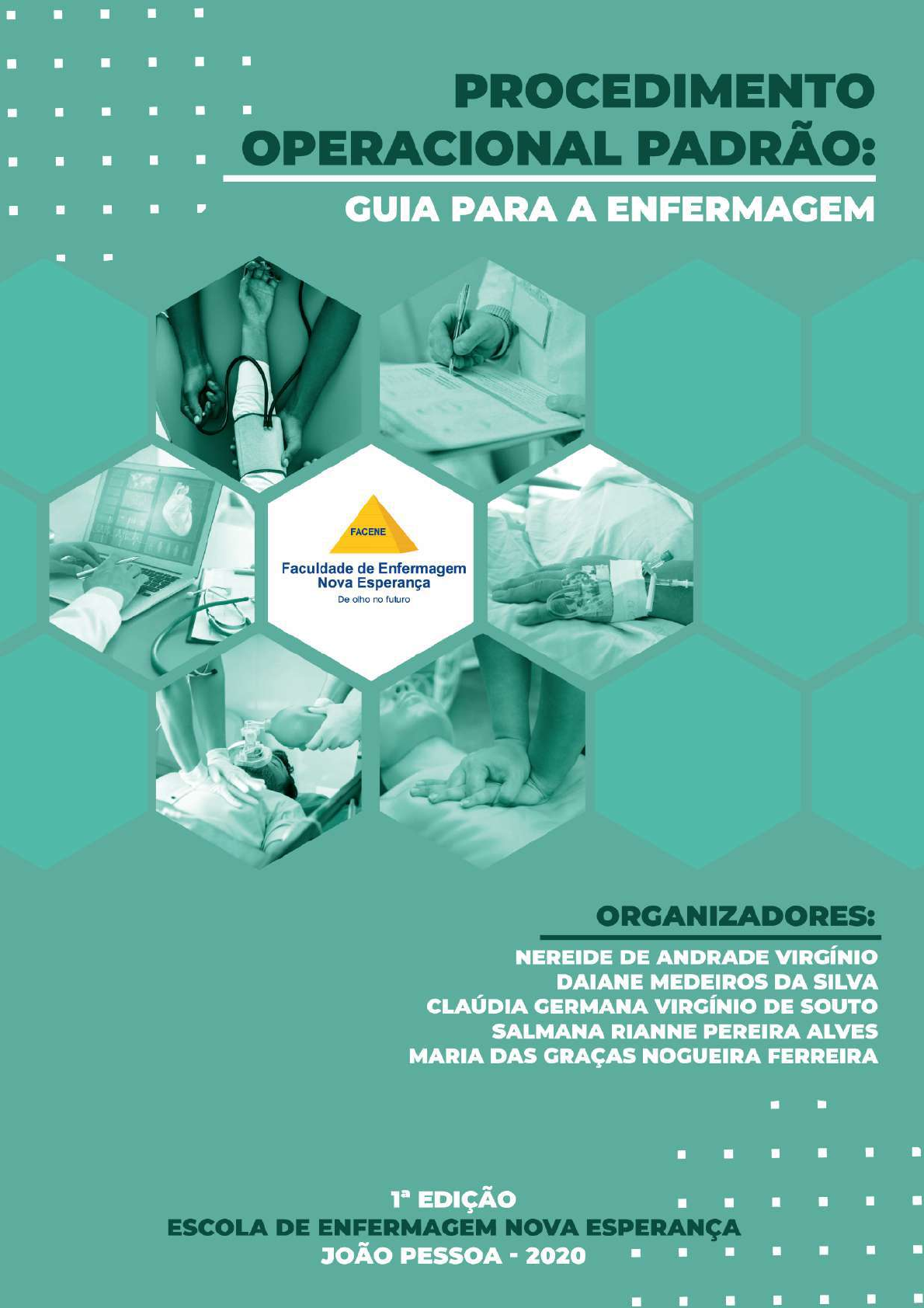 <p>Organizadores:</p><p>Nereide de Andrade Virgínio</p><p>Daiane Medeiros da Silva</p><p>Cláudia Germana Virgínio de Souto</p><p>Salmana Rianne Pereira Alves</p><p>Maria das Graças Nogueira Ferreira</p><p>1ª Edição</p><p>ESCOLA DE ENFERMAGEM NOVA ESPERANCA LTDA</p><p>João Pessoa - Dez/2020</p><p>Procedimento Operacional Padrão:</p><p>Guia para a Enfermagem</p><p>Diretora Presidente da Entidade Mantenedora</p><p>Kátia Maria Santiago Silveira</p><p>Diretor Faculdades Nova Esperança</p><p>Eitel Santiago Silveira</p><p>Secretária Geral</p><p>Carolina Santiago Silveira Polaro Araujo</p><p>Secretário Adjunto</p><p>Edielson Jean da Silva Nascimento</p><p>Coordenadora Acadêmica Faculdades Nova Esperança</p><p>Nereide de Andrade Virgínio</p><p>Coordenadora do Curso de enfermagem</p><p>Daiane Medeiros da Silva</p><p>Revisão Editorial/Editoração</p><p>Ana Lima Dantas</p><p>Revisão Ortográfica (Língua Portuguesa)</p><p>Josane Cristina Batista Santos</p><p>Diagramação</p><p>Ana Lima Dantas/Maria das Graças Nogueira Ferreira</p><p>Todos os direitos reservados aos autores.</p><p>A responsabilidade sobre textos são dos respectivos autores.</p><p>ESCOLA DE ENFERMAGEM NOVA ESPERANCA LTDA</p><p>Av. Frei Galvão, 12 - Gramame, João Pessoa -PB CEP 58067-695</p><p>Fone/Fax : (83) 2106-4777</p><p>As imagens da capa foram retiradas do arquivo das Faculdades Nova Esperança.</p><p>V81p Virgínio, Nereide de Andrade</p><p>Procedimento operacional padrão: guia para a enfermagem /</p><p>Nereide de Andrade Virgínio. – João Pessoa, 2020.</p><p>316f.</p><p>ISBN: 978-65-88050-05-7</p><p>1. Procedimento Operacional Padrão. 2. Pop. 3. Enfermagem. 4.</p><p>Urgência e Emergência. 5. Terapia Intensiva. 6. Semiologia. 7.</p><p>Atenção Integral. 8. Enfermagem Cirúrgica. I. Silva, Daiane Medeiros</p><p>da. II. Souto, Cláudia Germana Virgínio de. III. Alves, Salmana Rianne</p><p>Pereira. IV. Ferreira, Maria das Graças Nogueira. V. Título.</p><p>CDU: 616-083</p><p>Sumário</p><p>Apresentação.......................................................................................................................................................006</p><p>SEÇÃO 1</p><p>FUNDAMENTOS DE SEMIOLOGIA DE ENFERMAGEM</p><p>POP 1. Anamnese........ .......................................................................................................................................008</p><p>POP 2. Administração de Medicação Oral...........................................................................................................011</p><p>POP 3. Higienização Simples das Mãos..............................................................................................................014</p><p>POP 4. Calçar Luvas Estéreis..............................................................................................................................019</p><p>POP 5. Verificação de Sinais Vitais (SSVV).........................................................................................................023</p><p>POP 6. Oxigenoterapia........................................................................................................................................032</p><p>POP 7. Exame Físico Geral.................................................................................................................................038</p><p>ENFERMAGEM EM SEMIOLOGIA E SEMIOTÉCNICA I</p><p>POP 8. Exame Físico da Cabeça e Pescoço..........................................................................................................046</p><p>POP 9. Exame Físico do Sistema Respiratório...................................................................................................052</p><p>POP 10. Exame Físico do Sistema Cardiovascular.............................................................................................060</p><p>POP 11. Exame Físico do Abdome......................................................................................................................065</p><p>ENFERMAGEM BASES SEMIOLÓGICAS DE ENFERMAGEM II</p><p>POP 12. Limpeza da Unidade do Paciente...........................................................................................................073</p><p>POP 13. Arrumação do Leito Hospitalar...............................................................................................................077</p><p>POP 14. Higiene do Couro Cabeludo, Face e Pescoço......................................................................................081</p><p>POP 15. Higiene do Indivíduo – Oral...................................................................................................................086</p><p>POP 16. Higiene do Indivíduo – Banho completo no leito....................................................................................092</p><p>POP 17. Higiene do Indivíduo – Higiene Íntima...................................................................................................095</p><p>POP 18. Sondagem Gastrointestinal....................................................................................................................101</p><p>POP 19. Descartar materiais perfurocortantes.....................................................................................................108</p><p>POP 20. Medicação Parenteral - Via Intradérmica (ID)........................................................................................111</p><p>POP 21. Medicação Parenteral - Via Subcutânea (SC).......................................................................................117</p><p>POP 22. Medicação Parenteral - Via Intramuscular (IM)......................................................................................121</p><p>POP 23. Medicação Parenteral - Via Endovenosa (EV).......................................................................................128</p><p>POP 24. Verificação da Glicem