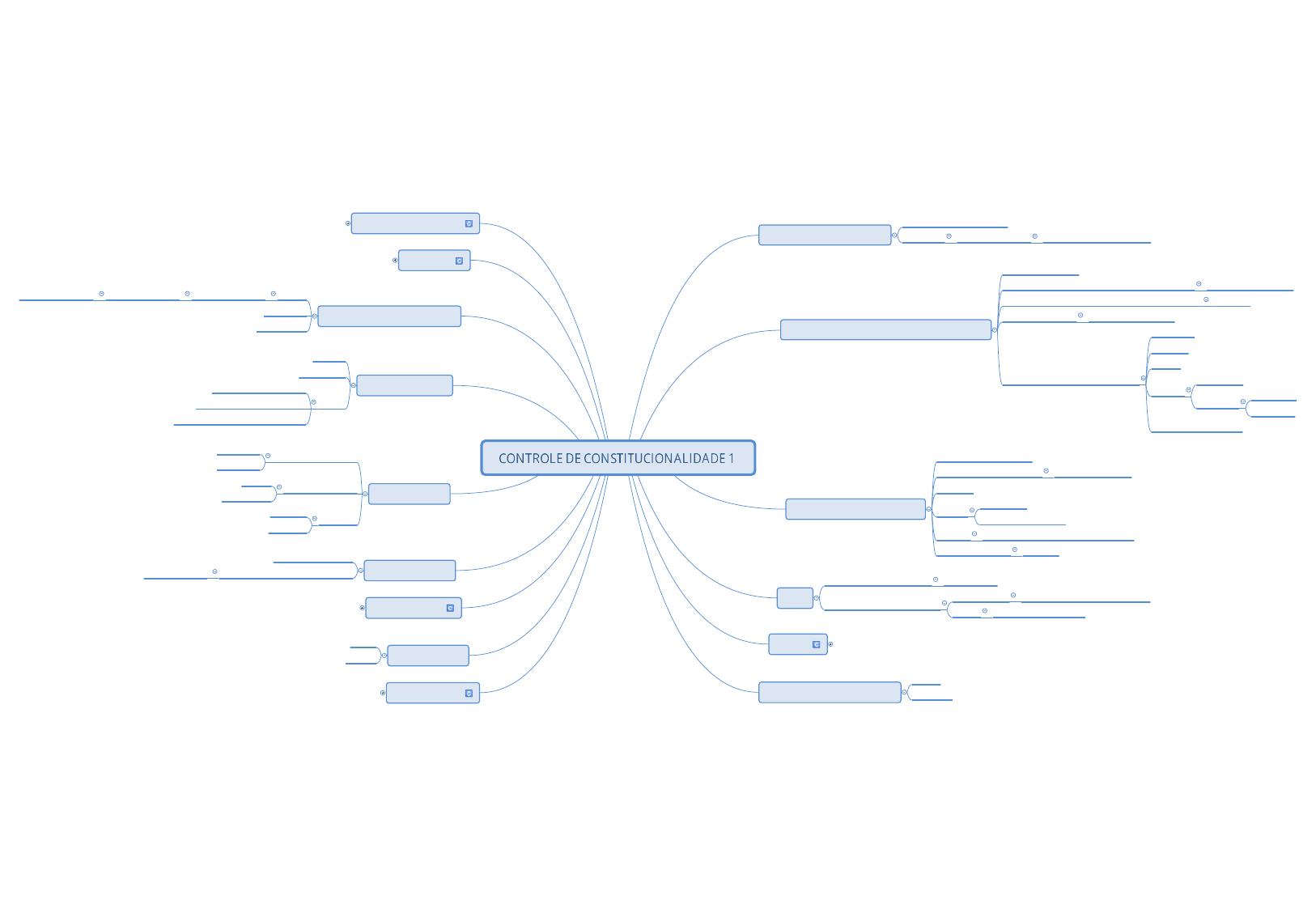 <p>antecedentes históricos</p><p>Grécia - Graphé Paranomon</p><p>Portugal Ordenações Filipinas declaração nulidade lei municipal</p><p>Constitucionalismo Norte-americano (1787)</p><p>1ª Constituição escrita</p><p>decisões raras do povo x decisões cotidianas dos governantes superioridade hierarquica</p><p>não havia previsão expressa controle de constitucionalidade implícito</p><p>Marco inaugural Marbury x Madson (1803)</p><p>Características do Judicial Review</p><p>Repressivo</p><p>concreto</p><p>difuso</p><p>decisão</p><p>declatarória</p><p>efeitos</p><p>inter partes</p><p>retroativos</p><p>Lei inconstitucional é NULA</p><p>Modelo Austriaco - Kelseniano</p><p>Constituição Austríaca - 1920</p><p>Controle concentrado tribunal constitucional</p><p>Abstrato</p><p>Efeitos</p><p>Erga Omnes</p><p>"ex nunc" ou "pro futuro"</p><p>Decisão Natureza desconstitutiva (constitutiva negativa)</p><p>Lei Inconstitucional anulável</p><p>Brasil</p><p>1º Modelo - Constituição de 1891 Judicial Review</p><p>Introdução do modelo concentrado</p><p>EC16/65 - CF/46 Representação de Inconstitucionalidade</p><p>CF/34 Representação Interventiva</p><p>Funções</p><p>Espécies de Inconstitucionalidade</p><p>AÇÃO</p><p>OMISSÃONatureza do Vício</p><p>Extensão do Vício</p><p>Total</p><p>Parcial</p><p>Momento do Vício</p><p>Forma de incidência</p><p>Antecedente (imediata)</p><p>Consequente (derivada ou consequencial)por arrastamento</p><p>Tipos de Controle</p><p>Momento/Oportunidade</p><p>Preventivo</p><p>Repressivo</p><p>Concentração</p><p>Difuso</p><p>Concentrado</p><p>Natureza</p><p>Abstrato</p><p>Concreto</p><p>Sistemas de Controle</p><p>Político</p><p>Jurisdicional</p><p>Misto</p><p>natureza norma impugnada</p><p>composição do órgão de controle</p><p>convivência de diversos tipos de controle</p><p>Natureza do Ato Insconstitucional</p><p>NULOadotada no BRcom temperamentosmodulação de efeitos</p><p>ANULÁVEL</p><p>INEXISTENTE</p><p>Parâmetros</p><p>Sistemática brasileira atual</p><p>Clássica</p><p>Salvaguarda da CF Legislador Negativo</p><p>Funções Básicas</p><p>impedir a existência de uma norma violadora da CFClássica</p><p>Declarar a constitucionalidade de uma norma</p><p>Conferir aplicabilidade plena às normas constitucionais</p><p>Assegurar o cumprimento de um preceito fundamental</p><p>Material</p><p>Nomoestática Conteúdo</p><p>Formal</p><p>Nomodinâmica</p><p>ORGÂNICAreparticão de competências</p><p>PROPRIAMENTE DITA</p><p>SUBJETIVAiniciativa</p><p>OBJETIVAprocedimento</p><p>Quebra de decoro parlamentarcompra de votos</p><p>Ausência de pressupostos objetivos do ato</p><p>Originária</p><p>MATERIAL</p><p>FORMAL</p><p>Superveniente</p><p>apenas material</p><p>POR ALTERAÇÃO FORMALnão admitida pelo STFHipótese de não recepçãoreflexo prático</p><p>não cabe ADI/ADC</p><p>cabe ADPF</p><p>não se submete à reserva de plenário</p><p>POR ALTERAÇÃO INFORMALMutação Constitucional</p><p>POR ALTERÇÃO NA REALIDADE FÁTICAInconstitucionalidade Progressiva</p><p>Ex: ação civil "ex delicto" pelo MP</p><p>Ex: Uso do amianto</p><p>mesmo que seja declarada a constitucionalidade anteriormente</p><p>Convalidação por ECSTF não admiteembora existam faticamente</p><p>Superior</p><p>Bloco de Constitucionalidade</p><p>texto vigente da CF</p><p>disposições autônomas ECs</p><p>tratados internacionais de DH na forma do Art. º, §3º</p><p>princípios, direitos e garantias fundamentais implícitos</p><p>espírito e valores da CF Min. Celso de Mello</p><p>PREÂMBULO NÃO FAZ PARTE SEM NATUREZA NORMATIVA</p><p>NORMAS CONSTITUCIONAIS INTERPOSTAS</p><p>NÃO FAZEM PARTE</p><p>CF faz referência expressa a putras disposições normativas</p><p>Inferior</p><p>Ação</p><p>Omissão</p><p>Parâmetros Estrangeiros</p><p>Única Hipóteseprocedimento de extradição</p><p>compatibilidade promessa de reciprocidade com a constituição do estado</p><p>estrangeiro</p><p>preventivo</p><p>politico</p><p>CCJs</p><p>veto presidencial por inconstitucionalidade</p><p>análise do veto</p><p>rejeição projeto lei delegada</p><p>judicial</p><p>MS impetrado por parlamentar</p><p>direito ao devido processo legal legislativo</p><p>não cabe por violação de normas regimentais</p><p>extinto sem julgamento do mérito por perda do mandato</p><p>projeto de lei apenas inconstitucionalidade formal</p><p>EC formal e material</p><p>NÃO HÁ PRESUNÇÃO RELATIVA DE CONSTITUCIONALIDADE</p><p>repressivo</p><p>político</p><p>CongressoSustar atos que exorbitem o poder regulamentar ou limites da delegação</p><p>Senadosuspender execução de lei declarada inconstitucional em controle difuso pelo STFMutação Constitucional</p><p>Casasanálise pressupostos contitucionais das MPs</p><p>Triibunais de Conta</p><p>Sum 347anterior à CF/88</p><p>Impossibilidade - guinada jurisprudencialusurpa atribuição do STF</p><p>Ajuizamento de ADI</p><p>Revogação de lei tida por inconstitucional</p><p>Revogação de atos inconstitucionais pela Administração Publica</p><p>Não aplicação pelo Executivo de lei tida por inconstitucional</p><p>dever de guarda da constituição</p><p>presunção de constitucionalidade não pode suplantar supremacia constitucional</p><p>adoção da teoria da nulidade</p><p>judicial</p>