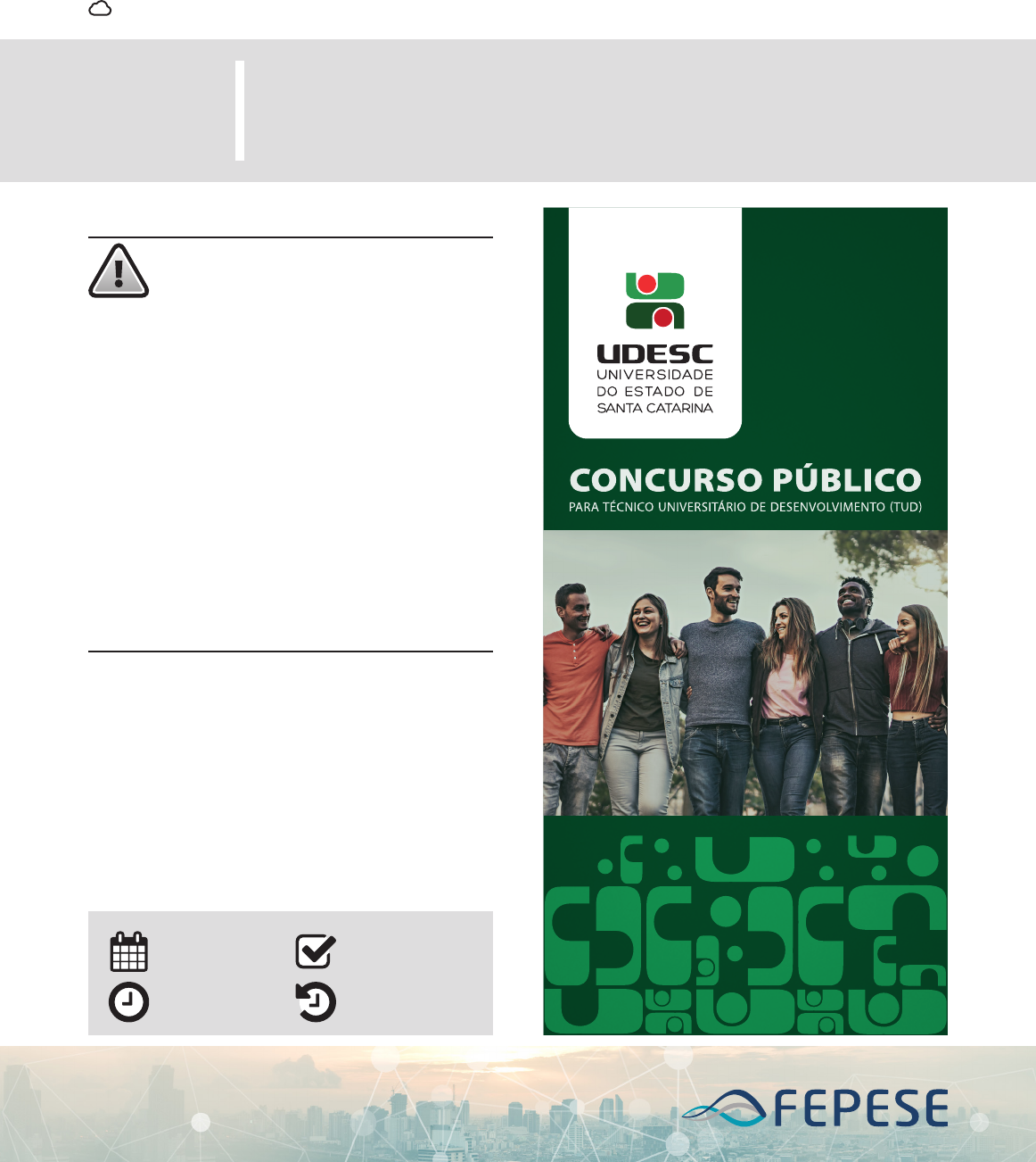 <p>C A D E R N O</p><p>D E P R O V A</p><p>Fundação Universidade do</p><p>Estado de Santa Catarina (UDESC)</p><p>Concurso Público • Edital 002/2022</p><p>http://2022udesc.fepese.org.br</p><p>T04</p><p>TÉCNICO UNIVERSITÁRIO DE DESENVOLVIMENTO (TUD) •</p><p>Biblioteconomista</p><p>Instruções</p><p>Confira o número que você obteve no ato da</p><p>inscrição com o que está indicado no cartão-</p><p>resposta.</p><p>* A duração da prova inclui o tempo para o preenchimento</p><p>do cartão-resposta.</p><p>Para fazer a prova você usará:</p><p>� este caderno de prova.</p><p>� um cartão-resposta que contém o seu nome, número</p><p>de inscrição e espaço para assinatura.</p><p>Verifique, no caderno de prova, se:</p><p>� faltam folhas e a sequência de questões está correta.</p><p>� há imperfeições gráficas que possam causar dúvidas.</p><p>Comunique imediatamente ao</p><p>fiscal qualquer irregularidade!</p><p>Atenção!</p><p>� Não é permitido qualquer tipo de consulta durante</p><p>a realização da prova.</p><p>� Para cada questão são apresentadas 5 alternativas</p><p>diferentes de respostas (a, b, c, d, e). Apenas uma</p><p>delas constitui a resposta correta em relação ao</p><p>enunciado da questão.</p><p>� A interpretação das questões é parte integrante da</p><p>prova, não sendo permitidas perguntas aos fiscais.</p><p>� Não destaque folhas da prova.</p><p>Ao terminar a prova, entregue ao fiscal o caderno</p><p>de prova completo e o cartão-resposta devidamente</p><p>preenchido e assinado.</p><p>4 de dezembro</p><p>14 às 18h</p><p>65 questões</p><p>4h de duração*</p><p>.</p><p>Página 3</p><p>Fundação Universidade do Estado de Santa Catarina (UDESC) • Concurso Público • Edital 002/2022</p><p>T04 Técnico Universitário de Desenvolvimento (TUD) • Biblioteconomista</p><p>Língua Portuguesa (15 questões)</p><p>Texto 1</p><p>Ideb 2021 mostra melhor Ensino Fundamental</p><p>inicial em SC e piora no Ensino Médio</p><p>No geral, toda a educação brasileira</p><p>foi impactada com a pandemia</p><p>17 de setembro de 2022, 08:48</p><p>O governo federal divulgou nesta sexta-feira (16/9)</p><p>os resultados do Índice de Desenvolvimento da Edu-</p><p>cação Básica (Ideb) referentes a 2021. Os números</p><p>nacionais mostram uma piora no cenário de educação</p><p>em comparação a 2019, resultado do impacto da</p><p>pandemia.</p><p>Santa Catarina, se comparada com outros estados,</p><p>teve bom desempenho: conseguiu 6 primeiros lugares</p><p>das 10 principais avaliações. Se comparada consigo</p><p>mesmo, houve melhora no Ensino Fundamental e</p><p>piora na avaliação do Ensino Médio.</p><p>Segundo a Secretaria do Estado de Educação (SED),</p><p>o resultado do EM decorre do cálculo feito pelo Ideb,</p><p>que avalia o conhecimento dos alunos através das</p><p>provas (Saeb) e a quantidade de reprovações. Assim,</p><p>segundo a SED, com uma taxa de reprovação em</p><p>19,5% em 2021, o Ideb do Ensino Médio em SC foi der-</p><p>rubado, apesar de bom desempenho dos estudantes</p><p>de escolas públicas e privadas – os quais chegaram a</p><p>ficar em primeiro lugar em alguns quesitos.</p><p>A maior parte do país teve retração na análise do</p><p>conhecimento dos alunos, incluindo a rede privada,</p><p>que teve novamente médias mais altas do que o setor</p><p>público. Aproximadamente 5,3 milhões de estudantes</p><p>foram avaliados. Os resultados municipais ainda serão</p><p>divulgados.</p><p>Disponível em: https://www.correiosc.com.br/ideb-2021-mostra-</p><p>-melhor-ensino-fundamental-inicial-em-sc-e-piora-no-ensino-me-</p><p>dio/. Acesso em: 17 de out. 2022. Fragmento adaptado.</p><p>1. Assinale a alternativa correta sobre o texto 1.</p><p>a. SQUARE Não houve divulgação do Ideb em 2021 porque</p><p>a pandemia de Covid-19 impediu a aplicação</p><p>das provas Saeb em 2020.</p><p>b. Check-square Em 2021, o Índice de Desenvolvimento da</p><p>Educação Básica (Ideb) de Santa Catarina, no</p><p>Ensino Médio, foi menor do que em 2019.</p><p>c. SQUARE Os resultados do Índice de Desenvolvimento</p><p>da Educação Básica (Ideb) referentes a 2021</p><p>mostram, em comparação a 2019, uma piora</p><p>no cenário da educação catarinense, principal-</p><p>mente nas séries finais do Ensino Fundamental.</p><p>d. SQUARE Apesar do mau desempenho dos estudantes</p><p>catarinenses no Saeb de 2019, eles consegui-</p><p>ram ficar em primeiro lugar em alguns quesitos.</p><p>e. SQUARE Santa Catarina, em comparação com outros</p><p>estados, teve bom desempenho em 2021,</p><p>exceto no Ensino fundamental.</p><p>2. Assinale a alternativa correta sobre o texto 1.</p><p>a. SQUARE No Ensino Médio, em Santa Catarina, o resul-</p><p>tado em Matemática subiu do sexto lugar em</p><p>2019 para o terceiro lugar em 2021.</p><p>b. SQUARE Em 2019, a taxa de aprovação de estudantes do</p><p>Ensino Médio em SC (público e privado) foi de</p><p>82%, enquanto em 2021 foi de 80,5%.</p><p>c. SQUARE Segundo análise da Secretaria de Estado da</p><p>Educação, a piora na avaliação do índice no</p><p>Ensino Médio ocorreu porque o estado preferiu</p><p>reprovar alunos do que aprová-los sem conhe-</p><p>cimentos suficientes.</p><p>d. SQUARE A afirmação de que “Santa Catarina, se compa-</p><p>rada com outros estados, teve bom desempe-</p><p>nho: conseguiu 6 primeiros lugares das 10 prin-</p><p>cipais avaliações” se baseia no fato de que Santa</p><p>Catarina ficou em primeiro lugar no Ideb de 2021.</p><p>e. Check-square Se “A maior parte do país teve retração na aná-</p><p>lise do conhecimento dos alunos, incluindo a</p><p>rede privada, que teve novamente médias mais</p><p>altas do que o setor público”, pode-se conside-</p><p>rar que o desempenho dos alunos da educação</p><p>básica regrediu.</p><p>Página 4</p><p>Fundação Universidade do Estado de Santa Catarina (UDESC) • Concurso Público • Edital 002/2022<