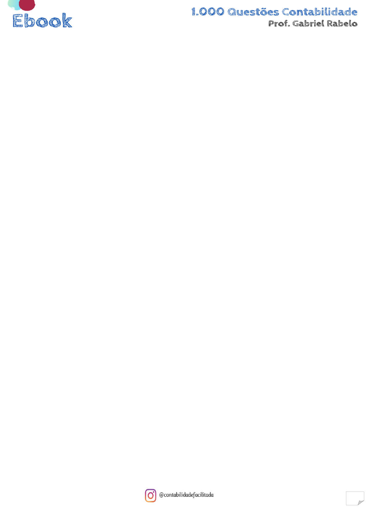 <p>Ebook 1.000 Questões Contabilidade Prof. Gabriel Rabelo</p><p>237</p><p>• Depreciação: Linear</p><p>Com base nessas informações, o contador calculou corretamente que o valor da depreciação</p><p>acumulada na data base de 31 de dezembro de 2018 será de</p><p>a) R$ 79.520,83.</p><p>b) R$ 80.625,00.</p><p>c) R$ 88.687,50.</p><p>d) R$ 93.750,00.</p><p>e) R$ 94.416,67.</p><p>641. (VUNESP/Técnico/CM Indaiatuba/2018)</p><p>Uma empresa adquiriu um determinado bem industrial para o seu ativo imobilizado, com as</p><p>seguintes características:</p><p>• Tipo de ativo: Prensa Hidráulica</p><p>• Data da compra: 1º de janeiro de 2017</p><p>• Valor do Bem: R$ 400.000,00, líquido de impostos</p><p>• Valor residual do bem para sua realização R$ 20.000,00</p><p>• Vida útil estabelecida para o bem 16 anos</p><p>Com base nessas informações, assinale a alternativa que indica corretamente o valor em Reais</p><p>da prensa em 31 de dezembro de 2017:</p><p>a) 346.750,00.</p><p>b) 356.250,00.</p><p>c) 375.000,00.</p><p>d) 375.350,00.</p><p>e) 376.250,00.</p><p>642. (VUNESP/Contador/SJC/2018)</p><p>Um equipamento foi adquirido por uma empresa em 30.06.2014. A empresa pagou R$</p><p>2.000.000,00 à vista, definiu sua vida útil em 8 anos e estimou o valor residual do equipamento</p><p>em R$ 240.000,00. A empresa utiliza o método das cotas constantes para cálculo da</p><p>depreciação.</p><p>Em 31.12.2017, a empresa vendeu o equipamento por R$ 1.050.000,00, à vista. Assim, o</p><p>resultado apurado na venda, que foi evidenciado na Demonstração do Resultado de 2017, foi</p><p>um:</p><p>a) prejuízo no valor de R$ 180.000,00.</p><p>b) lucro no valor de R$ 60.000,00.</p><p>c) lucro no valor de R$ 1.050.000,00.</p><p>d) prejuízo no valor de R$ 70.000,00.</p>