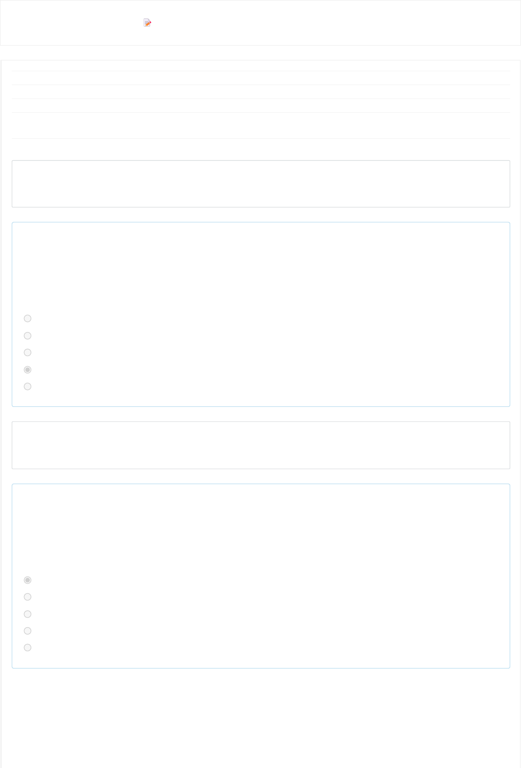 <p>Painel / Meus cursos / MQMCC / 📝 AVALIAÇÕES 2024/3 / ATIVIDADE ONLINE 1 - AV12024/3</p><p>Iniciado em quinta, 22 ago 2024, 11:31</p><p>Estado Finalizada</p><p>Concluída em quinta, 22 ago 2024, 13:19</p><p>Tempo</p><p>empregado</p><p>1 hora 48 minutos</p><p>Avaliar 1,80 de um máximo de 2,00(90%)</p><p>Questão 1</p><p>Correto</p><p>Atingiu 0,20 de 0,20</p><p>Um subconjunto de A x A pode ser chamado simplesmente de relação binária em A. Suponha que R é uma relação de A para B. Então</p><p>R é um conjunto de pares ordenados onde cada primeiro elemento pertence a A e cada segundo elemento pertence a B. Isto é, para</p><p>cada par (a,b), a ∈ A e b ∈ B. Sejam A = {1, 4, 9} e B = {–2, 2, 3}. A representação por extensão da relação R = {(x, y) Î A x B / y² = x}.</p><p>Escolha uma opção:</p><p>a. {(–2, 1), (1, 2), (3, 9)}.</p><p>b. {(1, –2), (4, 2), (9, 3)}.</p><p>c. {(–2, 2), (1, 2), (3, 9)}.</p><p>d. {(4, –2), (4, 2), (9, 3)}. </p><p>e. {( –2, 4), (2, 4), (9, 3)}.</p><p>Questão 2</p><p>Correto</p><p>Atingiu 0,20 de 0,20</p><p>Antonny fez um concurso que era constituído por uma prova de múltipla escolha com 40 questões. Ele obteve 146 pontos. O critério</p><p>de correção era o seguinte: Para cada questão certa é atribuído 5 pontos, para questão errada ou deixada em branco é descontado 1</p><p>ponto. Desta forma, assinale a alternativa que indica a diferença entre o número de questões que ele acertou e que ele errou.</p><p>Escolha uma opção:</p><p>a. 22 </p><p>b. 25</p><p>c. 23</p><p>d. 26</p><p>e. 19</p><p>2</p><p>https://moodle.ead.unifcv.edu.br/my/</p><p>https://moodle.ead.unifcv.edu.br/my/</p><p>https://moodle.ead.unifcv.edu.br/course/view.php?id=1792</p><p>https://moodle.ead.unifcv.edu.br/course/view.php?id=1792#section-4</p><p>https://moodle.ead.unifcv.edu.br/mod/quiz/view.php?id=203314</p><p>Questão 3</p><p>Correto</p><p>Atingiu 0,20 de 0,20</p><p>Uma equação do primeiro grau é aquela que pode ser resumida ao formato ax + b = 0 com coeficientes reais a e b. Se a for diferente</p><p>de zero temos uma equação com solução única. O conjunto dos valores de x que verificam essa igualdade é chamado de conjunto</p><p>solução da equação. Desta forma, determine o conjunto solução da equação:</p><p>2x – 3 = x + 4.</p><p>Escolha uma opção:</p><p>a. S = {3}.</p><p>b. S = {7}. </p><p>c. S = {6}.</p><p>d. S = {4}.</p><p>e. S = {5}.</p><p>Questão 4</p><p>Correto</p><p>Atingiu 0,20 de 0,20</p><p>Quando o conjunto domínio de função não é indicado de forma explicita, estaremos chamando de domínio real de uma função o</p><p>maior conjunto dos números reais para os quais a sentença que determinar a regra está definida. Desta forma, assinale a alternativa</p><p>que indica o domínio real da função abaixo:</p><p>Escolha uma opção:</p><p>a. Dom(f) = {xÎR/ x ≤ 4}</p><p>b. Dom(f) = {xÎR/ x ≠ 4}</p><p>c. Dom(f) = {xÎR/ x ≥ 4} </p><p>d. Dom(f) = {xÎR/ x 4}</p><p>Questão 5</p><p>Incorreto</p><p>Atingiu 0,00 de 0,20</p><p>Maria foi ao supermercado comprar um pacote de balas. Chegando lá ela comprou um que tinha 72 balas de dois sabores: algumas</p><p>de cereja e outras de hortelã. O triplo da quantidade de balas de hortelã é igual número de balas de cereja acrescido de 24. Quantas</p><p>balas de cereja vieram no pacote que Maria comprou?</p><p>Escolha uma opção:</p><p>a. 30</p><p>b. 36</p><p>c. 42</p><p>d. 24 </p><p>e. 48</p><p>Questão 6</p><p>Correto</p><p>Atingiu 0,20 de 0,20</p><p>Seja f uma função real definida por f(x) = ax + b com a, bÎ R e a diferente de zero, chamamos essa função de função polinomial do</p><p>primeiro grau. O gráfico dessa função é uma reta. Seja uma função o primeiro grau tal que f(2) = 5 e f(5) = 11. Desta forma, assinale a</p><p>alternativa que indica o valor de f(10).</p><p>Escolha uma opção:</p><p>a. 23</p><p>b. 22</p><p>c. 20</p><p>d. 21 </p><p>e. 24</p><p>Questão 7</p><p>Correto</p><p>Atingiu 0,20 de 0,20</p><p>José estava vendendo um carro por R$ 54.000,00. Uma pessoa que veio ver o carro e pediu um desconto de 5%, pois iria pagar a</p><p>vista. José aceitou e vendeu o carro. Qual foi o valor de venda do carro?</p><p>Escolha uma opção:</p><p>a. R$ 52.000,00</p><p>b. R$ 52.800,00</p><p>c. R$ 51.300,00 </p><p>d. R$ 51.600,00</p><p>e. R$ 52.400,00</p><p>Questão 8</p><p>Correto</p><p>Atingiu 0,20 de 0,20</p><p>Uma faculdade realizou um vestibular no mês de Dezembro. O número de candidatos que se inscreveram foi recorde desde que a</p><p>instituição foi criada. As provas objetivas foram corrigidas por uma máquina conectada a um computador com um software específico</p><p>para isso. Mas a faculdade teve que contratar 8 professores para corrigir a redação. Esses professores levaram um tempo de 10 dias,</p><p>trabalhando uma quantidade fixa de horas por dia, para entregar todas as redações corrigidas. Considerando a mesma proporção,</p><p>quantos dias levariam 20 professoras para corrigir essas redações?</p><p>Escolha uma opção:</p><p>a. 6</p><p>b. 9</p><p>c. 10</p><p>d. 8</p><p>e. 4 </p><p>Questão 9</p><p>Correto</p><p>Atingiu 0,20 de 0,20</p><p>Resolver uma equação é encontrar quais valores satisfazem determinada condição expressa através de uma igualdade. Considere a</p><p>equação</p><p>3x – 9 = x + 11</p><p>Das alternativas abaixo, qual é o valor de x que a verifica?</p><p>Escolha uma opção:</p><p>a. 10 </p><p>b. 11</p><p>c. 9</p><p>d. 8</p><p>e. 7</p><p>Questão 10</p><p>Correto</p><p>Atingiu 0,20 de 0,20</p><p>Em uma turma de Administração, na disciplina de Estatística, um professor fez um levantamento entre os 60 alunos da turma, sendo</p><p>30 rapazes e 30 moças. A indagação era se a pessoa fumava ou não. Depois de levantado os dados ele chegou na seguinte</p><p>conclusão: 40% dos rapazes são fumantes; 20% das moças são fumantes. Assinale a alternativa que indica a quantidade de alunos</p><p>não fumantes dess