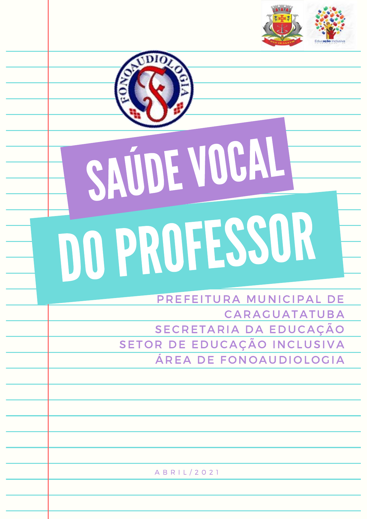 <p>DO PROFESSOR</p><p>SAÚDE VOCAL</p><p>PREFEITURA MUNIC IPAL DE</p><p>CARAGUATATUBA</p><p>SECRETARIA DA EDUCAÇÃO</p><p>SETOR DE EDUCAÇÃO INCLUSIVA</p><p>ÁREA DE FONOAUDIOLOGIA</p><p>A B R I L / 2 0 2 1</p><p>Todo professor deve aprender a preservar sua saúde</p><p>vocal, evitando futuros prejuízos ao seu principal</p><p>instrumento de trabalho: a VOZ.</p><p>Segundo estudos, a docência é uma das profissões</p><p>com maior incidência de alterações vocais, como</p><p>nódulos e edemas. Essas alterações ocorrem por uso</p><p>excessivo ou inadequado da voz, acarretando</p><p>dificuldade na emissão natural da mesma, a que</p><p>chamamos de Disfonia.</p><p>A Disfonia aparece como:</p><p>CANSAÇO E ESFORÇO AO FALAR;</p><p>DIFICULDADE EM MANTER A VOZ;</p><p>ROUQUIDÃO E VARIAÇÃO NO TOM DE VOZ;</p><p>DOR OU ARDOR NA GARGANTA;</p><p>PIGARRO CONSTANTE E TOSSE SECA PERSISTENTE;</p><p>VOZ FRACA NO FINAL DO DIA.</p><p>INTRODUÇÃO</p><p>• Respire sempre corretamente, levando o</p><p>ar até a barriga e expandindo as costelas. A</p><p>barriga deve expandir como se estivesse</p><p>cheia de ar;</p><p>• Ao falar, mantenha postura ereta e</p><p>relaxada, sem tensões;</p><p>•Procure falar voltado para os alunos, não</p><p>girando somente o pescoço. Utilize gestos</p><p>e expressões faciais para complementar o</p><p>que está falando;</p><p>PARA MANTER A SAÚDE VOCAL,</p><p>ALGUNS CUIDADOS SÃO FUNDAMENTAIS:</p><p>#FICADICA</p><p>• Fale pausadamente e de maneira correta,</p><p>articulando bem as palavras e sem exagero,</p><p>inclusive os sons do final das palavras, como</p><p>por exemplo, os sons de “S” e “R”. Lembre-se:</p><p>você é modelo para seus alunos;</p><p>•Evite competir com ruídos externos ou da</p><p>própria sala de aula. Quando o ruído é</p><p>intenso, não escutamos direito nossa própria</p><p>voz. A autoridade se dá através de uma</p><p>dicção clara e de um discurso coerente;</p><p>• Utilize atividades que solicitem a</p><p>participação efetiva dos alunos, como</p><p>música, leitura, dramatização e trabalhos</p><p>em grupo. Desta maneira você estará</p><p>motivando a classe com dinamismo e</p><p>poupando a sua voz.</p><p>•A voz é seu precioso instrumento de</p><p>trabalho, portanto, economize-a!</p><p>•Faça repouso vocal nos intervalos de</p><p>trabalho;</p><p>•Beba bastante água em temperatura</p><p>ambiente, pelo menos 2 litros,</p><p>principalmente durante o uso da voz.</p><p>Nada de gelado!</p><p>•Antes das aulas evite a ingestão de</p><p>alimentos que possam aumentar a</p><p>secreção gástrica. Alimentos como os</p><p>derivados de leite, chocolate e mel,</p><p>“engrossam” a saliva e dificultam tanto a</p><p>articulação quanto a vibração das pregas</p><p>vocais. Coma maçã ou salsão antes de</p><p>iniciar as aulas, porque além de possuir</p><p>efeito “adstringente” deixando a saliva</p><p>“fininha”, esses alimentos exercitam a</p><p>musculatura mastigatória utilizada na</p><p>articulação das palavras;</p><p>•Evite balas, pastilhas, sprays ao fazer uso</p><p>da voz. Eles possuem efeito anestésico,</p><p>mascarando sintomas e permitindo o</p><p>abuso vocal.</p><p>#FICADICA</p><p>•Evite Bebidas Alcóolicas e Fumo. A fumaça</p><p>do cigarro agride todo o Sistema</p><p>Respiratório, inclusive as pregas vocais que</p><p>ficam secas e irritadas. Isso faz com que a</p><p>garganta produza secreções provocando</p><p>pigarro. Da mesma forma, o álcool também</p><p>causa irritação no aparelho fonador. Sua</p><p>ingestão pode anestesiar a garganta</p><p>permitindo abusos sem que se perceba,</p><p>como falar alto e gritar;</p><p>• Ao sentir vontade de tossir ou pigarrear,</p><p>respire profundamente pelo nariz e engula</p><p>saliva várias vezes ou beba água. O pigarrear</p><p>constante causa atrito nas pregas vocais,</p><p>ferindo-as. Bebendo água, fluidifica-se este</p><p>muco e, gradualmente, a necessidade de</p><p>pigarrear diminui</p><p>• Respeite suas horas de sono. Todos os</p><p>músculos precisam de descanso. Quando o</p><p>corpo está cansado, as pregas vocais</p><p>também estão.</p><p>• Para diminuir a tensão na área do pescoço</p><p>e dos ombros, boceje e espreguice várias</p><p>vezes ao dia e ao acordar.</p><p>• Use roupas confortáveis e tecidos que</p><p>absorvam a transpiração. Roupas leves e</p><p>folgadas são ideais para quem trabalha com</p><p>a voz. Sapatos confortáveis também</p><p>favorecem a postura correta.</p><p>• Participe de atividades físicas e de lazer</p><p>que contribuam para sua saúde: exercicios</p><p>de alongamento, ioga, ginástica, pilates,</p><p>caminhada e natação.</p><p>• Realize exercícios de relaxamento e alongamento de</p><p>ombros, pescoço, e face:</p><p>A) Gire os ombros para trás, lentamente, e depois gire-</p><p>os para frente;</p><p>B) Faça movimentos com a cabeça, simulando “SIM,</p><p>NÃO, TALVEZ”</p><p>C) Levante os braços, lentamente,ao mesmo tempo</p><p>em que inspira pelo nariz, e abaixe-os expirando pela</p><p>boca, como se estivesse soprando</p><p>#FICADICA</p><p>CASO ESTES SINTOMAS PERSISTAM,</p><p>PROCURE UM FONOAUDIÓLOGO OU</p><p>UM MÉDICO OTORRINOLARINGOLOGISTA!</p><p>ESTEJA ATENTO AOS SINTOMAS, SENSAÇÕES E</p><p>MUDANÇAS NA SUA VOZ !!!!</p><p>1.Behlau, Mara; Gragone, Mária Lúcia Suzigan ; Nagano, Lúcia- A</p><p>voz que Ensina, o professor e a Comunicação Oral em Sala de Aula.</p><p>Editora Revinter. Ano 2004.</p><p>2.Behau, Mara ; Pontes, Paulo- Higiene Vocal: Cuidando da Voz.– 5ª</p><p>Edição. Editora Revinter . Ano 2017.</p><p>3.Lopes, Leonardo; Moreti, Felipe; Ribeiro, Lívia Lima-</p><p>Fundamentos e Atualidades em Voz Clínica . Editora Revinter ( Rio</p><p>de Janeiro). Ano 2019.</p><p>4. Pinho, Silvia M. Rebelo -Manual de Higiene Vocal para</p><p>Profissionais da Voz– 4ª Edição. Editora Pró-fono. Ano 2019.</p><p>5.Pinho, Silvia M. Rebelo- Tópicos em Voz . Editora Guanab