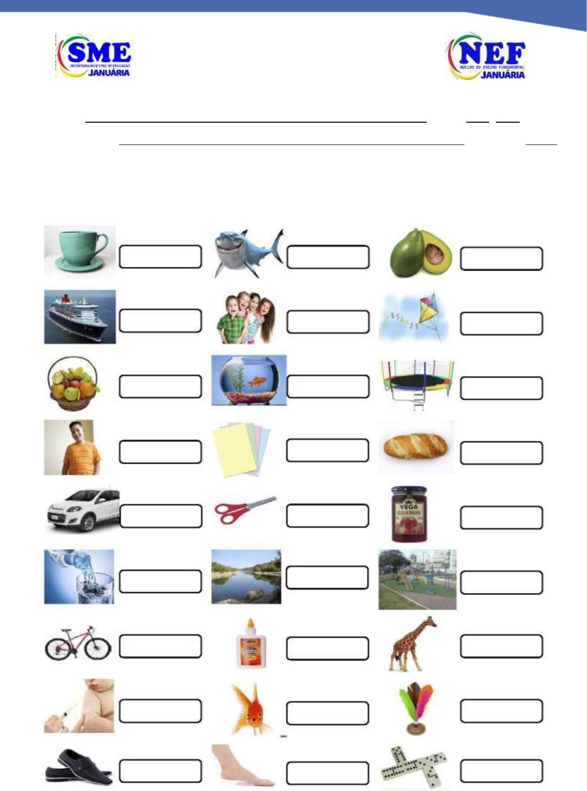 <p>SECRETARIA MUNICIPAL DE EDUCAÇÃO NÚCLEO DO ENSINO FUNDAMENTAL</p><p>Rua Honor Caciquinho, Nº 220 – Bairro Jadete – Januária/MG - CEP: 39.480-000 Fone: (38) 3621-1874</p><p>E-mail: nef.sme2023 @gmail.com</p><p>ESCOLA: DATA: / /2024 ESTUDANTE: TURMA: 3º Ano</p><p>ESCRITA ESPONTÂNEA DIAGNÓSTICA</p><p>ESCREVA OS NOMES DAS FIGURAS ABAIXO:</p><p>SECRETARIA MUNICIPAL DE EDUCAÇÃO NÚCLEO DO ENSINO FUNDAMENTAL</p><p>Rua Honor Caciquinho, Nº 220 – Bairro Jadete – Januária/MG - CEP: 39.480-000 Fone: (38) 3621-1874</p><p>E-mail: nef.sme2023 @gmail.com</p><p>ESCOLA: DATA: / /2024 ESTUDANTE: TURMA: 1º e 2º Ano</p><p>ESCRITA ESPONTÂNEA DIAGNÓSTICA</p><p>ESCREVA OS NOMES DAS FIGURAS ABAIXO:</p><p>ESCOLA: DATA: / /2024 ESTUDEANTE: TURMA: 4º Ano ESCRITA ESPONTÂNEA DIAGNÓSTICA</p><p>Produção Textual</p><p>Vamos contar uma história seguindo um roteiro. O roteiro nos ajuda a organizar melhor as ideias. Não esqueça o título.</p><p>· Quem são essas crianças?</p><p>· Como elas são?</p><p>· O que elas estão fazendo?</p><p>· O que vai acontecer</p><p>· Como a história vai terminar?</p><p>SECRETARIA MUNICIPAL DE EDUCAÇÃO NÚCLEO DO ENSINO FUNDAMENTAL</p><p>Rua Honor Caciquinho, Nº 220 – Bairro Jadete – Januária/MG - CEP: 39.480-000 Fone: (38) 3621-1874</p><p>E-mail: nef.sme2023 @gmail.com</p><p>ESCOLA: DATA: / /2024 ESTUDANTE: TURMA: 6º Ano ESCRITA ESPONTÂNEA DIAGNÓSTICA</p><p>Produção Textual</p><p>· Vamos criar uma história.</p><p>· Vamos apresentar o que está acontecendo em cada quadrinho.</p><p>· Conte o que está acontecendo em cada quadrinho.</p><p>· Porque a história é engraçada?</p><p>· Vamos montar uma historinha para essa sequência.</p><p>· Para cada quadrinho vamos montar um parágrafo, não vale descrever o que está vendo!</p><p>SECRETARIA MUNICIPAL DE EDUCAÇÃO NÚCLEO DO ENSINO FUNDAMENTAL</p><p>Rua Honor Caciquinho, Nº 220 – Bairro Jadete – Januária/MG - CEP: 39.480-000 Fone: (38) 3621-1874</p><p>E-mail: nef.sme2023 @gmail.com</p><p>ESCOLA: DATA:_ / /2024 ESTUDANTE: TURMA: 7º Ano ESCRITA ESPONTÂNEA DIAGNÓSTICA</p><p>Mundo Imaginário</p><p>Letícia e Rafael são irmãos e gostam de imaginar coisas. Certa vez, eles imaginaram que fizeram uma viagem de foguete para o espaço. Foi muito legal!</p><p>Eles conheceram diversos planetas e procuraram vidas fora da terra. Será que encontraram?</p><p>Escreva um texto relatando como foi essa grande viagem.</p><p>SECRETARIA MUNICIPAL DE EDUCAÇÃO NÚCLEO DO ENSINO FUNDAMENTAL</p><p>Rua Honor Caciquinho, Nº 220 – Bairro Jadete – Januária/MG - CEP: 39.480-000 Fone: (38) 3621-1874</p><p>E-mail: nef.sme2023 @gmail.com</p><p>ESCOLA: DATA: / /2024 ESTUDANTE: TURMA: 9º Ano ESCRITA ESPONTÂNEA DIAGNÓSTICA</p><p>Produção de texto a partir da observação da imagem.</p><p>Observe atentamente a figura e pense nas seguintes questões antes de escrever sua história:</p><p>· Que sentimentos essa imagem lhe transmite?</p><p>· Quem é essa menina?</p><p>· Qual a sua idade?</p><p>· Como ela está vestida?</p><p>· Porque ela está na rua com outra criança?</p><p>· Onde e como ela vive?</p><p>· Quais seus desejos e anseios?</p><p>Agora escreva um texto na 1ª pessoa em que essa criança se descreva fisicamente e psicologicamente e conte um pouco de sua vida.</p><p>SECRETARIA MUNICIPAL DE EDUCAÇÃO NÚCLEO DO ENSINO FUNDAMENTAL</p><p>Rua Honor Caciquinho, Nº 220 – Bairro Jadete – Januária/MG - CEP: 39.480-000 Fone: (38) 3621-1874</p><p>E-mail: nef.sme2023 @gmail.com</p><p>ESCOLA: DATA: / /2024 ESTUDANTE: TURMA: 8º Ano ESCRITA ESPONTÂNEA DIAGNÓSTICA</p><p>OBSERVE A IMAGEM E LEIA O TEXTO ABAIXO</p><p>Eu e meus amigos decidimos ir acampar em uma área na fazenda. Assim que anoiteceu vimos vários vagalumes voando para uma única direção... Resolvemos segui-los, quando,</p><p>de repente fomos surpreendidos por um grande barulho.</p><p>Disponível em: https://bityli.com/ZNMLN. Acesso em: 25 fev.</p><p>Escreva uma história, com base nessa imagem e nesse texto, imaginando que você é o narrador, ou seja, a pessoa que está contando sobre essa aventura. Não se esqueça de contar quem estava com você e as coisas que vocês viram e fizeram.</p><p>SECRETARIA MUNICIPAL DE EDUCAÇÃO NÚCLEO DO ENSINO FUNDAMENTAL</p><p>Rua Honor Caciquinho, Nº 220 – Bairro Jadete – Januária/MG - CEP: 39.480-000 Fone: (38) 3621-1874</p><p>E-mail: nef.sme2023 @gmail.com</p><p>ESCOLA: DATA: / /2024 ESTUDANTE: TURMA: 5º Ano</p><p>ESCRITA ESPONTÂNEA DIAGNÓSTICA</p><p>Produção Textual</p><p>Crie uma história bem interessante de acordo com as cenas. Não se esqueça de dar um título a sua história.</p><p>image5.jpeg</p><p>image6.jpeg</p><p>image7.jpeg</p><p>image70.jpeg</p><p>image8.jpeg</p><p>image9.jpeg</p><p>image10.jpeg</p><p>image11.jpeg</p><p>image110.jpeg</p><p>image1.jpeg</p><p>image2.png</p><p>image3.png</p><p>image4.jpeg</p><p>image1.png</p><p>image20.png</p><p>image3.jpeg</p>