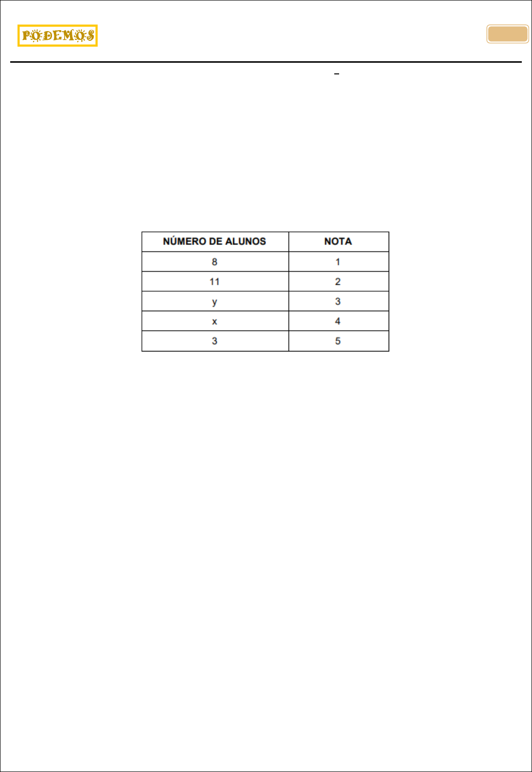 <p>CONCURSO TAE – 2012 – ENSINO SUPERIOR GV</p><p>Prof. Otávio Luciano Camargo Sales de Magalhães</p><p>.</p><p>457</p><p>Os lados 𝐴𝐶̅̅ ̅̅ e 𝐵𝐶̅̅ ̅̅ são paralelos a 𝐷𝐸̅̅ ̅̅ e 𝐷𝐹̅̅ ̅̅ , respectivamente, 𝐸𝐹 =</p><p>1</p><p>3</p><p>𝐴𝐵 e a área do triângulo ABC mede 9</p><p>cm².</p><p>A área do polígono sombreado, em cm², é:</p><p>a) 1.</p><p>b) 3.</p><p>c) 6.</p><p>d) 7.</p><p>e) 8.</p><p>8)(Concurso Público da UFJF - MG - Técnico-Administrativo em Educação TAE Governador</p><p>Valadares / Ensino Superior - 2012 - Banca COPESE/FGV) A tabela a seguir, mostra as notas dos alunos</p><p>de uma turma de 50 alunos em uma determinada prova, cuja nota média foi 2,9.</p><p>O número de alunos que obtiveram nota igual a 4 é um múltiplo de:</p><p>a) 3.</p><p>b) 4.</p><p>c) 5.</p><p>d) 7.</p><p>e) 11.</p><p>9)(Concurso Público da UFJF - MG - Técnico-Administrativo em Educação TAE Governador</p><p>Valadares / Ensino Superior - 2012 - Banca COPESE/FGV) Todos os alimentos são gostosos e saudáveis.</p><p>A negativa dessa afirmativa é:</p><p>a) Todos os alimentos não são gostosos e nem saudáveis.</p><p>b) Todos os alimentos não são gostosos ou não são saudáveis.</p><p>c) Existe algum alimento que não é gostoso e nem saudável.</p><p>d) Existe algum alimento que não é gostoso ou não é saudável.</p><p>e) Existe algum alimento gostoso e saudável.</p><p>10)(Concurso Público da UFJF - MG - Técnico-Administrativo em Educação TAE Governador</p><p>Valadares / Ensino Superior - 2012 - Banca COPESE/FGV) No período de uma hora, 100 pessoas foram</p><p>entrevistadas sobre o gosto por três refrigerantes A, B e C. Todas as 100 pessoas tiveram opinião favorável</p><p>a pelo menos um dos refrigerantes. Os refrigerantes A, B e C, tiveram opinião favorável de 50, 52 e 50</p><p>pessoas, respectivamente. Apenas 11 pessoas disseram gostar de todos os três refrigerantes. Dos</p><p>entrevistados, 20 pessoas declararam gostar dos refrigerantes B e C e 20 pessoas disseram gostar dos</p><p>refrigerantes A e B.</p><p>O número de pessoas que gostaram de ambos os refrigerantes A e C, mas que não gostaram do refrigerante</p><p>B é:</p><p>a) 8.</p><p>b) 10.</p><p>c) 12.</p><p>d) 14.</p><p>e) 16.</p>