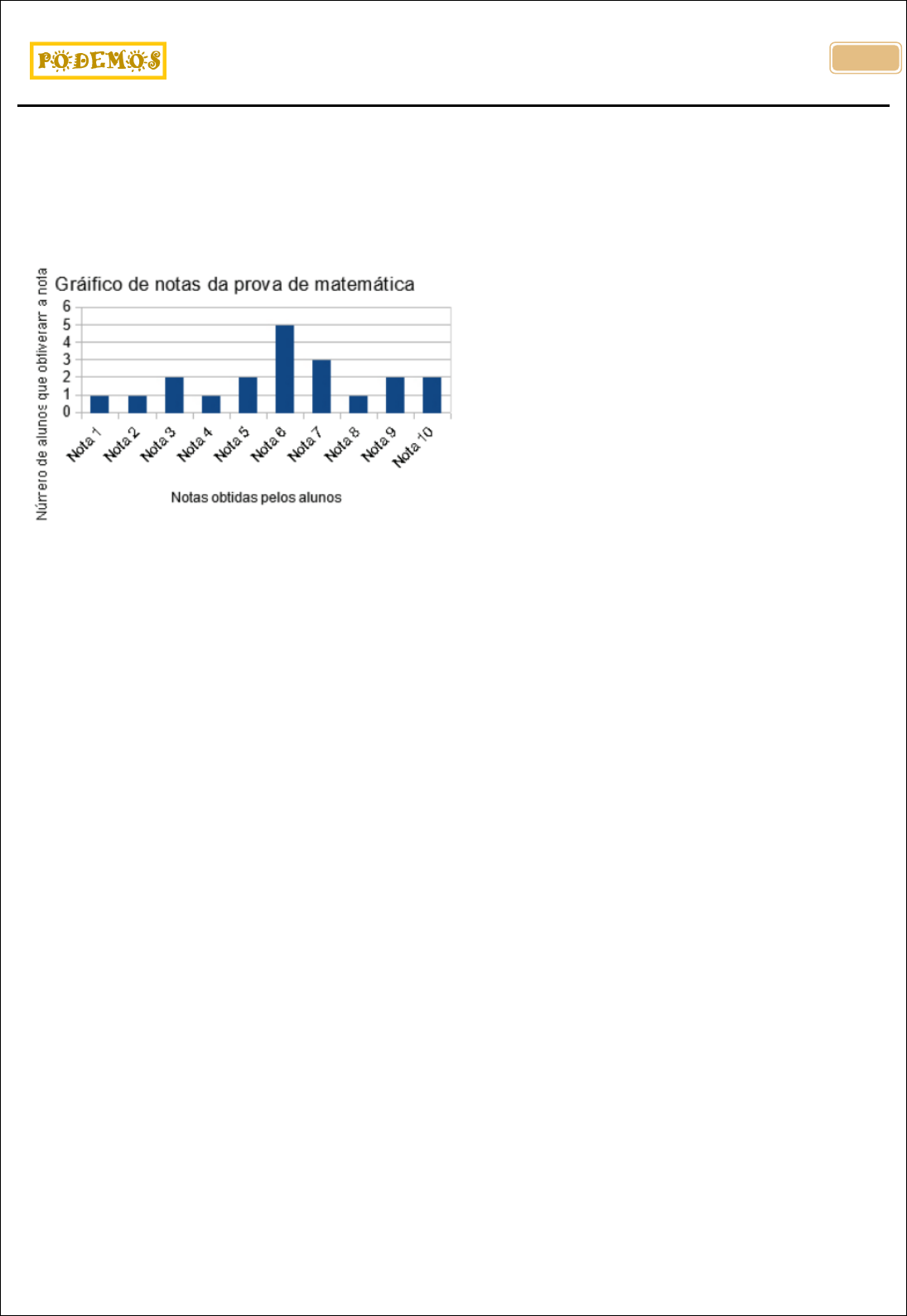 <p>VESTIBULAR - TÉCNICO SUBSEQUENTE - 2020/1</p><p>Prof. Otávio Luciano Camargo Sales de Magalhães</p><p>.</p><p>329</p><p>17)(Vestibular – IFSULDEMINAS – Técnico Subsequente ao Ensino Médio – 1° Semestre/2020) Um</p><p>professor de matemática de um campi do IFSULDEMINAS, muito preocupado com a média aritmética das</p><p>notas tiradas pelos alunos em cada uma das provas que ele aplicou em suas turmas, resolveu acompanhar</p><p>o desempenho de suas turmas. Os alunos da Turma H desse campi fizerem uma prova valendo 10 pontos</p><p>e o professor criou a tabela abaixo para fazer uma análise das notas e encontrar a média aritmética das</p><p>notas dos alunos nessa prova. De acordo com os dados desse gráfico, o professor chegou à conclusão que</p><p>a média aritmética das notas foi:</p><p>a)4</p><p>b)8</p><p>c)6</p><p>d)6,5</p><p>18)(Vestibular – IFSULDEMINAS – Técnico Subsequente ao Ensino Médio – 1° Semestre/2020) A</p><p>cidade de Borda da Mata, localizada no Sul de Minas Gerais, é famosa pela produção de pijamas e roupas</p><p>íntimas. Um rapaz foi em uma loja dessa cidade e comprou 12 cuecas por R$96,00. Seu amigo, que também</p><p>gostou do produto, comprou 5 peças. Quanto ele pagou pelas 5 peças?</p><p>a) R$20,00</p><p>b) R$40,00</p><p>c) R$25,00</p><p>d) R$35,00</p><p>19)(Vestibular – IFSULDEMINAS – Técnico Subsequente ao Ensino Médio – 1° Semestre/2020) João,</p><p>candidato ao Processo Seletivo para ingresso de discentes no 1º semestre letivo de 2020 nos cursos</p><p>Técnicos Subsequente, por curiosidade, resolveu calcular a distância aproximada entre a cidade em que</p><p>reside e a que realizará o processo seletivo. Como o candidato terá que ir de ônibus e não existe uma linha</p><p>direta entre as duas cidades, será necessário utilizar dois ônibus até o local da prova. Ao realizar os cálculos,</p><p>o candidato observou que na primeira etapa da viagem iria percorrer 0,333... do trajeto total e, no segundo</p><p>trecho, percorreria 114 km. Assim, a distância entre as duas cidades será de:</p><p>a) 132 km</p><p>b) 145 km</p><p>c) 171 km</p><p>d) 189 km</p>