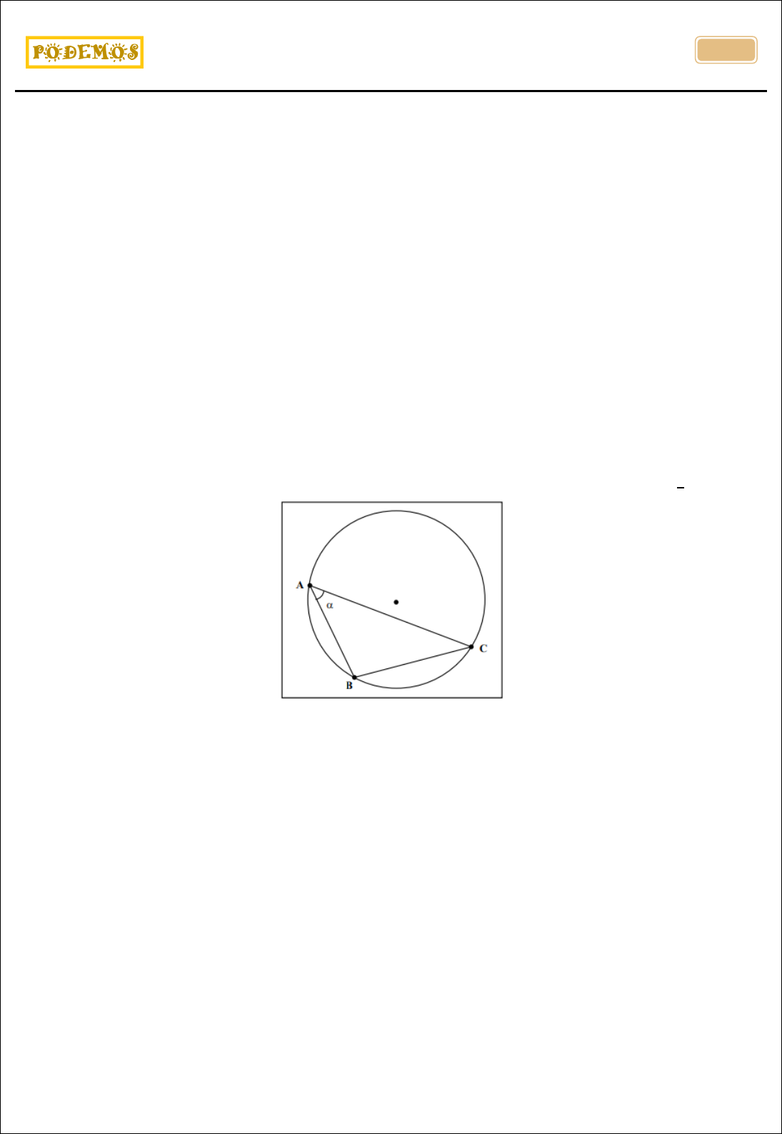 <p>UFJF: PISM, Vestibulares e Concursos</p><p>Prof. Otávio Luciano Camargo Sales de Magalhães</p><p>.</p><p>154</p><p>a) 4,1 cm.</p><p>b) 4,2 cm.</p><p>c) 4,3 cm.</p><p>d) 4,4 cm.</p><p>e) 4,5 cm.</p><p>6)(Vestibular Seriado – PISM / UFJF – Triênio 2005/2007 – 2º ano do Ensino Médio – 2007) Sejam α e</p><p>β dois planos perpendiculares entre si. Considere as afirmações:</p><p>I. Existe pelo menos uma reta perpendicular ao plano α e que intercepta o plano β em um único ponto.</p><p>II. Existe pelo menos uma reta perpendicular ao plano α e contida no plano β.</p><p>III. Existe pelo menos uma reta perpendicular ao plano α e paralela ao plano β.</p><p>É correto dizer que:</p><p>a) somente a afirmação I é verdadeira.</p><p>b) somente a afirmação II é verdadeira.</p><p>c) somente as afirmações II e III são verdadeiras.</p><p>d) somente afirmação III é verdadeira.</p><p>e) somente as afirmações I e III são verdadeiras.</p><p>7)(Vestibular Seriado – PISM / UFJF – Triênio 2005/2007 – 2º ano do Ensino Médio – 2007) Sejam A, B</p><p>e C três pontos sobre uma circunferência de raio 15 cm, α a medida do ângulo 𝐵𝐴�̂� e sem 𝛼 =</p><p>1</p><p>3</p><p>.</p><p>O comprimento do segmento BC é:</p><p>a) 5 cm.</p><p>b) 10 cm.</p><p>c) 15 cm.</p><p>d) 30 cm.</p><p>e) 45 cm.</p>