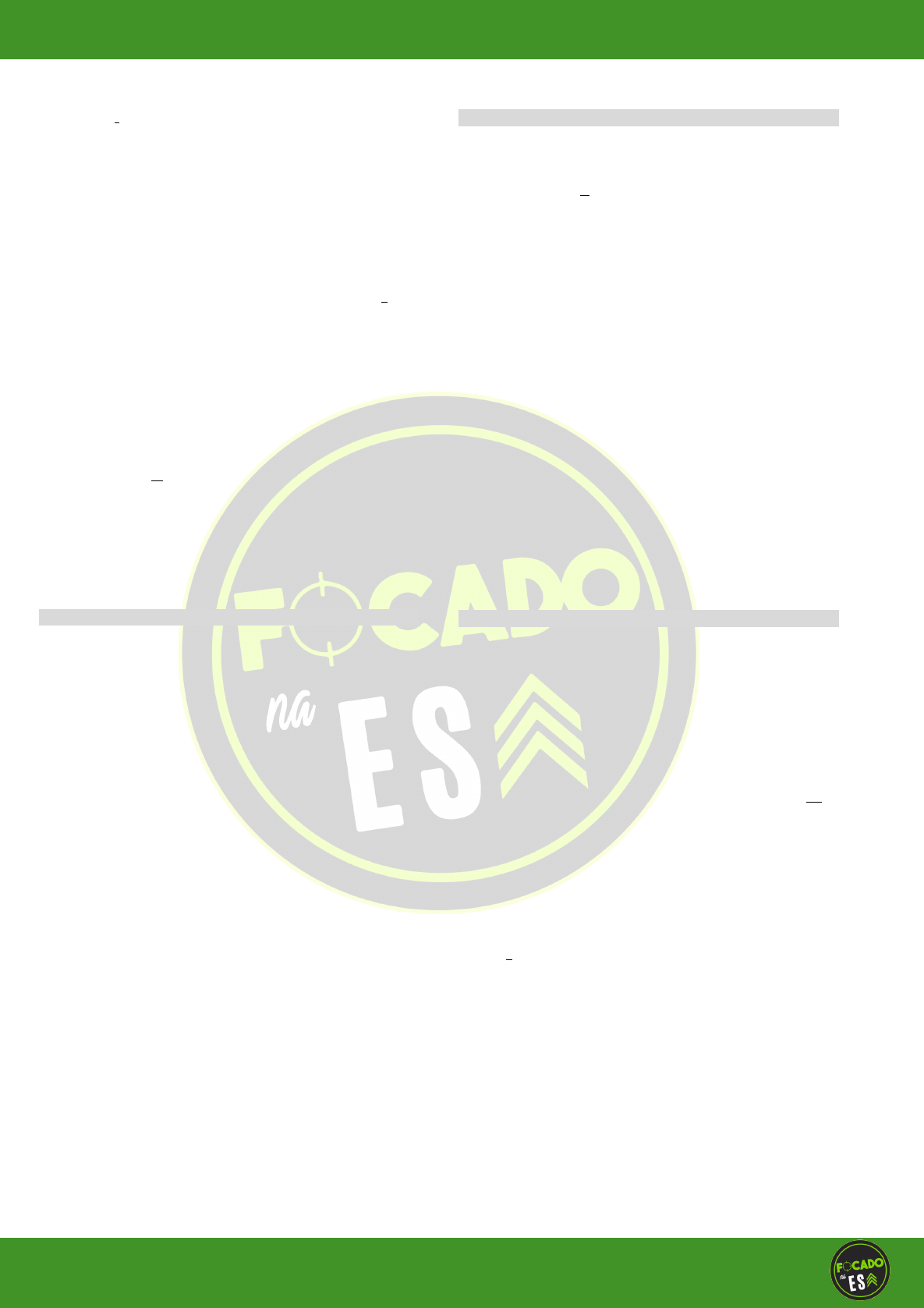 <p>www.focadonaesa.com.br</p><p>118. (EEAR – 2008) Estudando um grupo de crianças</p><p>de uma determinada cidade, um pediatra concluiu que</p><p>suas estaturas variavam segundo a fórmula ℎ =</p><p>logj106,2 ∙ √𝑖k, onde ℎ é a estatura (em metros), e 𝑖 é a</p><p>idade (em anos). Assim, segundo a fórmula, a estatura</p><p>de uma criança de 10 anos dessa cidade é, em m,</p><p>A) 1,20.</p><p>B) 1,18.</p><p>C) 1,17.</p><p>D) 1,15.</p><p>119. (EsSA – 2018) Sejam 𝑓: {𝑥 ∈ ℝ | 𝑥 > 0} ⟶ ℝ e</p><p>𝑔: ℝ ⟶ ℝ, definidas por 𝑓(𝑥) = log' 𝑥 e 𝑔(𝑥) = $</p><p>&</p><p>∙ 2*,</p><p>respectivamente. O valor de 𝑓 ∘ 𝑔(2) é:</p><p>A) 4</p><p>B) 2</p><p>C) −4</p><p>D) −2</p><p>E) 0</p><p>120. (EEAR – 2009) Se 𝑥 e 𝑦 são números reais</p><p>positivos, colog'</p><p>$</p><p>"'</p><p>= 𝑥, e log(𝑎 ∙ 𝑐) = log= 𝑎 + log, 𝑐</p><p>C) log=(𝑎 ∙ 𝑐) = log= 𝑎 + log= 𝑐</p><p>D) log=(𝑎 + 𝑐) = (log= 𝑎)(log= 𝑐)</p><p>E) log=(𝑎 + 𝑐) = log=(𝑎 ∙ 𝑐)</p><p>122. (EEAr – 2015) Se 𝑎 > 0, 𝑏 > 0, 𝑐 > 0 e 𝑐 ≠ 1, então</p><p>é correto afirmar que</p><p>A) 𝑙𝑜𝑔?(𝑎 + 𝑏) = (𝑙𝑜𝑔? 𝑎) + (𝑙𝑜𝑔? 𝑏).</p><p>B) 𝑙𝑜𝑔?(𝑎 + 𝑏) = (𝑙𝑜𝑔? 𝑎). (𝑙𝑜𝑔? 𝑏).</p><p>C) 𝑙𝑜𝑔?(𝑎𝑏) = (𝑙𝑜𝑔? 𝑎) + (𝑙𝑜𝑔? 𝑏).</p><p>D) 𝑙𝑜𝑔?(𝑎𝑏) = (𝑙𝑜𝑔? 𝑎). (𝑙𝑜𝑔? 𝑏).</p><p>123. (EEAR – 2014) Se 𝑓(𝑥) = log 𝑥 e 𝑎 ∙ 𝑏 = 1, então</p><p>𝑓(𝑎) + 𝑓(𝑏) é igual a</p><p>A) 0.</p><p>B) 1.</p><p>C) 10.</p><p>D) 100.</p><p>124. (EsSA – 2017) Se log 𝑥 representa o logaritmo na</p><p>base 10 de 𝑥, então o valor de 𝑘 ∈ (0,+∞), tal que log 𝑘 =</p><p>10 − log 5 é:</p><p>A) 10$6</p><p>B) 108</p><p>C) 2 ∙ 108</p><p>D) 5 ∙ 108</p><p>E) 5 ∙ 10$6</p><p>LOGARITMO (PROPRIEDADE DO QUOCIENTE)</p><p>125. (EEAR – 2019.1) Sejam 𝑚, 𝑛 e 𝑏 números reais</p><p>positivos, com 𝑏 ≠ 1. Se log=𝑚 = 𝑥 e se log= 𝑛 = 𝑦, então</p><p>log=(𝑚 ∙ 𝑛) + log= @</p><p>1</p><p>@</p><p>D é igual a</p><p>A) 𝑥</p><p>B) 2𝑦</p><p>C) 𝑥 + 𝑦</p><p>D) 2𝑥 − 𝑦</p><p>126. (EsSA – 2010) Aumentando-se um número 𝑥 em</p><p>75 unidades, seu logaritmo na base 4 aumenta em 2</p><p>unidades. Pode-se afirmar que 𝑥 é um número:</p><p>A) Irracional.</p><p>B) Divisor de 8.</p><p>C) Múltiplo de 3.</p><p>D) Menor que 1.</p><p>E) Maior que 4.</p><p>127. (EEAR – 2017.1) Se log 2 = 0,3 e log 36 = 1,6, então</p><p>log 3 = ______.</p><p>A) 0,4</p><p>B) 0,5</p><p>C) 0,6</p><p>D) 0,7</p><p>LOGARITMO (PROPRIEDADE DA POTÊNCIA)</p><p>128. (EEAR – 2013) Se log 𝑥 + log 𝑦 = 𝑘, então log 𝑥% +</p><p>log𝑦% é:</p><p>A) 10𝑘</p><p>B) 𝑘$6</p><p>C) 5𝑘</p><p>D) 𝑘%</p><p>129. (EsSA – 2016) Utilizando os valores aproximados</p><p>log 2 = 0,30 e log 3 = 0,48, encontramos para log √12" o</p><p>valor de:</p><p>A) 0,33</p><p>B) 0,36</p><p>C) 0,35</p><p>D) 0,31</p><p>E) 0,32</p><p>130. (EsSA – 2012) Sabendo que log𝑃 = 3 ∙ log 𝑎 − 4 ∙</p><p>log 𝑏 + $</p><p>'</p><p>log 𝑐, assinale a alternativa que representa o</p><p>valor de 𝑃. (Dados: 𝑎 = 4, 𝑏 = 2 e 𝑐 = 16)</p><p>A) 12</p><p>B) 52</p><p>C) 16</p><p>D) 24</p><p>E) 73</p><p>131. (EEAR – 2009) Sejam 𝑥, 𝑦 e 𝑏 números reais</p><p>maiores que 1. Se log= 𝑥 = 2 e log= 𝑦 = 3, então o valor</p><p>de log=(𝑥' ∙ 𝑦") é:</p><p>A) 13.</p><p>B) 11.</p><p>C) 10.</p><p>D) 8.</p>
