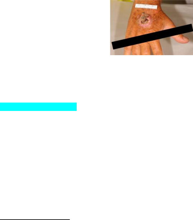 <p>Questões de Clínica Médica- Internato | Isabella Simão Jorge</p><p>8. (USP-RP 2015) Uma mulher, caucasiana com pele e olhos claros, trabalhadora rural. comparece ao</p><p>ambulatório de especialidades com lesão vegetante e ulcerada na pele do dorso da mão esquerda,</p><p>sangrante ao pequeno trauma, há cerca de 8 meses. Relata ser portadora de HIV. Qual é o diagnóstico mais</p><p>provável da lesão na mão?</p><p>A. carcinoma basocelular;</p><p>B. melanoma desmoplásico;</p><p>C. sarcoma cutâneo;</p><p>D. carcinoma espinocelular.</p><p>O de carcinoma de células escamosas (CEC) ou espinocelular é o segundo tipo de câncer de pele mais</p><p>comum (depois do carcinoma basocelular). Esta forma de neoplasia cutânea surge nas células escamosas,</p><p>que constituem a maior parte das camadas superiores da pele (epiderme). Os carcinomas de células</p><p>escamosas podem ocorrer em todas as partes do corpo, incluindo as membranas mucosas e genitais,</p><p>embora se desenvolvam mais em áreas constantemente expostas ao Sol, como braços, pernas, pescoço,</p><p>rosto e couro cabeludo. Com frequência, a pele nessas regiões apresenta sinais de dano solar, como</p><p>enrugamento, mudanças na pigmentação e perda de elasticidade.</p><p>Quem pode desenvolver:</p><p>Pessoas com pele e cabelos claros e olhos azuis, verdes e acinzentados estão no grupo de maior risco de</p><p>desenvolver a doença. Mas qualquer indivíduo com um histórico de frequente exposição ao Sol tem um risco</p><p>elevado de desenvolver a doença. Aqueles que ocupam cargos que demandam atividades externas ou</p><p>permanecem por muito tempo debaixo do Sol estão em situação perigosa. Qualquer pessoa que já</p><p>desenvolveu carcinoma basocelular está mais propensa a desenvolver câncer de células escamosas, assim</p><p>como os indivíduos que possuem condições hereditárias que deixam a pele mais susceptível aos raios UV –</p><p>como o xeroderma pigmentoso.</p><p>O carcinoma de células escamosas é duas vezes mais frequente em homens do que em mulheres. A doença</p><p>raramente se manifesta antes dos 50 anos, sendo mais diagnosticada após os 70 anos.</p><p>Grande parte dos cânceres de pele em afro-americanos são carcinomas de células escamosas, que crescem</p><p>geralmente em locais com inflamações cutâneas pré-existentes ou queimaduras. Apesar de pessoas com</p><p>pele mais escura terem menos chances de desenvolverem câncer de pele do que indivíduos de pele clara, é</p><p>essencial que tenham o hábito de se proteger do Sol.</p>