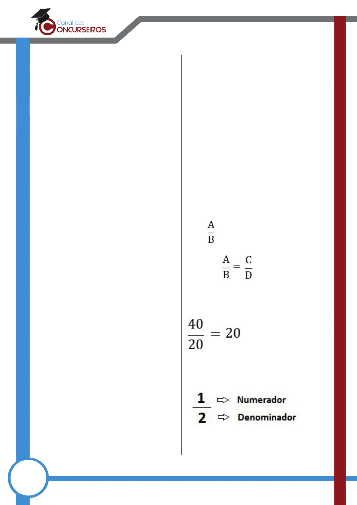 <p>104</p><p>2.20 - Regra de Três Simples e Composta</p><p>A Geometria Espacial estuda as figuras geométri-</p><p>cas no espaço. Entenda espaço como um lugar</p><p>onde podemos encontrar todas as propriedades</p><p>geométricas em mais de duas dimensões.</p><p>É na primeira infância (até dois anos de idade)</p><p>que a criança desenvolve a percepção sobre o es-</p><p>paço. Esse processo acontece de forma multifac-</p><p>etada, visto que a criança concebe uma coleção</p><p>de espaços, que, de acordo com Piaget, são quat-</p><p>ro: espaço tátil, auditivo, visual e oral. É somente</p><p>dos dois aos sete anos de idade que a criança</p><p>reconhece o espaço como algo comum, em que</p><p>todos os espaços descritos anteriormente estão</p><p>incluídos simultaneamente.</p><p>Podemos representar o espaço por meio da pro-</p><p>jeção espacial das três dimensões, que são: altu-</p><p>ra, comprimento e largura. As coordenadas car-</p><p>tesianas são dadas pelos eixos x, y e z. Usando a</p><p>localização de pontos, é possível traçar retas no</p><p>espaço que formam planos e definem formas e</p><p>estruturas geométricas.</p><p>Outro segmento da Matemática que compõe</p><p>a Geometria Espacial é a Geometria Analítica.</p><p>Nessa última, a representação de uma imagem</p><p>na projeção espacial é dada por vetores que pos-</p><p>suem módulo (valor numérico positivo), direção</p><p>(horizontal ou vertical) e sentido (para cima, para</p><p>baixo, direita ou esquerda). O espaço também</p><p>está presente ao estudarmos os sólidos ge-</p><p>ométricos, que são porções limitadas do espaço.</p><p>Grandes estudiosos das Ciências Exatas conce-</p><p>beram e formalizaram os estudos relacionados</p><p>com a Geometria Espacial. Entre eles, podemos</p><p>destacar: Pitágoras, Platão, Euclides, Leonardo</p><p>Finonacci, Joannes Kepler, entre outros.</p><p>A Geometria Espacial está presente nas ab-</p><p>2.19 - Regra de Três Simples e Composta</p><p>104</p><p>2.20 - Regra de Três Simples e Composta</p><p>A Geometria Espacial estuda as figuras geométri-</p><p>cas no espaço. Entenda espaço como um lugar</p><p>onde podemos encontrar todas as propriedades</p><p>geométricas em mais de duas dimensões.</p><p>É na primeira infância (até dois anos de idade)</p><p>que a criança desenvolve a percepção sobre o es-</p><p>paço. Esse processo acontece de forma multifac-</p><p>etada, visto que a criança concebe uma coleção</p><p>de espaços, que, de acordo com Piaget, são quat-</p><p>ro: espaço tátil, auditivo, visual e oral. É somente</p><p>dos dois aos sete anos de idade que a criança</p><p>reconhece o espaço como algo comum, em que</p><p>todos os espaços descritos anteriormente estão</p><p>incluídos simultaneamente.</p><p>Podemos representar o espaço por meio da pro-</p><p>jeção espacial das três dimensões, que são: altu-</p><p>ra, comprimento e largura. As coordenadas car-</p><p>tesianas são dadas pelos eixos x, y e z. Usando a</p><p>localização de pontos, é possível traçar retas no</p><p>espaço que formam planos e definem formas e</p><p>estruturas geométricas.</p><p>Outro segmento da Matemática que compõe</p><p>a Geometria Espacial é a Geometria Analítica.</p><p>Nessa última, a representação de uma imagem</p><p>na projeção espacial é dada por vetores que pos-</p><p>suem módulo (valor numérico positivo), direção</p><p>(horizontal ou vertical) e sentido (para cima, para</p><p>baixo, direita ou esquerda). O espaço também</p><p>está presente ao estudarmos os sólidos ge-</p><p>ométricos, que são porções limitadas do espaço.</p><p>Grandes estudiosos das Ciências Exatas conce-</p><p>beram e formalizaram os estudos relacionados</p><p>com a Geometria Espacial. Entre eles, podemos</p><p>destacar: Pitágoras, Platão, Euclides, Leonardo</p><p>Finonacci, Joannes Kepler, entre outros.</p><p>A Geometria Espacial está presente nas ab-</p><p>105</p><p>strações da Matemática e no nosso mundo</p><p>cotidiano. Percebemos a sua existência todos os</p><p>dias ao olharmos para objetos, estruturas e ani-</p><p>mais que estão ao nosso redor. Quando executa-</p><p>mos essa ação, conseguimos visualizar o volume</p><p>total em vez de somente a superfície, que é uma</p><p>projeção bidimensional.</p><p>Na escola, a Geometria Espacial é estudada na</p><p>disciplina de Matemática. Os conteúdos listados</p><p>a seguir são os ministrados em sala de aula:</p><p>O plano e o espaço;</p><p>Volume do prisma;</p><p>Volume da esfera;</p><p>Volume da pirâmide;</p><p>Posições relativas ponto, reta e plano;</p><p>Posições relativas de duas retas;</p><p>Posições relativas de dois planos;</p><p>Perpendicularidade entre planos;</p><p>Projeção ortogonal;</p><p>Relação de Euler;</p><p>Poliedros;</p><p>Prismas;</p><p>Paralelepípedos;</p><p>Área lateral e área total dos sólidos;</p><p>Cilindro;</p><p>Cone;</p><p>Pirâmide;</p><p>Cone;</p><p>Esfera;</p><p>Simetria.</p><p>2.21 - Razão e proporção com aplicações</p><p>Na matemática, a razão estabelece uma com-</p><p>paração entre duas grandezas, sendo o coefi-</p><p>ciente entre dois números.</p><p>Já a proporção é determinada pela igualdade en-</p><p>tre duas razões, ou ainda, quando duas razões</p><p>possuem o mesmo resultado.</p><p>Note que a razão está relacionada com a oper-</p><p>ação da divisão. Vale lembrar que grandezas são</p><p>proporcionais quando existe duas razões entre</p><p>elas.</p><p>Ainda que não tenhamos consciência disso, uti-</p><p>lizamos cotidianamente os conceitos de razão e</p><p>proporção. Para preparar uma receita, por exem-</p><p>plo, utilizamos certas medidas proporcionais en-</p><p>tre os ingredientes.</p><p>Atenção!</p><p>Para você encontrar a razão entre duas grande-</p><p>zas, as unidades de medida terão de ser as mes-</p><p>mas.</p><p>Exemplos</p><p>A partir das grandezas A e B temos:</p><p>Razão: ou A : B 