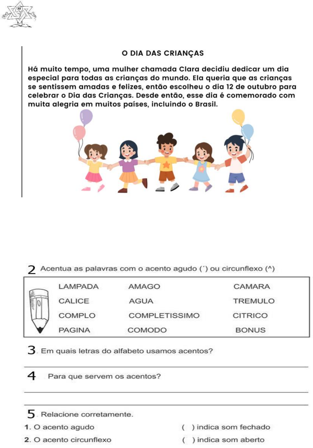 <p>Instituto Pedagógico Estrela de Davi</p><p>NOME: _____________________________________________________________</p><p>AVALIAÇÃO PARCIAL DE PORTUGUÊS – 4° BIMESTRE – 2° ano</p><p>1) LEIA :</p><p>a) QUEM DECIDIU CRIAR UM DIA IMPORTANTE PARA AS CRIANÇAS?</p><p>____________________________________________________________________________</p><p>b) PORQQUE CLARA ESCOLHEU O DIA 12 DE OUTUBRO?</p><p>_________________________________________________________________________________</p><p>_________________________________________________________________________________</p><p>9) FORME FRASES COM:</p><p>a) PEQUENO: _________________________________________________________________________</p><p>b) QUINTAL: __________________________________________________________________________</p><p>10) ESCREVA UM PEQUENO TEXTO SOBRE A SUA PROFESSORA. ( 5 LINHAS)</p><p>_______________________________________________________________________________________</p><p>_______________________________________________________________________________________</p><p>_______________________________________________________________________________________</p><p>_______________________________________________________________________________________</p><p>_______________________________________________________________________________________</p><p>_______________________________________________________________________________________</p>