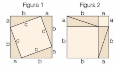 <p>onde fundou uma escola (escola pitagórica) que teria grande influência no</p><p>desenvolvimento da Filosofia e da Ciência, em especial da Matemática. Uma das</p><p>características da escola era a tradição oral: os ensinamentos eram passados</p><p>oralmente apenas. Além disso, as realizações da escola costumavam ser atribuídas</p><p>ao fundador.</p><p>Por volta do ano 500 a.C., quando estava no auge, a escola foi fechada, sob a</p><p>acusação de apoiar a aristocracia, contrária ao governo. Pitágoras refugiou-se na</p><p>cidade de Metaponto, outra colônia grega no sul da Itália, onde ficou até sua</p><p>morte, em 497 a.C. A escola, porém, sobreviveu por cerca de dois séculos, com</p><p>seus membros dispersos pelo mundo grego.</p><p>o saber matemático. Seus membros acreditavam que "o conhecimento é a maior</p><p>das purificações". Assim, não é de estranhar que nessa escola tenha começado o</p><p>cultivo da Matemática pela própria Matemática, ou seja, seu estudo sem visar</p><p>aplicações práticas. Paralelamente, os pitagóricos iniciaram a organização da</p><p>Matemática — em particular da Geometria — por meio de teoremas e suas</p><p>justificativas. A julgar por alguns relatos históricos, deve-se a Pitá goras (ou</p><p>talvez a algum membro de sua escola) a primeira demonstração do teorema de</p><p>Pitágoras (daí o nome), hoje comumente enunciado assim:</p><p>O quadrado da hipotenusa de um triângulo retângulo é igual à soma dos</p><p>quadrados dos catetos.</p><p>A suposta demonstração de Pitágoras é desconhecida, mas se acredita que tenha</p><p>sido feita por comparação de áreas, como a que apresentamos a seguir, ilustrada</p><p>pelas figuras 1 e 2.</p><p>Do quadrado maior (de lado a + b) da figura 1, retiramos os quatro triângulos</p><p>retângulos congruentes de catetos a e b. O que resta é um quadrado de lado c. Do</p><p>quadrado da figura 2, retiramos, também, os quatro triângulos retângulos de</p><p>catetos a e b. Restam dois quadrados de áreas a2 e b2. Como as figuras resultantes</p><p>das retiradas dos triângulos têm mesma área, então:</p><p>c2 = a2 + b2</p><p>Centenas de demonstrações diferentes desse importante teorema já foram feitas</p><p>depois de Pitágoras. O livro The Pythagorean Proposition ("O teorema de</p><p>Pitágoras"), de E. S. Loomis (1852-1940), em edição de 1940, traz cerca de 360</p><p>dessas demonstrações. Certamente, nenhuma delas usa menos palavras do que a</p><p>do matemático hindu Bhaskara (século XII), que se limitou a desenhar a figura 3</p>