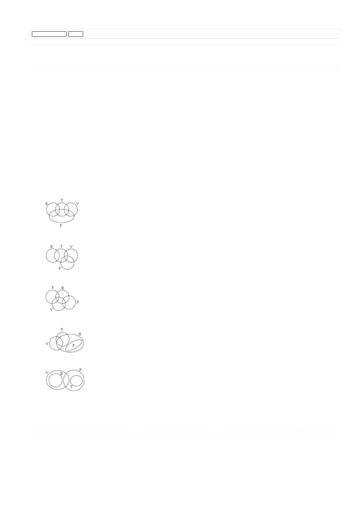 <p>09/12/2017 Questões de Concursos e Perguntas de Concursos Públicos- Aprova Concursos</p><p>https://www.aprovaconcursos.com.br/questoes-de-concurso/questoes/disciplina/Racioc%25C3%25ADnio+L%25C3%25B3gico/banca/FCC/filtro/2… 1/7</p><p>Raciocínio lógico x Fcc x</p><p>646) Q72822 (/questoes-de-concurso/questao/72822) (/questoes-de-concurso/questao/72822#imprimir)</p><p>Provas:</p><p>FCC - 2010 - BAHIAGÁS - Técnico de Processos Organizacionais - Administrativo (/questoes-de-concurso/prova/fcc-2010-bahiagas-tecnico-de-processos-organizacionais-administrativo)</p><p>Disciplina: Raciocínio Lógico (/questoes-de-concurso/disciplina/raciocinio-logico) - Assuntos:</p><p>5. Diagrams de Venn (quantificadores universais) (/questoes-de-concurso/questoes/assunto/5.+Diagrams+de+Venn+%28quantificadores+universais%29)</p><p>Admita as frases seguintes como verdadeiras.</p><p>I. Existem futebolistas (F) que surfam (S) e alguns desses futebolistas também são tenistas (T).</p><p>II. Alguns tenistas e futebolistas também jogam vôlei (V).</p><p>III. Nenhum jogador de vôlei surfa.</p><p>A representação que admite a veracidade das frases é:</p><p>a)</p><p>b)</p><p>c)</p><p>d)</p><p>e)</p><p>647) Q50347 (/questoes-de-concurso/questao/50347) (/questoes-de-concurso/questao/50347#imprimir)</p><p>Provas: FCC - 2010 - TCE-SP - Auxiliar da Fiscalização Financeira (/questoes-de-concurso/prova/fcc-2010-tce-sp-auxiliar-da-fiscalizacao-financeira)</p><p>Disciplina: Raciocínio Lógico (/questoes-de-concurso/disciplina/raciocinio-logico) - Assuntos:</p><p>1. Estruturas lógicas (tabela verdade) (/questoes-de-concurso/questoes/assunto/1.+Estruturas+l%C3%B3gicas+%28tabela+verdade%29)</p><p>Oito carros, de marcas e cores distintas, estão alinhados, lado a lado, aguardando o momento da largada para a disputa de uma corrida. Considere as</p><p>seguintes informações:</p><p>- o Volkswagen está entre os carros vermelho e branco;</p><p>https://www.aprovaconcursos.com.br/questoes-de-concurso/questao/50347</p><p>https://www.aprovaconcursos.com.br/questoes-de-concurso/questao/72822</p><p>https://www.aprovaconcursos.com.br/questoes-de-concurso/questao/50347#imprimir</p><p>https://www.aprovaconcursos.com.br/questoes-de-concurso/disciplina/raciocinio-logico</p><p>https://www.aprovaconcursos.com.br/questoes-de-concurso/disciplina/raciocinio-logico</p><p>https://www.aprovaconcursos.com.br/questoes-de-concurso/questoes/assunto/1.+Estruturas+l%C3%B3gicas+%28tabela+verdade%29</p><p>https://www.aprovaconcursos.com.br/questoes-de-concurso/questoes/assunto/5.+Diagrams+de+Venn+%28quantificadores+universais%29</p><p>https://www.aprovaconcursos.com.br/questoes-de-concurso/prova/fcc-2010-tce-sp-auxiliar-da-fiscalizacao-financeira</p><p>https://www.aprovaconcursos.com.br/questoes-de-concurso/questao/72822#imprimir</p><p>https://www.aprovaconcursos.com.br/questoes-de-concurso/prova/fcc-2010-bahiagas-tecnico-de-processos-organizacionais-administrativo</p>