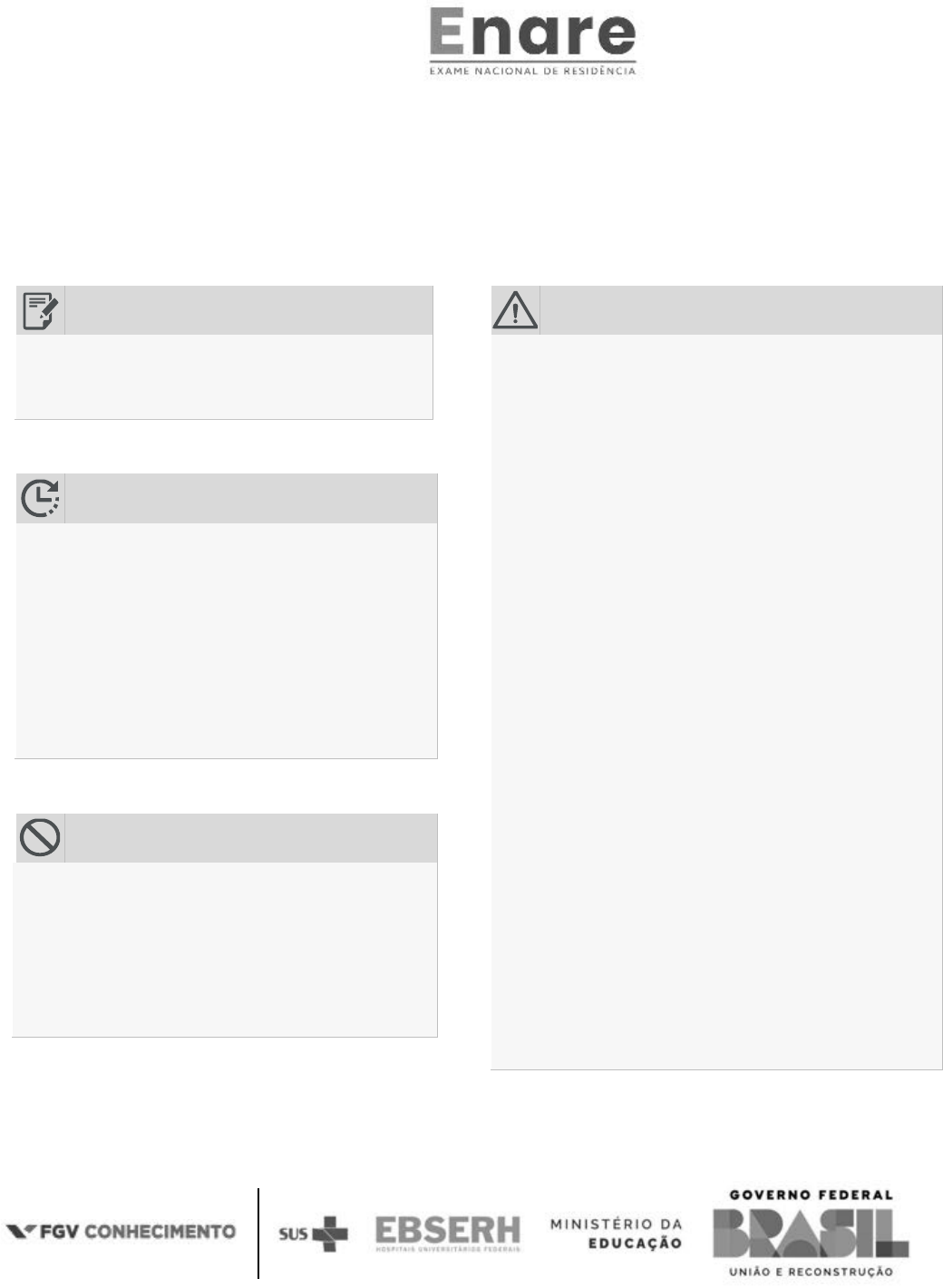EXAME NACIONAL DE RESIDÊNCIA EDIÇÃO 2024/2025 TARDE FISIOTERAPIA (FISIOTT01) PROVA OBJETIVA TIPO 1 SUA PROVA Além deste caderno de questões contendo cem questões objetivas, você receberá do fiscal de sala: • uma folha para a marcação das respostas. TEMPO • 5 horas é o período disponível para a realização da prova, já incluído o tempo para a marcação da folha de respostas. • 1 hora após o início da prova, é possível retirar-se da sala, sem levar o caderno de questões nem qualquer tipo de anotação de suas respostas. • 30 minutos antes do término do período de prova, é possível retirar-se da sala levando o caderno de questões. NÃO SERÁ PERMITIDO • Qualquer tipo de comunicação entre os candidatos durante a aplicação da prova. • Usar o sanitário ao término da prova, após deixar a sala. • Anotar informações relativas às respostas em qualquer outro meio que não seja este caderno de questões. INFORMAÇÕES GERAIS • As questões objetivas têm cinco alternativas de resposta (A, B, C, D, E) e somente uma delas está correta • Verifique se este caderno de questões está completo e sem falhas de impressão. Caso contrário, notifique imediatamente o fiscal da sala, para que sejam tomadas as devidas providências. • Na folha de respostas, confira seus dados pessoais, especialmente nome, número de inscrição e documento de identidade, e leia atentamente as instruções para preencher a folha de respostas. • Use somente caneta esferográfica, fabricada em material transparente, com tinta preta ou azul. • Assine seu nome apenas no espaço reservado na folha de respostas. • Confira o programa, a cor e o tipo do seu caderno de questões. Caso tenha recebido caderno de questões com programa ou tipo diferente do impresso em sua folha de respostas, o fiscal deve ser obrigatoriamente informado para o devido registro na ata da sala. • O preenchimento das respostas é de sua responsabilidade e não será permitida a substituição da folha de respostas em caso de erro. • Para fins de avaliação, serão levadas em consideração apenas as marcações realizadas na folha de respostas. • Os candidatos serão submetidos ao sistema de detecção de metais quando do ingresso e da saída de sanitários durante a realização das provas. Boa sorte! EXAME NACIONAL DE RESIDÊNCIA FGV CONHECIMENTO FISIOTERAPIA (FISIOTT01) TIPO 1 – PÁGINA 2 Conhecimentos Gerais 1 O Inamps se constituía como a política pública de saúde que vigorava antes da criação do SUS e foi extinto pela lei federal 8.689, em 1993. (Fonte: https://www.epsjv.fiocruz.br/instituto-nacional-de-assistencia-medica-da- previdencia-social-inamps) Sobre o Instituto Nacional de Assistência Médica da Previdência Social (INAMPS), avalie as afirmativas e assinale (V) para a verdadeira e (F) para a falsa. ( ) Modelo previdenciário contribuitivo hospitalocêntrico, inclusivo e priorizava a atenção básica à saúde. ( ) Modelo universal de saúde responsável pela melhoria nos indicadores de saúde, como o de mortalidade infantil. ( ) Modelo de gestão que reduziu os custos médico-hospitalares devido ao maior controle orçamentário em saúde. As afirmativas são, respectivamente, (A) V – V – F. (B) F – F – V. (C) V – F – F. (D) F – V – V. (E) F – V – F. 2 A respeito da 8ª Conferência Nacional de Saúde, realizada em Brasília, no ano de 1986, assinale a afirmativa correta. (A) Estabeleceu um marco histórico, mas ainda sem participação popular. (B) Propôs a criação de um sistema de saúde público e de um privado, independentes. (C) Criou o arcabouço do SUS e a Comissão Nacional da Reforma Sanitária (CNRS). (D) Teve como tema central efetivando o SUS – acesso, qualidade e humanização na atenção à saúde com controle social. (E) Criou o Sistema Nacional de Vigilância Epidemiológica. 3 O Decreto nº 7.508/2011, como figura jurídica que dará concretude a cada ente federado frente aos compromissos comuns, instituiu (A) a alocação dos recursos do Fundo Nacional de Saúde (FNS). (B) o Contrato Organizativo da Ação Pública da Saúde (COAP). (C) o Pacto pela Saúde em defesa do SUS, pela vida e pela gestão. (D) os percentuais mínimos a serem investidos nas ações e serviços de saúde. (E) a participação direta e indireta de capital externo na assistência à saúde. 4 Segundo o Art. 3º da Portaria de Consolidação nº 3/2017 do Ministério da Saúde, temos como Rede Temática de Atenção à Saúde, a (A) Rede de Atenção às Urgências e Emergências (RUE). (B) Rede Nacional de Prevenção da Violência e Promoção da Saúde (RNPVS). (C) Rede Nacional de Atenção Integral da Saúde do Trabalhador (RAIST). (D) Rede Brasileira de Avaliação de Tecnologias em Saúde (Rebrats). (E) Rede Nacional de Vigilância Epidemiológica Hospitalar (Renaveh). 5 Segundo a Portaria de Consolidação nº 3/2017 do Ministério da Saúde, a Rede de Atenção à Saúde (RAS) é definida como arranjos organizativos de ações e serviços de saúde, de diferentes densidades tecnológicas, que integradas por meio de sistemas de apoio técnico, logístico e de gestão, buscam garantir a integralidade do cuidado. (Fonte: https://bvsms.saude.gov.br/bvs/saudelegis/ gm/2017/prc0003_03_10_2017.html#CAPITULOI) A esse respeito, analise as afirmativas a seguir. I. Nem todos os pontos de atenção à saúde são importantes para que os objetivos da rede de atenção à saúde sejam cumpridos. II. Os pontos de atenção à saúde espaços em que se ofertam determinados serviços de saúde, por meio de uma produção singular. III. Um dos objetivos da RAS é promover a integração sistêmica de ações e serviços de saúde com provisão de atenção contínua, integral, de qualidade, responsável e humanizada. Está correto o que se afirma em (A) I, apenas. (B) II, apenas. (C) I e II, apenas. (D) I e III, apenas. (E) II e III, apenas. 6 A Equipe do Núcleo