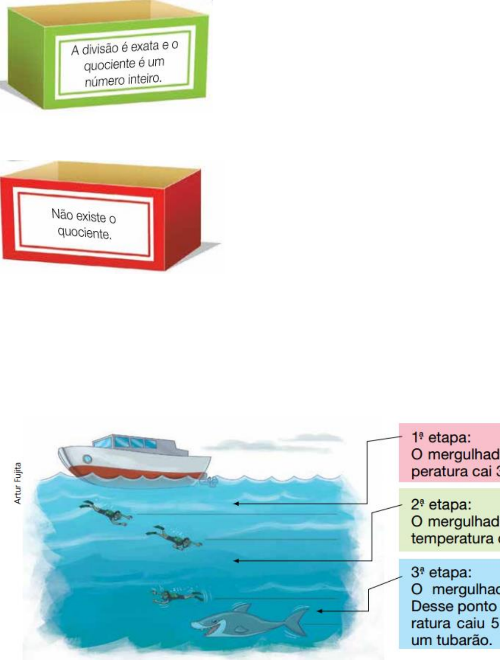 c) Quais fichas ficarão na caixa vermelha? Matemática - Unidade 1 - Capítulo 6 - Divisão - Exercícios Questão 975 O mergulhador está explorando o fundo do mar. A temperatura, na superfície do mar, é de 15 °C.