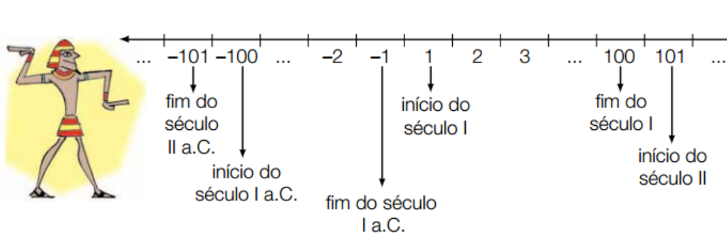 Cristo é o ano 1. A partir do nascimento de Cristo, os anos são indicados por números positivos (ou anos d.C., depois de Cristo). Observe: • No ano -2300 (2300 a.C.), a população do Egito atingiu 5 milhões de habitantes. • No ano -1225 (1225 a.C.), o Egito perdeu o maior de seus soberanos: Ramsés II. • Em -586 (586 a.C.), o rei Nabucodonosor terminou a construção de um conjunto de jardins que ficariam conhecidos como uma das sete maravilhas do mundo: os Jardins Suspensos da Babilônia. • Em -212 (212 a.C.), o célebre matemático e inventor Arquimedes foi morto durante o cerco que os romanos fizeram a Siracusa. • No ano -44 (44 a.C.), o imperador romano César foi assassinado em pleno Senado por três homens. • Em 25/8/1270 morreu Luís IX, rei da França. • Em 6/12/1791 morreu, aos 35 anos, o compositor Wolfgang Amadeus Mozart. Responda: a) Quantos anos se passaram desde o início do ano em que Nabucodonosor terminou a construção dos Jardins Suspensos da Babilônia até o fim do ano em que Mozart morreu? b) Em que ano terminou o século XVIII? c) Quantos anos se passaram desde o início do ano em que Ramsés II morreu até o fim do ano em que Luís IX morreu? d) Em que ano começou o século XVI?