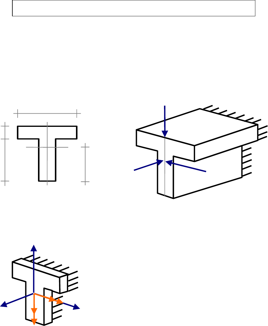 Página 1 de 5 PEF 2308 – Fundamentos de Mecânica das Estruturas – Lista de Exercícios P2-B (E4) Para a viga da figura abaixo com A = 36 cm2, Iy = 204 cm4, Iz = 135 cm4, Determine: a)Os esforços solicitantes na seção mais solicitada; b)A expressão das tensões normais; c)A posição da linha neutra; d)As tensões normais extremas (máxima e mínima). a) No engastamento temos: 2c m 6c m 5c m 9cm G 5 kN 200 kN 10 kN N = - 200 kN Vy = -10 kN Vz = -5 kN My = 250 kN.cm Mz = -500 kN.cm T = 0 Vz Vy N 500 kN.cm 250 kN.cm Página 2 de 5 PEF 2308 – Fundamentos de Mecânica das Estruturas – Lista de Exercícios P2-B b) A tensão normal é dada por: yz z y MMN= - y+ z A I I σ 200 -500 250= - - y+ z 36 135 204 σ = -5,56 + 3,70 y+1, 23zσ c) A linha neutra é dada por: = 0σ -5.56 + 3,70 y+1, 23z = 0 z = -3,01y+ 4,52 d) As tensões normais extremas são nos pontos A e (B ou C): (TRAÇÃO) ( )y=4,5;z=3 -2 A = -5,56 + 3,70.4,5 +1,23.3 = +14,78 kN.cmσ (COMPRESSÃO) ( ) ( )y=-4,5;z=1 -2B = -5,56 + 3,70. -4,5 +1,23.1 = -20,98 kN.cmσ ( ) ( ) ( )y=-1,5;z=-5 -2C = -5,56 + 3,70. -1,5 +1,23. -5 = -17,26 kN.cmσ A(4,5;3) C(-1,5;-5) B(-4,5;1) linha neutra y z Página 3 de 5 PEF 2308 – Fundamentos de Mecânica das Estruturas – Lista de Exercícios P2-B (E5) Para a viga da figura abaixo, determine: a)Os esforços solicitantes extremos; b)Na seção mais solicitada, a posição da linha neutra; c)As tensões normais extremas (máxima e mínima). a) No engastamento temos: y z 2c m 2c m 20 cm 3cm 6cm 3cm 0,4m 0,6m 20 kN 30 kN 25 kN 30 kN 20 kN 25 kN 2500 kN.cm 2000 kN.cm 1800 kN.cm N = 0 kN |Vy|= 25 kN |Vz|= 50 kN My = 3800 kN.cm Mz = -2500 kN.cm T = 0 Página 4 de 5 PEF 2308 – Fundamentos de Mecânica das Estruturas – Lista de Exercícios P2-B b) Características da seção: 3 3 3 4 y total-buraco b.h 12.24 6.20I = = - = 9 824 cm 12 12 12 3 3 3 4 z total-buraco h .b 24.12 20.6I = = - = 3 096 cm 12 12 12 A tensão normal é dada por: yz z y MMN= - y+ z A I I σ 2500 3800= 0 - y+ z 3096 9824 σ = 0,81y+ 0,39 zσ A linha neutra é dada por: = 0σ 0,81y+ 0,39 z = 0 z = -2,08 y y z linha neutra A(6;12) B(-6;-12) Página 5 de 5 PEF 2308 – Fundamentos de Mecânica das Estruturas – Lista de Exercícios P2-B c) As tensões normais extremas são nos pontos A e B: (TRAÇÃO) ( )y=6;z=12 -2 A = 0,81.6 + 0,39.12 = +9,54 kN.cmσ (COMPRESSÃO) ( ) ( ) ( )y=-6;z=-12 -2B = 0,81. -6 + 0,39. -12 = -9,54 kN.cmσ