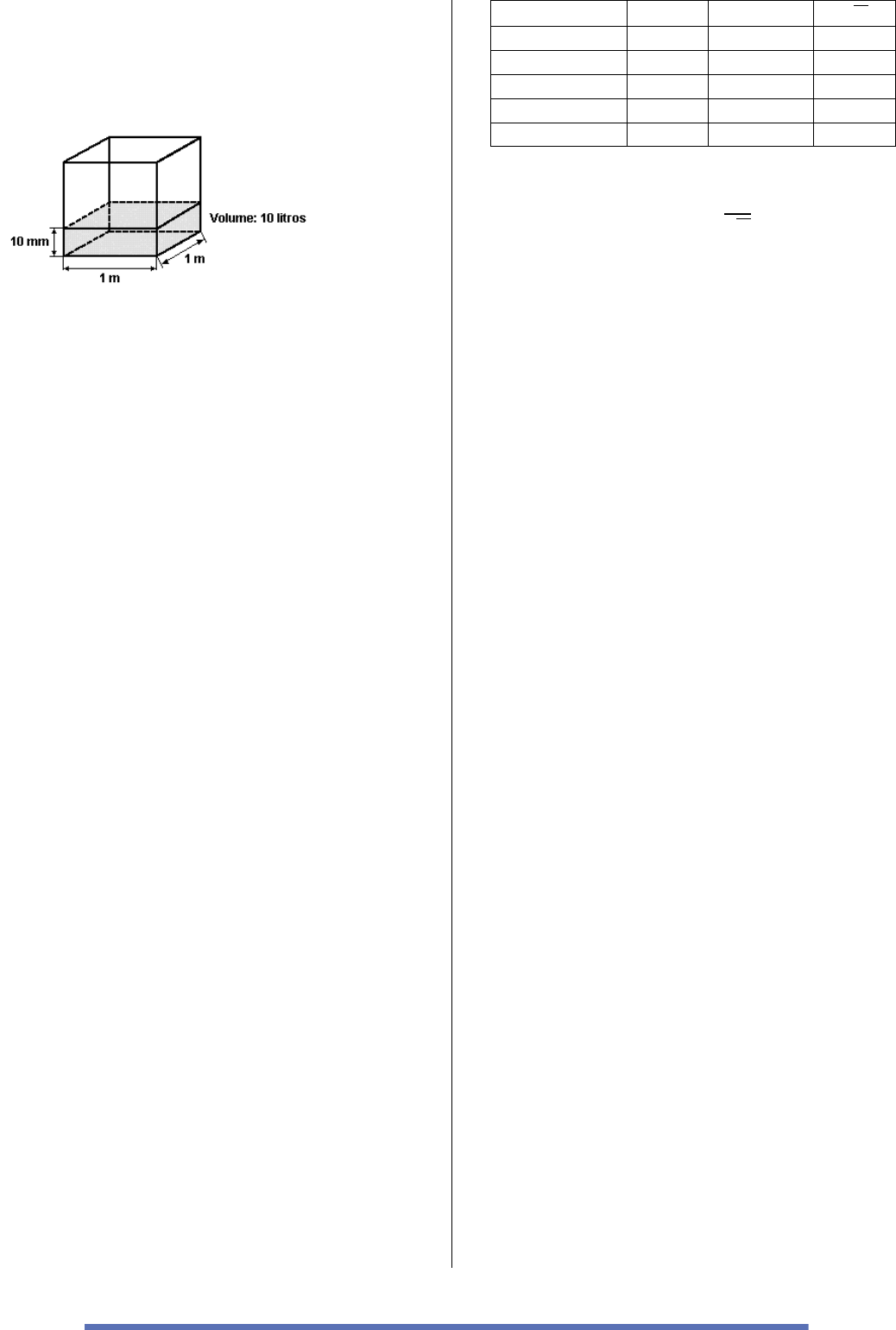 51 M0702 – (Fer) Quando se diz que numa determinada região a precipitação pluviométrica foi de 10 mm, significa que a precipitação naquela região foi de 10 litros de água por metro quadrado, em média. Se numa região de 1 km2 de área ocorreu uma precipitação de 7 cm, quantos litros de água foram precipitados? a) 7 x 106. b) 7 x 107. c) 7 x 108. d) 7 x 109. e) 7 x 1010. M1080 - (Enem) Às 17h 15min começa uma forte chuva, que cai com intensidade constante. Uma piscina em forma de um paralelepípedo retângulo, que se encontrava inicialmente vazia, começa a acumular a água da chuva e, às 18 horas, o nível da água em seu interior alcança 20 cm de altura. Nesse instante, é aberto o registro que libera o escoamento da água por um ralo localizado no fundo dessa piscina, cuja vazão é constante. Às 18h 40 min a chuva cessa e, nesse exato instante, o nível da água na piscina baixou para 15 cm. O instante em que a água dessa piscina terminar de escoar completamente está compreendido entre a) 19h 30 min e 20h 10min. b) 19h 20 min e 19h 30min. c) 19h 10 min e 19h 20 min. d) 19h e 19h 10min. e) 18h 40 min e 19h M1081 - (Enem) Um instituto de pesquisas eleitorais recebe uma encomenda na qual a margem de erro deverá ser de, no máximo, 2 pontos percentuais (0,02). O instituto tem 5 pesquisas recentes, P1 a P5, sobre o tema objeto da encomenda e irá usar a que tiver o erro menor que o pedido. Os dados sobre as pesquisas são os seguintes: Pesquisa 𝜎 N √𝑁 P1 0,5 1.764 42 P2 0,4 784 28 P3 0,3 576 24 P4 0,2 441 21 P5 0,1 64 8 O erro e pode ser expresso por |𝑒|