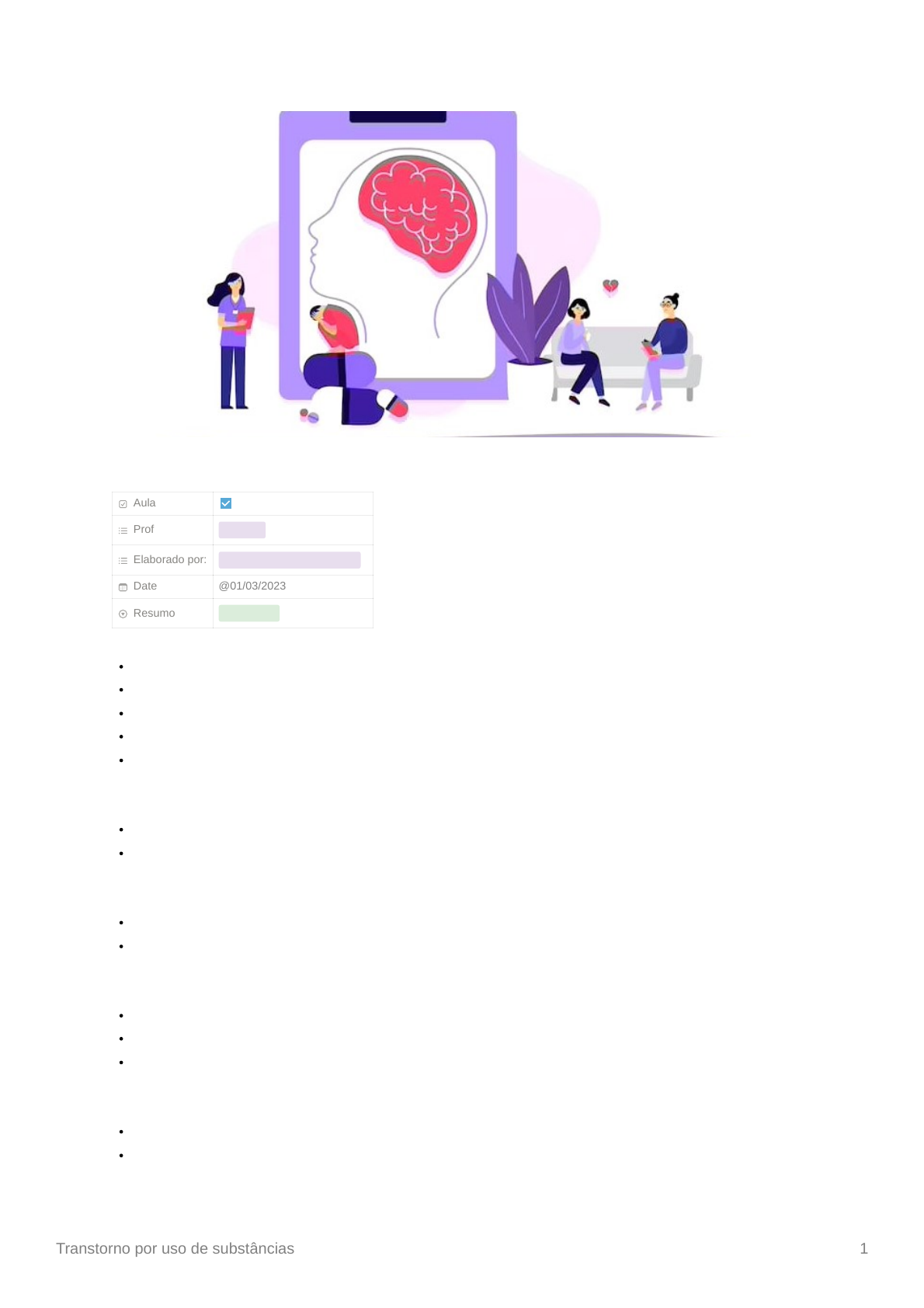 Transtorno por uso de substâncias 1 Transtorno por uso de substâncias Aula Prof Daiane Elaborado por: Nicole Lazzarin - ATM 242 Date Resumo Realizado Importância Grave problema de saúde pública Atinge todas as classes e faixas etárias A dependência química é transtorno cerebral crônico e complexo Repercussão clínica, sociais e econômicas A minoria desses pacientes está em tratamento (1 e cada 6) Substâncias Psicoativas Tem ação no SNC alterando a função cerebral Provocam mudanças na percepção, humo e comportamento Características fundamentais para causar dependência Ação no sistema de recompensa cerebral Rápido início de ação O intenso prazer desencadeado pelo consumo dessas SPAs estimula o indivíduo a realizar autoadministração repetida Tolerância Abstinência Comportamento compulsivo de consumo → Dependência Química Classificação das Substâncias Lícitas Ilícitas @01/03/2023 Transtorno por uso de substâncias 2 Classificação quanto ao efeito Estimulantes → Metanfetamina Depressoras → Álcool Perturbadoras → LSD, maconha Investigação do consumo Substância preferencial e todas em uso Último episódio de consumo Quantidade consumida Via de administração Tipo policonsumo (simultâneo ou alternado Frequência de consumo nos últimos meses Ambiente de consumo Fatores de proteção e de risco Objetivos da avaliação inicial Tratar problema agudo ou emergência Diagnóstico precoce sobre o consumo de substâncias Identificar complicações clínicas, psiquiátricas e sociais Investigar comorbidades psiquiátricas Identificar episódios prévios de tratamento para TUS Motivação para mudança Estabelecer um vínculo empático com o paciente Estabelecer o nível de atenção especializada que o paciente necessitará Padrões de Consumo ver Diagnóstico CID 10 Intoxicação aguda Condição transitória seguindo-se a administração de SPA Está usual e intimamente relacionada aos níveis de doses Os efeitos finalmente desaparecem na ausência de uso posterior da SPA Esse deve ser um diagnóstico principal somente em casos onde a intoxicação ocorre sem que problemas mais persistentes relacionados ao uso de SPA estejam concomitantemente presentes. “Bebedeira do fim de semana” Uso nocivo Uso padrão de uso de SPA que está causando danos à saúde do indivíduo (física ou mental) Com frequência está associado a consequências sociais diversas. A intoxicação aguda ou a “ressaca” não é evidência suficiente de dano para codificar uso nocivo. A presença de síndrome de abstinência ou transtornos mentais relacionados ao consumo, como a dependência, exclui esse diagnóstico. Dependência química A dependência é uma relação disfuncional entre um indivíduo e seu modo de consumir uma determinada substância psicoativa. Houve modulação cerebral no sistema de recompensa Causam sintomas se o paciente reduzir ou parar o consumo da substância. Transtorno por uso de substâncias 3 A avaliação inicial começa pela identificação dos sinais e sintomas que caracterizam tal situação Compulsão para o consumo – perda de controle sobre o consumo Aumento da tolerância – necessidade de doses cada vez maiores Síndrome de abstinência Alívio ou evitação da abstinência pelo aumento do consumo Relevância do consumo Tratamento Individualizado e multidisciplinar Cuidado com o estigma - preconceito afasta o indivíduo do tratamento Álcool Lícita, depressora do SNC O álcool é a droga que mais gera violência familiar e urbana, e é considerado um dos 10 mais importantes problemas de saúde na atenção primária. Existe uma forte associação entre depressão e abuso de álcool. Mais de 20% das tentativas de suicídio está relacionada com o uso de álcool Concentração Álcoolica Concentração alcoólica das bebidas Cerveja – 3,5 a 4% Vinho – 10 a 12% Uísque/conhaque – 30 a 40% Vodka/gin – 30 a 40% Aguardente (cachaça) – até 76% Unidades de álcool Mede o consumo de álcool. Cada unidade da substância equivale a cerca de 10g de álcool puro. Calcula-se o número de unidades multiplicando-se a quantidade consumida (mL) pela concentração alcoólica da bebida, e depois dividindo-se o resultado por 10: Ex.: 150mL uísque a 40% 150 x 0,4 = 60g álcool puro 60/10 = 6 unidades de álcool Padrão em Binge Padrão de beber no qual a quantidade pe de 5 ou + doses para homens ou 4 ou + para mulheres em uma só ocasião (2 horas). Doses: 350ml de cerveja 150mL de vinho 500mL de destilado Intoxicação Alcoolica - Manejo Interromper a ingesta, decúbito lateral, ambiente seguro e livre de estímulos Exame físico, laboratorail Investigar uso concomitante de outras SPAs Haloperidol 5mg IM se APM intensa (30/30’) Tiamina IM sempre indicada SF somente se desidratado Glicose, se necessário Transtorno por uso de substâncias 4 Intoxicação Patológica Reação de exrtrema agitação e comportamento violento, que não é típico do indivíduuo Após o descontrole de impulsos e agressividade é comum ocorrer exaustão e amnésia Quadro autolimitado O paciente deve ser orientado a se abster do consumo Diferenciar de intoxicação alcoolica grave, apilepsia, delirium, outros transtornos Uso nocivo do alcool Padrão de beber problemático associado a diversos prejuízos Manejo: oportunidade de intervir e evidar progressão Síndrome de dependência de Álcool Síndrome de abstinência alcoólica Aumento das atividades autonômicas tremos em extremidades ansiedade sudorese, taquicardia cefaleia, nausea e vômitos desorientação, pensamento flutuante Manejo Dependendo da gravidade ambulatorial ou hospitalar Ambiente calmo, dieta leve Tiamina - 1 amp IM/d/5-7d após 300mg/d VO BZD - diazepan, lorazepan (hepatopatas) - dose baseada no quadro (60mg/d) redução gradual, retirar em até 15 d Contenção física só se a APM externa Delirium Tremens Grave complicação da SAA Estado de confusão mental Dissulfiran Naltrexona 50m