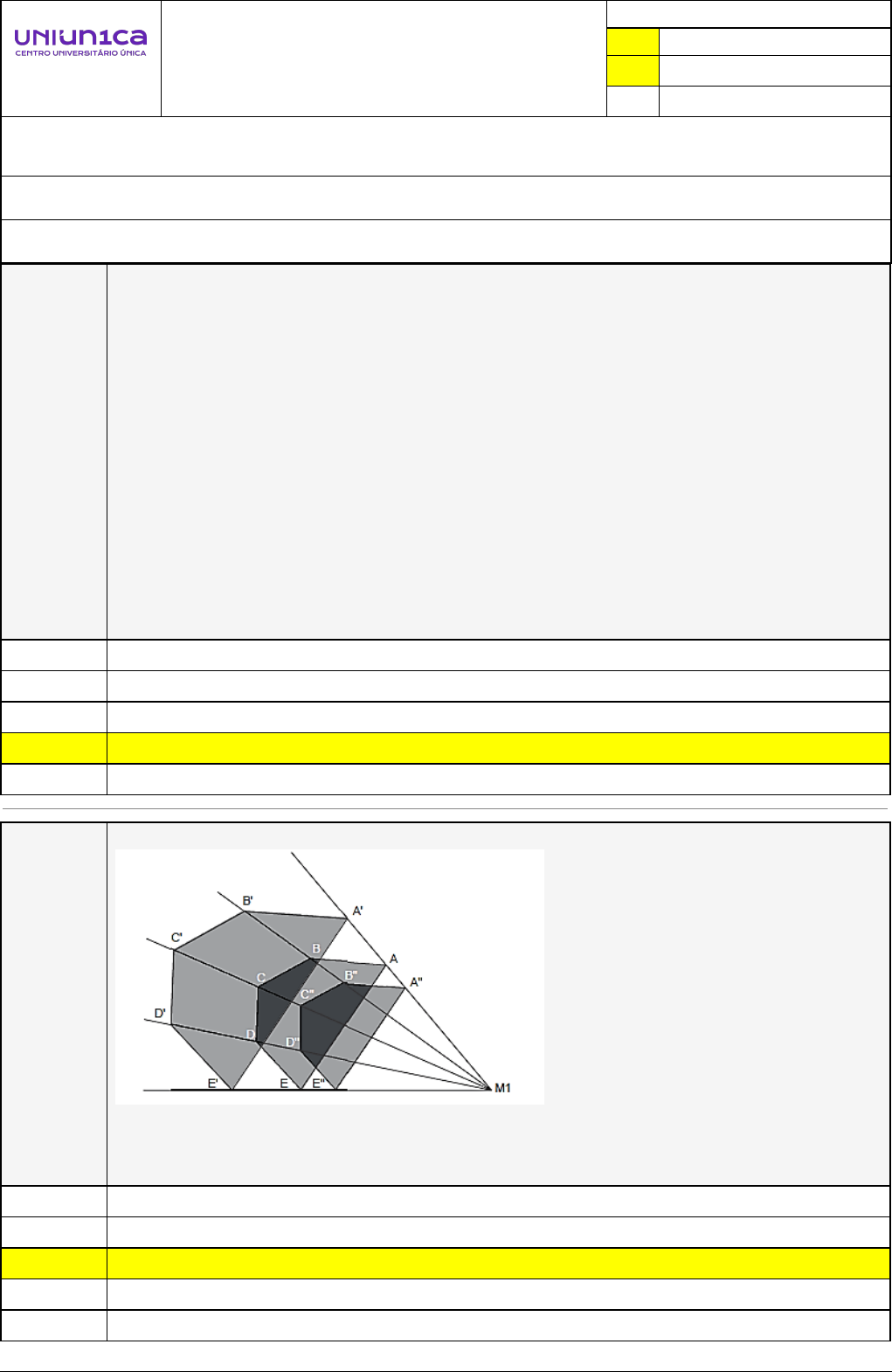 Pincel Atômico - 21/10/2024 16:47:06 1/5 LUCAS FLORETINO GONÇALVES Exercício Caminho do Conhecimento - Etapa 10 (21441) Atividade finalizada em 18/09/2024 15:33:23 (2604943 / 1) LEGENDA Resposta correta na questão # Resposta correta - Questão Anulada X Resposta selecionada pelo Aluno Disciplina: GEOMETRIA: FUNDAMENTOS E MÉTODOS DE ENSINO E PRÁTICAS PEDAGÓGICAS [1172062] - Avaliação com 8 questões, com o peso total de 1,67 pontos [capítulos - 5] Turma: Segunda Graduação: Segunda Graduação 6 meses - Licenciatura em Matemática - Grupo: FPD-JUN/2024 - SGegu0A280624 [131405] Aluno(a): 91636784 - LUCAS FLORETINO GONÇALVES - Respondeu 8 questões corretas, obtendo um total de 1,67 pontos como nota [359903_152505] Questão 001 Ao longo do percurso escolar, especialmente em Geografia, temos contato com muitos mapas e outros desenhos que utilizam um recurso bastante propício para representações de coisas grandes demais ou pequenas demais: a escala. Do ponto de vista da Matemática e das construções geométricas, a escala é uma relação entre duas dimensões lineares que guardam, entre si, uma proporção que permite desenhar um objeto pequeno ou grande demais com tamanhos que possamos enxergar em nosso campo visual natural. Isto é, conseguimos representar as dimensões reais de objetos por meio de desenhos ou construções que estão ligados, __________, por uma _________ com o objeto original. Assim, outros dois conceitos muito presentes ao se trabalhar com escalas são os de ________, que pode ser entendida como divisão ou relação de tamanho entre grandezas, e _________, que é a relação de igualdade entre as partes de uma grandeza. Analisando-se esse excerto, pode-se afirmar que as palavras ou expressões que melhor completam as lacunas são, nessa ordem: geometricamente – razão – proporção – proporção. proporcionalmente – proporção – razão – razão. racionalmente – razão – proporcionalmente – proporção. X proporcionalmente – razão – razão – proporção. de forma racional – proporcionalmente – razão – proporção. [359904_152508] Questão 002 (FCC/Metrô SP/Analista de Desenho Industrial) Considere a figura abaixo: A figura demonstra o procedimento utilizado para a ampliação ou redução, a partir da replicação de figuras geométricas tomadas como modelo, processo este conhecido como Rosácea. Polígono de Sierpinski. X Homotetia. Curva de Koch. Mosaico. Pincel Atômico - 21/10/2024 16:47:06 2/5 [359903_152506] Questão 003 (INEP/2015/Enem) Na imagem, a personagem Mafalda mede a circunferência do globo que representa o planeta Terra. QUINO. Toda Mafalda. São Paulo: Martins Fontes, 2008 (adaptado). Em uma aula de Matemática, o professor considera que a medida encontrada por Mafalda, referente à maior circunferência do globo, foi de 80 cm. Além disso, informa que a medida real da maior circunferência da Terra, a linha do Equador, é de aproximadamente 40 000 km. A circunferência da linha do Equador é quantas vezes maior do que a medida encontrada por Mafalda? 5 000 000. X 50 000 000. 5 000. 500. 500 000. [359903_152935] Questão 004 As transformações de semelhança no plano possuem propriedades e conceitos que são muito úteis a diversas áreas do conhecimento como a própria Matemática, a Engenharia, a Arquitetura, as Ciências Biológicas, dentre outras. Em relação a essas transformações, analise as seguintes afirmativas: I. A transformação de semelhança chamada de homotetia gera objetos semelhantes ao original a partir da multiplicação das medidas de seus segmentos de reta por um valor constante. II. Num processo de homotetia, a transformação não gera deformação. III. Se a razão de homotetia é negativa, a orientação espacial da figura não é alterada, mas ocorre uma ampliação. Sobre essas afirmações, é correto afirmar que as verdadeiras estão em: I, II e III. II, apenas. II e III, apenas. I e III, apenas. X l e II, apenas. Pincel Atômico - 21/10/2024 16:47:06 3/5 [359903_152929] Questão 005 (NUCEPE/2019/Prefeitura de Teresina-PI/PEB Geografia) Observe a representação abaixo: Sabendo-se que a distância entre os pontos A e B no mapa é de 4 cm e que esses dois pontos representam a localização de duas cidades brasileiras distantes 1.900 km uma da outra, a escala do mapa é: X 1: 47.500.000. 1: 190.000.000. 1: 1.900. 1: 475.000. 1: 4.750.000. [359903_152507] Questão 006 (INEP/2021/Enem) Um estudante, morador da cidade de Contagem, ouviu dizer que nessa cidade existem ruas que formam um hexágono regular. Ao pesquisar em um sítio de mapas, verificou que o fato é verídico, como mostra a figura. Ele observou que o mapa apresentado na tela do computador estava na escala 1: 20 000. Nesse instante, mediu o comprimento de um dos segmentos que formam os lados desse hexágono, encontrando 5 cm. Se esse estudante resolver dar uma volta completa pelas ruas que formam esse hexágono, ele percorrerá, em quilômetro, 24. Pincel Atômico - 21/10/2024 16:47:06 4/5 20. 1. 4. X 6. [359903_152933] Questão 007 (CESPE/CEBRASPE/2016/Depto. de Polícia Federal/Desenhista – adaptado). Quando dois polígonos são homotéticos, infere-se que eles são polígonos semelhantes colocados de maneira tal que seus lados homólogos fiquem paralelos. Polígonos ou figuras planas equivalentes apresentam uma mesma área, independentemente de suas formas. Considerando essas informações e a figura acima, é correto afirmar que: A figura C possui homotetia direta e A, inversa. Todas as figuras são inversas, homoteticamente. A figura C possui homotetia indireta e as figuras B e A, invertida. As figuras A e B são homotetias diretas em relação à figura C. X A figura C possui homotetia inversa e a figura A, direta em relação à figura B. [359904_152511] Questão 008 (OBJETIVA/2018/EPTC/Auxiliar de Administração – adaptada) A figura abaixo foi montada através de um Tangram (quebra-cabeça chinês f