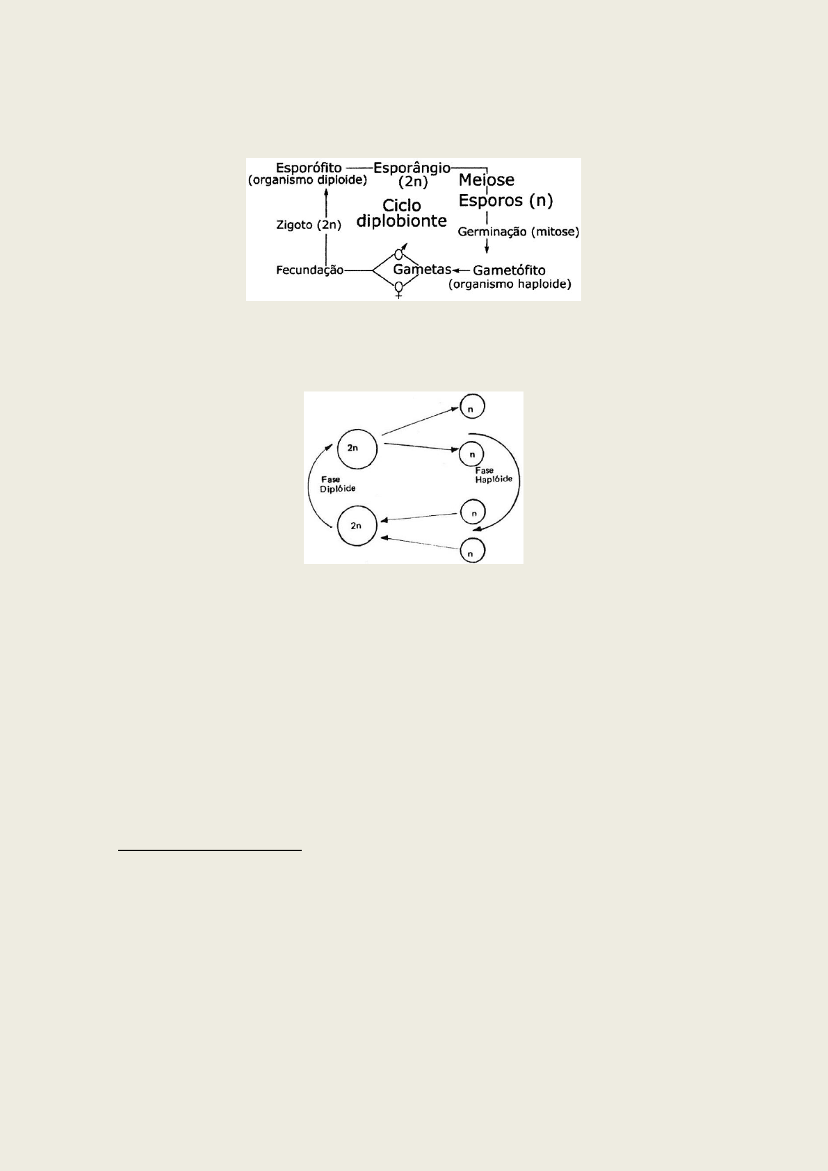 620 QUESTÕES DE BIOLOGIA... COM COMENTÁRIO E RESOLUÇÃO! 13. (PUC-SP) Em qualquer organismo, os ciclos de reprodução sexuada se apresentam como uma sucessão de duas fases complementares, denominadas fase haploide e fase diploide. Esta alternância de fases constitui a verdadeira característica sexuada e, para melhor compreensão, está esquematizada abaixo: Em relação a este processo de reprodução, foram formuladas três alternativas: I. A passagem da fase diploide para a fase haploide ocorre pelo processo da meiose e a volta à fase diploide resulta da fecundação. II. A importância relativa das duas fases é variável nos seres que se reproduzem sexuadamente. Em todos os vegetais a multiplicação celular, e consequentemente, o crescimento da planta ocorrem, exclusivamente, na fase haploide e, portanto, todos os vegetais são haplobiônticos. Em todos os animais a fase haploide está limitada aos gametas e, portanto, todos os animais são diplobiônticos. III. A reprodução sexuada, independente das características haplobiônticas ou diplobiônticas, apresenta, como vantagem, permitir que através da fecundação ocorra a recombinação gênica e, portanto, a possibilidade de variabilidade biológica. Assinale a resposta correta de acordo com a seguinte chave: a) Somente a afirmativa I está correta. b) Estão corretas I e III. c) Somente a afirmativa II está correta. d) Estão corretas II e III. e) Somente a afirmativa III está correta. ALTERNATIVA CORRETA: B (“Estão corretas I e III.”) - A reprodução é a mais notável característica dos sistemas vivos. É, em verdade, a capacidade que os seres vivos possuem de, ao chegarem num certo estágio de desenvolvimento, originar organismos, promovendo a perpetuação da especie e produzindo novos indivíduos que vão substituí-lo no meio ambiente. É, em última análise, o único mecanismo capaz de perpetuar as espécies no espaço e no tempo. Devido a esse processo, a extinção do organismo não leva, necessariamente, a extinção da espécie. Sabe-se que todos os seres vivos se reproduzem. Alguns de maneira bem simples, outros de modo bastante complicado. Podemos também analisar, em um indivíduo, a reprodução do ponto de vista celular. Neste caso, ela visa, nos organismos pluricelulares, a compensação dessas unidades, destruídas pelo desgaste normal, bem como, a reposição de células perdidas acidentalmente, como em um ferimento, por exemplo. Sem dúvida, a duplicação de um organismo maior, http://djalmasantos.files.wordpress.com/2013/04/52.jpg