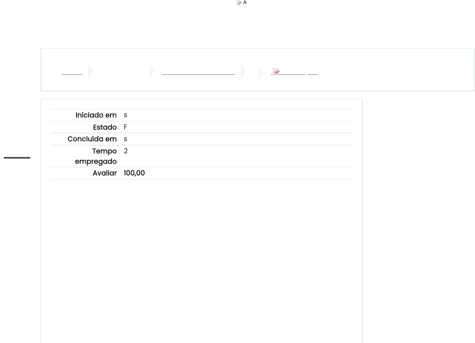 Painel Meus cursos 10152004-T01-2024-2 📝 Avaliação Iniciado em sábado, 12 out 2024, 09:07 Estado Finalizada Concluída em sábado, 12 out 2024, 11:08 Tempo empregado 2 horas Avaliar 100,00 de um máximo de 100,00 12/10/2024, 12:09 📝 Avaliação: Revisão da tentativa https://ava.ufms.br/mod/quiz/review.php?attempt=1130867&cmid=915917 1/11 https://ava.ufms.br/my/ https://ava.ufms.br/course/view.php?id=63913 https://ava.ufms.br/mod/quiz/view.php?id=915917 javascript:void(0); https://ava.ufms.br/user/index.php?id=63913 https://ava.ufms.br/theme/moove/certificates.php?id=63913 https://ava.ufms.br/admin/tool/lp/coursecompetencies.php?courseid=63913 https://ava.ufms.br/grade/report/index.php?id=63913 https://ava.ufms.br/my/ https://ava.ufms.br/?redirect=0 https://ava.ufms.br/calendar/view.php?view=month&course=63913 javascript:void(0); https://ava.ufms.br/user/files.php Comentários 12/10/2024, 12:09 📝 Avaliação: Revisão da tentativa https://ava.ufms.br/mod/quiz/review.php?attempt=1130867&cmid=915917 2/11 javascript:void(0); https://ava.ufms.br/user/index.php?id=63913 https://ava.ufms.br/theme/moove/certificates.php?id=63913 https://ava.ufms.br/admin/tool/lp/coursecompetencies.php?courseid=63913 https://ava.ufms.br/grade/report/index.php?id=63913 https://ava.ufms.br/my/ https://ava.ufms.br/?redirect=0 https://ava.ufms.br/calendar/view.php?view=month&course=63913 javascript:void(0); https://ava.ufms.br/user/files.php Questão 1 Correto Atingiu 10,00 de 10,00 Associe as ferramentas de avaliação com suas características. Permite que os estudantes compartilhem e discutam ideias sobre um tema. Avaliação que pode incluir questões de múltipla escolha e dissertativas. Ferramenta que reúne trabalhos e reflexões do estudante ao longo do curso. Avaliação que promove a autonomia ao permitir que estudantes avaliem uns aos outros. Avaliação que pode incluir a escrita colaborativa entre estudantes. Fóruns de discussão Testes online Portfólio Avaliação por pares Avaliação escrita 12/10/2024, 12:09 📝 Avaliação: Revisão da tentativa https://ava.ufms.br/mod/quiz/review.php?attempt=1130867&cmid=915917 3/11 javascript:void(0); https://ava.ufms.br/user/index.php?id=63913 https://ava.ufms.br/theme/moove/certificates.php?id=63913 https://ava.ufms.br/admin/tool/lp/coursecompetencies.php?courseid=63913 https://ava.ufms.br/grade/report/index.php?id=63913 https://ava.ufms.br/my/ https://ava.ufms.br/?redirect=0 https://ava.ufms.br/calendar/view.php?view=month&course=63913 javascript:void(0); https://ava.ufms.br/user/files.php Questão 2 Correto Atingiu 10,00 de 10,00 Associe os princípios da avaliação em ambientes virtuais com suas descrições. Avaliação que busca refletir situações reais e práticas do mundo fora da sala de aula. Avaliação que considera as diferentes necessidades e contextos dos estudantes. Avaliação que se concentra em medir o desempenho em um único momento. Avaliação que envolve a participação ativa dos estudantes na construção do conhecimento. Avaliação que ocorre ao longo do processo de aprendizagem, permitindo ajustes e melhorias. Avaliação formativa Avaliação autêntica Avaliação inclusiva Avaliação colaborativa Avaliação contínua 12/10/2024, 12:09 📝 Avaliação: Revisão da tentativa https://ava.ufms.br/mod/quiz/review.php?attempt=1130867&cmid=915917 4/11 javascript:void(0); https://ava.ufms.br/user/index.php?id=63913 https://ava.ufms.br/theme/moove/certificates.php?id=63913 https://ava.ufms.br/admin/tool/lp/coursecompetencies.php?courseid=63913 https://ava.ufms.br/grade/report/index.php?id=63913 https://ava.ufms.br/my/ https://ava.ufms.br/?redirect=0 https://ava.ufms.br/calendar/view.php?view=month&course=63913 javascript:void(0); https://ava.ufms.br/user/files.php Questão 3 Correto Atingiu 10,00 de 10,00 “Debater estes desafios requer um olhar de futuro para a avaliação que não se limita a receitas prontas sobre a melhor forma de avaliar. Procuramos desenvolvê-la como ferramenta diagnóstica e formadora." Qual é a abordagem sugerida para a avaliação, de acordo com o trecho? Escolha uma opção: a. A avaliação deve ser vista como um processo dinâmico e adaptável, focando no diagnóstico e na formação. b. A avaliação deve ser simplificada para facilitar a correção. c. A avaliação deve ser exclusivamente quantitativa, focando em resultados numéricos. d. A avaliação deve ser realizada apenas no final do curso para medir o aprendizado acumulado. e. A avaliação deve ser padronizada e seguir um modelo rígido. 12/10/2024, 12:09 📝 Avaliação: Revisão da tentativa https://ava.ufms.br/mod/quiz/review.php?attempt=1130867&cmid=915917 5/11 javascript:void(0); https://ava.ufms.br/user/index.php?id=63913 https://ava.ufms.br/theme/moove/certificates.php?id=63913 https://ava.ufms.br/admin/tool/lp/coursecompetencies.php?courseid=63913 https://ava.ufms.br/grade/report/index.php?id=63913 https://ava.ufms.br/my/ https://ava.ufms.br/?redirect=0 https://ava.ufms.br/calendar/view.php?view=month&course=63913 javascript:void(0); https://ava.ufms.br/user/files.php Questão 4 Correto Atingiu 10,00 de 10,00 Associe os desafios da avaliação na EaD com suas soluções. Superar a visão unidimensional da avaliação. Utilizar múltiplos instrumentos de avaliação para captar diferentes habilidades. Implementar avaliações colaborativas e interativas. Promover um ambiente de aprendizagem mais engajador e participativo. Adaptar as avaliações para que sejam mais formativas e menos classificatórias. Avaliação tradicional Dificuldade em mensurar aprendizado Necessidade de diversificação Falta de interação Resistência dos estudantes 12/10/2024, 12:09 📝 Avaliação: Revisão da tentativa https://ava.ufms.br/mod/quiz/review.php?attempt=1130867&cmid=915917 6/11 javascript:void(0); https://ava.ufms.br/user/index.php?id=63913 https://ava.ufms.br/theme/moove/certificates.php?id=63913 https://ava.ufms.br/admin/tool/l