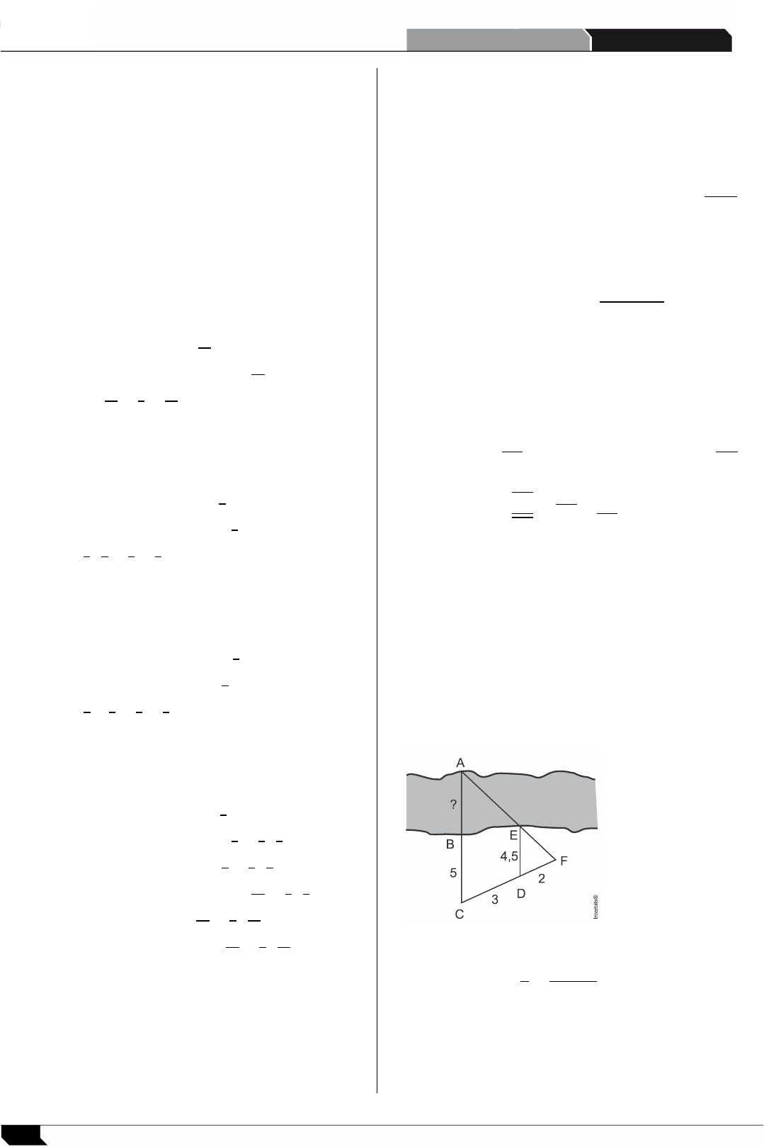 68 CURSO VASCO VASCONCELOS DESAFIO DOS 100 DIAS Após aplicar o Teorema de Pitágoras no segundo triân- gulo descrito, podemos concluir que a medida da base do trapézio é, em metros, a) 5. b) 9. c) 14. d) 24. e) 50. Gabarito: Resposta da questão 1: [D] O resultado é dado por 0,463 ⋅ 10 ⋅ 106 ⋅ 20 = 9,26 ⋅ 107. Resposta da questão 2: [D] [A] Tempo de duração da fusa: 1 32 Tempo de duração da semicolcheia: 1 16 Note que 2 ⋅ 1 16 = 1 8 ≠ 1 32 , logo, o tempo de duração da fusa não é o dobro do tempo de duração da semi- colcheia. Assim, a alternativa [A] é falsa. [B] Tempo de duração da mínima: 1 2 Tempo de duração da semínima: 1 4 Note que 1 2 ⋅ 1 4 = 1 8 ≠ 1 2 , logo, o tempo de duração da mínima não é metade do tempo de duração da semí- nima. Assim, a alternativa [B] é falsa. [C] Tempo de duração da semínima: 1 4 Tempo de duração da colcheia: 1 8 Note que 1 4 + 1 4 = 1 2 ≠ 1 8 , logo, a soma da duração de duas semínimas não é igual ao tempo de duração de uma colcheia. Assim, a alternativa [C] é falsa. [D] Tempo de duração da mínima: 1 2 Tempo de duração da semínima: 1 4 = 1 2 ⋅ 1 2 Tempo de duração da colcheia: 1 8 = 1 2 ⋅ 1 4 Tempo de duração da semicolcheia: 1 16 = 1 2 ⋅ 1 8 Tempo de duração da fusa: 1 32 = 1 2 ⋅ 1 16 Tempo de duração da semifusa: 1 64 = 1 2 ⋅ 1 32 Assim, com exceção da semibreve, cada figura rít- mica apresenta metade do tempo de duração da fi- gura dada na linha anterior, ou seja, a alternativa [D] é verdadeira. [E] Conforme análise da alternativa [D], com exceção da semibreve, cada figura rítmica apresenta metade do tempo de duração da figura dada na linha anterior e não o dobro do tempo, logo, a alternativa [E] é falsa. Resposta da questão 3: [B] Sendo 25 𝑚3 = 25000 𝑑𝑚3 = 25000 L, podemos con- cluir que o consumo diário por pessoa foi de 25000 5⋅30 ≅ 167 L, ou seja, no limite do bom senso. Resposta da questão 4: [C] O resultado pedido é dado por 1,3⋅109⋅103 800⋅106⋅365 ≅ 4. Resposta da questão 5: [A] O resultado é dado por 5 ⋅ 10 ⋅ 1,3 ⋅ 3 = 195 𝑚2. Resposta da questão 6: [B] Sabendo que 𝐴𝐵 = 2 ⋅ 65 = 130 𝑐𝑚, temos 𝐴𝐻 = 50 𝑐𝑚 e, portanto, vem 𝑡𝑔 𝛽 = 𝐴𝐻 𝐶𝐻 ⇒ 𝐶𝐻 ≅ 50 0,4 = 125 𝑐𝑚. A resposta é 120 + 125 = 245 𝑐𝑚 = 2,45 𝑚. Resposta da questão 7: [E] Sendo 𝑥 a quantidade de startups auxiliadas por cada aluno, temos: 8𝑥 = 3 ⋅ 32 ∴ 𝑥 = 12 Resposta da questão 8: [A] 𝛥𝐹𝐸𝐷 − 𝛥𝐹𝐴𝐶 2 5 = 4,5 5 + 𝐴𝐵 10 + 2𝐴𝐵 = 22,5 2𝐴𝐵 = 12,5 𝐴𝐵 = 6,25 Resposta da questão 9: [D]
