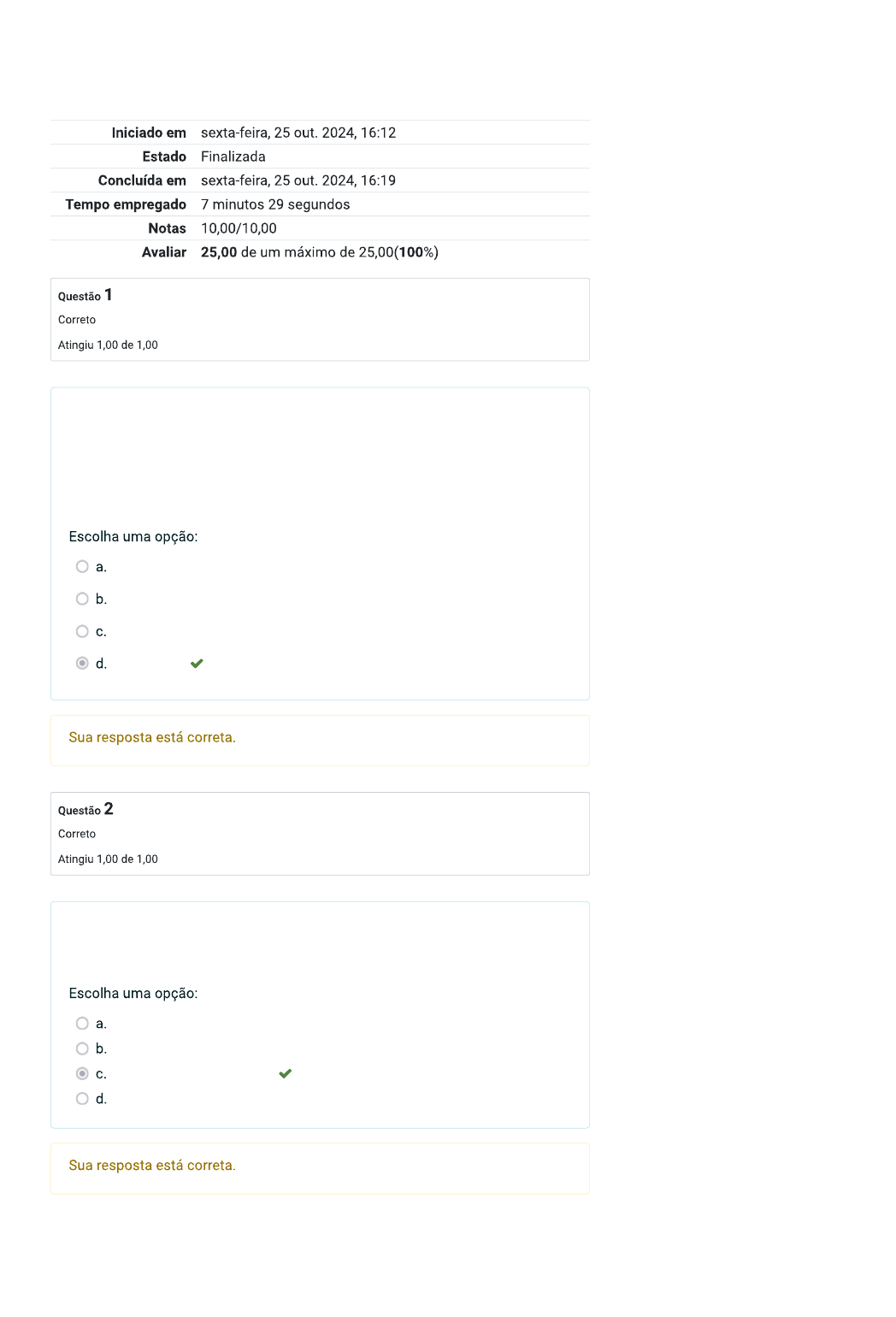 Ordene as fases do plano da qualidade: I. identifique os clientes II. otimize as características dos produtos III. traduza as necessidades dos clientes em especificações IV. operacionalize os processos I, II, III, IV IV, III, II, I I, III, IV, II I, III, II, IV Trata-se do processo de estabelecer os objetivos para qualidade e desenvolver os planos para alcançar esses objetivos. melhoramento da qualidade custo de falhas planejamento da qualidade controle da qualidade Firefox http://www.ucs.saeb.ba.gov.br/mod/quiz/review.php?attempt=80489... 1 of 4 25/10/2024, 16:20 Contempla avaliar o desempenho operacional atual, compará-lo com os objetivos e agir nas diferenças: planejamento da qualidade custo de falhas melhoramento da qualidade controle da qualidade Qual elemento da trilogia de Juran possui objetivo de aprimorar os níveis atuais de desempenho da qualidade? planejamento da qualidade controle da qualidade custo de falhas melhoramento da qualidade Decorre de refugos e retrabalho e ocorre antes de o produto/serviço chegar ao cliente. melhoramento da qualidade planejamento da qualidade controle da qualidade custo de falhas internas Firefox http://www.ucs.saeb.ba.gov.br/mod/quiz/review.php?attempt=80489... 2 of 4 25/10/2024, 16:20 O Seiso – palavra japonesa que pode ser traduzida como “senso de limpeza” pode ser exemplificada como quando servidores eliminam o pó, a sujeira e os objetos desnecessários e também zelam pela manutenção da limpeza nos postos de trabalho. A qualidade para as empresas privadas representa, principalmente, rentabilidade do investimento, sendo que para instituições públicas, a exemplo da Justiça Brasileira, representa maior produtividade e melhor reputação. A qualidade contempla características dos produtos/serviços que atendem às necessidades dos clientes, independentemente da satisfação destes. Cada parte de um sistema contribui para o propósito do todo, mas uma parte por si só pode alcançar aquele propósito. Firefox http://www.ucs.saeb.ba.gov.br/mod/quiz/review.php?attempt=80489... 3 of 4 25/10/2024, 16:20 O Pensamento Sistêmico refere-se ao reflexo geral ou hábito de conceber a realidade em termos de interdependência, interações e sequências. Firefox http://www.ucs.saeb.ba.gov.br/mod/quiz/review.php?attempt=80489... 4 of 4 25/10/2024, 16:20