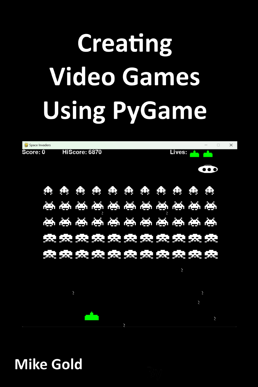 Creating Video Games using PyGame With Step by Step Examples Mike Gold This book is for sale at http://leanpub.com/creatingagameusingpygame This version was published on 2023-05-02 ISBN 979-8-89034-116-7 This is a Leanpub book. Leanpub empowers authors and publishers with the Lean Publishing process. Lean Publishing is the act of publishing an in-progress ebook using lightweight tools and many iterations to get reader feedback, pivot until you have the right book and build traction once you do. © 2023 Mike Gold http://leanpub.com/creatingagameusingpygame https://leanpub.com https://leanpub.com/manifesto Table of Contents Setting up Python and Pygame . . . . . . . . . . . . . . . . 1 Getting Started . . . . . . . . . . . . . . . . . . . . . . . . 1 Installing Pygame . . . . . . . . . . . . . . . . . . . . . . . 3 Intro To Python . . . . . . . . . . . . . . . . . . . . . . . . . . 5 Intro To PyGame . . . . . . . . . . . . . . . . . . . . . . . . . 24 Blinking Hello World . . . . . . . . . . . . . . . . . . . . . 28 Responding to the Keyboard . . . . . . . . . . . . . . . . . 34 Conclusion . . . . . . . . . . . . . . . . . . . . . . . . . . . 38 Tic Tac Toe in PyGame . . . . . . . . . . . . . . . . . . . . . 39 Intro . . . . . . . . . . . . . . . . . . . . . . . . . . . . . . . 39 Main Loop . . . . . . . . . . . . . . . . . . . . . . . . . . . 40 Processing Events . . . . . . . . . . . . . . . . . . . . . . . 41 Drawing the Board . . . . . . . . . . . . . . . . . . . . . . 42 A better AI . . . . . . . . . . . . . . . . . . . . . . . . . . . 50 Conclusion . . . . . . . . . . . . . . . . . . . . . . . . . . . 54 Using Classes in Pygame . . . . . . . . . . . . . . . . . . . . 55 Introduction . . . . . . . . . . . . . . . . . . . . . . . . . . 55 Refactoring the Game Logic . . . . . . . . . . . . . . . . . . 60 Conclusion . . . . . . . . . . . . . . . . . . . . . . . . . . . 68 Chapter 6 - Stone Eater . . . . . . . . . . . . . . . . . . . . . 70 Introduction . . . . . . . . . . . . . . . . . . . . . . . . . . 70 TABLE OF CONTENTS The Game Design . . . . . . . . . . . . . . . . . . . . . . . 71 Detecting Key Strokes . . . . . . . . . . . . . . . . . . . . 77 Space Invasion in PyGame . . . . . . . . . . . . . . . . . . . 92 Introduction . . . . . . . . . . . . . . . . . . . . . . . . . . 92 How to play . . . . . . . . . . . . . . . . . . . . . . . . . . 93 The Main Loop . . . . . . . . . . . . . . . . . . . . . . . . 95 Game Sprites . . . . . . . . . . . . . . . . . . . . . . . . . . 97 Invader Sprite . . . . . . . . . . . . . . . . . . . . . . . . . 101 Bullet Sprite . . . . . . . . . . . . . . . . . . . . . . . . . . 104 Bomb Sprite . . . . . . . . . . . . . . . . . . . . . . . . . . 105 Moving the Player . . . . . . . . . . . . . . . . . . . . . . . 107 Firing the bullet . . . . . . . . . . . . . . . . . . . . . . . . 110 Checking for alien hits . . . . . . . . . . . . . . . . . . . . 112 Drawing the aliens . . . . . . . . . . . . . . . . . . . . . . 114 Adding in Scoring . . . . . . . . . . . . . . . . . . . . . . . 125 Launching the UFO . . . . . . . . . . . . . . . . . . . . . . 129 Conclusion . . . . . . . . . . . . . . . . . . . . . . . . . . . 137 Appendix . . . . . . . . . . . . . . . . . . . . . . . . . . . . . 138 Source Code . . . . . . . . . . . . . . . . . . . . . . . . . . 138 Where to Find Images . . . . . . . . . . . . . . . . . . . . . 138 Where to Find Sounds . . . . . . . . . . . . . . . . . . . . 138 Other Resources . . . . . . . . . . . . . . . . . . . . . . . . 139 Setting up Python and Pygame Welcome to the world of PyGame and Python programming! This book will provide you with a comprehensive introduction to the PyGame library and teach you how to create your own, custom games using the Python language. We will start with a basic overview of Python and the PyGame library, before moving on to designing, writing, and debugging our own game. From adding graphics and sounds, to creating animations and power-ups, we will cover everything that you need to know to create your own rich, interactive game. Finally, we will go through the process of debugging and testing our game, before publishing it for the world to enjoy. So, let’s get started and learn how to make your own game with PyGame and Python! Getting Started Installing Python You can find the latest version of Python at Python.org¹. There are both 32-bit and 64-bit versions available. Once you have clicked on the Download button, run the executable that you downloaded at follow the instructions to install the latest python on your machine. ¹https://www.python.org/downloads/ https://www.python.org/downloads/ https://www.python.org/downloads/ Setting up Python and Pygame 2 Installing VSCode Visual Studio Code is available for Windows, MacOS, Linux operating systems. You can download visual studio code from https://code.visualstudio.com/download. Choose the appropriate download for your OS and then run the installation. Once you’ve installed Visual Studio Code, you’ll want to install Python and Pylance extensions. Python Extension: The Python extension for Visual Studio Code provides a wide range of features to help make Python development in VS Code easier, including linting, debugging, IntelliSense code completion, code formatting, refactoring, unit testing, and more. The extension is open source and available for free, and it can be installed by searching for it in the VS Code extension market. With the Python extension, developers can quickly and easily create and manage their Python projects, and also take advantage of a wide range of advanced features. Pylance Extension: Pylance is a Visual Studio Code extension that provides an en- hanced Python language support, including fast feature-rich In- telliSense, linting, project-wide analysis, and debugging. Pylance uses the Language Server Protocol (LSP) to communicate with the language server, and it supports a wide range of features such as autocomplete, code