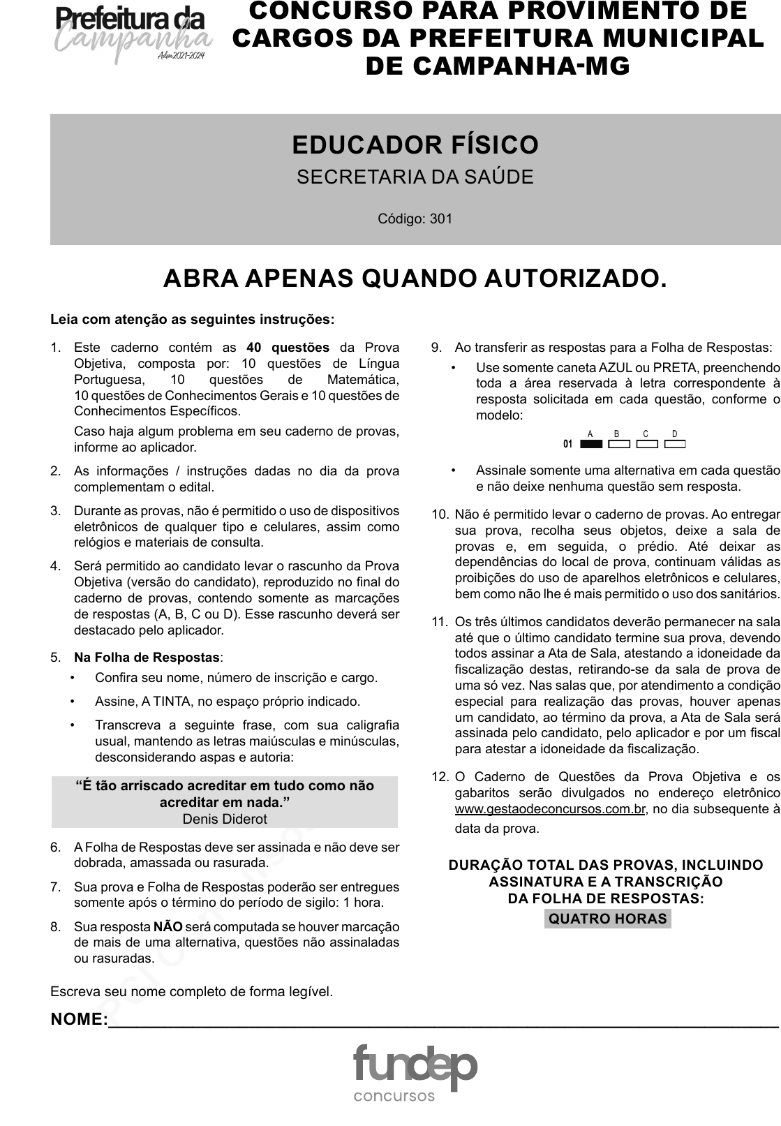 pcimarkpci MjgwNDoyMWY4OjA0MTA6ZDgwMDphNDhmOmQ5OWE6NGZmMDozY2Vh:RnJpLCAyNSBPY3QgMjAyNCAyMjoyMTowNCAtMDMwMA== www.pciconcursos.com.br CONCURSO PARA PROVIMENTO DE CARGOS DA PREFEITURA MUNICIPAL DE CAMPANHA-MG EDUCADOR FÍSICO SECRETARIA DA SAÚDE Código: 301 ABRA APENAS QUANDO AUTORIZADO. Leia com atenção as seguintes instruções: 1. Este caderno contém as 40 questões da Prova Objetiva, composta por: 10 questões de Língua Portuguesa, 10 questões de Matemática, 10 questões de Conhecimentos Gerais e 10 questões de Conhecimentos Específicos. Caso haja algum problema em seu caderno de provas, informe ao aplicador. 2. As informações / instruções dadas no dia da prova complementam o edital. 3. Durante as provas, não é permitido o uso de dispositivos eletrônicos de qualquer tipo e celulares, assim como relógios e materiais de consulta. 4. Será permitido ao candidato levar o rascunho da Prova Objetiva (versão do candidato), reproduzido no final do caderno de provas, contendo somente as marcações de respostas (A, B, C ou D). Esse rascunho deverá ser destacado pelo aplicador. 5. Na Folha de Respostas: • Confira seu nome, número de inscrição e cargo. • Assine, A TINTA, no espaço próprio indicado. • Transcreva a seguinte frase, com sua caligrafia usual, mantendo as letras maiúsculas e minúsculas, desconsiderando aspas e autoria: “É tão arriscado acreditar em tudo como não acreditar em nada.” Denis Diderot 6. A Folha de Respostas deve ser assinada e não deve ser dobrada, amassada ou rasurada. 7. Sua prova e Folha de Respostas poderão ser entregues somente após o término do período de sigilo: 1 hora. 8. Sua resposta NÃO será computada se houver marcação de mais de uma alternativa, questões não assinaladas ou rasuradas. 9. Ao transferir as respostas para a Folha de Respostas: • Use somente caneta AZUL ou PRETA, preenchendo toda a área reservada à letra correspondente à resposta solicitada em cada questão, conforme o modelo: • Assinale somente uma alternativa em cada questão e não deixe nenhuma questão sem resposta. 10. Não é permitido levar o caderno de provas. Ao entregar sua prova, recolha seus objetos, deixe a sala de provas e, em seguida, o prédio. Até deixar as dependências do local de prova, continuam válidas as proibições do uso de aparelhos eletrônicos e celulares, bem como não lhe é mais permitido o uso dos sanitários. 11. Os três últimos candidatos deverão permanecer na sala até que o último candidato termine sua prova, devendo todos assinar a Ata de Sala, atestando a idoneidade da fiscalização destas, retirando-se da sala de prova de uma só vez. Nas salas que, por atendimento a condição especial para realização das provas, houver apenas um candidato, ao término da prova, a Ata de Sala será assinada pelo candidato, pelo aplicador e por um fiscal para atestar a idoneidade da fiscalização. 12. O Caderno de Questões da Prova Objetiva e os gabaritos serão divulgados no endereço eletrônico www.gestaodeconcursos.com.br, no dia subsequente à data da prova. DURAÇÃO TOTAL DAS PROVAS, INCLUINDO ASSINATURA E A TRANSCRIÇÃO DA FOLHA DE RESPOSTAS: QUATRO HORAS Escreva seu nome completo de forma legível. NOME:________________________________________________________________________ pcimarkpci MjgwNDoyMWY4OjA0MTA6ZDgwMDphNDhmOmQ5OWE6NGZmMDozY2Vh:RnJpLCAyNSBPY3QgMjAyNCAyMjoyMTowNCAtMDMwMA== www.pciconcursos.com.br 2 LÍNGUA PORTUGUESA INSTRUÇÃO: Leia a crônica a seguir para responder às questões de 1 a 3. Existe lógica na língua? Marcos Bagno Dia desses, publiquei uma postagem em que me queixava das pessoas que fazem legendas para filmes e seriados por tentarem evitar a tal “mistura de pronomes” — uma falácia total — e escreverem coisas como “eu só queria ajudá-lo!” quando é um irmão falando para outro num momento de raiva. Escrevi que o mais natural e autêntico seria “eu só queria te ajudar!”. Eis senão quando uma pessoa argumentou nos comentários: “Pois parece a concordância mais lógica: tu-te, você-o...” Vamos deixar passar a “concordância” (porque não tem nada de “concordância” nesse caso, é correlação pronominal) para nos concentrarmos em lógica. Faz muitos séculos que se enraizou na cultura ocidental a ideia de que existe uma “lógica” na língua e que, por isso, é preciso submeter a língua a essa suposta lógica. A consequência dessa ideia é que, segundo ela, qualquer desvio com relação a essa lógica constitui um erro no uso da língua, língua que deveria ser como um relógio que nunca se atrasa (e na própria etimologia da palavra relógio — o grego horo·logion — está bem escondida a lógica, a “lógica das horas”). A palavra lógica deriva do grego lógos e é aí que tudo começa a se complicar. Por quê? Porque ao longo da história antiga, esse lógos foi definido e redefinido dezenas de vezes e adquiriu uma quantidade de sentidos de deixar a gente tonta (até sinônimo de “Deus” ele virou). O primeiro filósofo grego a utilizar o termo foi, ao que se sabe, Heráclito de Éfeso (c. 535-c. 475 aec), um autor de quem só temos fragmentos escritos, nenhuma obra completa. Pelo que se pode deduzir desses fragmentos, lógos para Heráclito era o “conjunto harmônico de leis que comandam o universo, formando uma inteligência cósmica onipresente que se plenifica no pensamento humano”, segundo aparece no dicionário Houaiss. Não é pouca coisa, né? O nosso pensamento seria a síntese, a consubstanciação dessa inteligência cósmica que é o lógos. De fato, para os filósofos gregos antigos, existia uma inter-relação entre a inteligência humana, a natureza e o universo. A inteligência humana (psykhe) se organizaria segundo as mesmas leis que governam a natureza (physis), a qual, por sua vez, se organizaria segundo as mesmas leis que regem o universo (kósmos). Desse modo, o pensamento só é adequado, correto e 