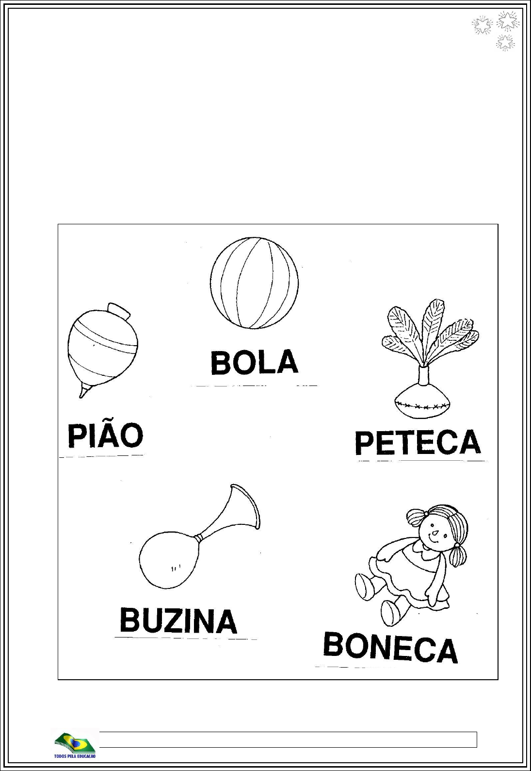 <p>Blog da Tia Iolanda</p><p>EDUCAÇÃO INFANTIL</p><p>PROFESSORA: _________________________________</p><p>ALUNO (a):_____________________________________</p><p>CONHECENDO AS CONSOANTES B E P.</p><p>PINTE OS DESENHOS QUE INICIAM COM A LETRA B E</p><p>CIRCULE AS PALAVRAS COM P.</p><p>Professora Iolanda Sá Freire, 3ªed.(Org.)</p><p>Blog da Tia Iolanda</p><p>EDUCAÇÃO INFANTIL</p><p>PROFESSORA: _________________________________</p><p>ALUNO (a):_____________________________________</p><p>ORIENTAÇÃO ESPACIAL: DENTRO/FORA.</p><p>OBSERVE AS GARRAFAS E RESPONDA.</p><p>Professora Iolanda Sá Freire, 3ªed.(Org.)</p><p>Blog da Tia Iolanda</p><p>EDUCAÇÃO INFANTIL</p><p>PROFESSORA: _________________________________</p><p>ALUNO (a):____________________________________</p><p>LIGUE O DESENHO À LETRA INICIAL. ATENÇÃO.</p><p>Professora Iolanda Sá Freire, 3ªed.(Org.)</p><p>Blog da Tia Iolanda</p><p>EDUCAÇÃO INFANTIL</p><p>PROFESSOR (a):____________________________</p><p>ALUNO (a):</p><p>QUANTOS ANOS VOCÊ FARÁ NO SEU PRÓXIMO</p><p>ANIVERSÁRIO? COLE PALITOS DE FÓSFORO</p><p>CORRESPONDENTE À SUA IDADE EM CIMA DO BOLO</p><p>E DÊ UM BONITO COLORIDO NO DESENHO.</p><p>Professora Iolanda Sá Freire, 3ed (Org.).</p><p>Blog da Tia Iolanda</p><p>EDUCAÇÃO INFANTIL</p><p>PROFESSORA:</p><p>ALUNO (a):</p><p>QUANTOS ANOS VOCÊ TEM?</p><p>PARA DESENHAR, PINTAR, COMER E</p><p>ESCREVER PRECISAMOS DAS NOSSAS MÃOS.</p><p>PASSE SUA MÃO NA TINTA GUACHE E DEIXE</p><p>SUA MARQUINHA NO ESPAÇO ABAIXO. AGORA</p><p>FAÇA UM X NOS DEDOS REFERENTE À SUA</p><p>IDADE.</p><p>Professora Iolanda Sá Freire, 3ªed.(Org.)</p><p>Blog da Tia Iolanda</p><p>CONHECENDO QUANTIDADES</p><p>OBSERVE O QUADRO ABAIXO E RESPONDA.</p><p>ESCREVA SEU NOME BEM CAPRICHADO.</p><p>_______________________________________________________________________________</p><p>Professora Iolanda Sá Freire, 3ªed.(Org.</p><p>Blog da Tia Iolanda</p><p>EDUCAÇÃO INFANTIL</p><p>ALUNO (a):___________________________________</p><p>A FAMÍLIA</p><p>PESQUSE, RECORTE E COLE A FOTO DA SUA</p><p>FAMÍLIA NO PORTA RETRATO ABAIXO, OU</p><p>DESENHE COMO PREFERIR.</p><p>AGORA ESCREVA QUANTAS PESSOAS FAZEM</p><p>PARTE DA SUA FAMÍLIA.</p><p>O QUE VOCÊ MAIS GOSTA DE FAZER COM SUA</p><p>FAMÍLIA? DESENHE E PINTE BEM CAPRICHADO.</p><p>Professora Iolanda Sá Freire, 3ªed.(Org.)</p><p>Blog da Tia Iolanda</p><p>EDUCAÇÃO INFANTIL</p><p>ALUNO (a):________________________________</p><p>COMPLETE AS PALAVRAS COM AS LETRAS</p><p>QUE ESTÃO FALTANDO NA PALAVRA FAMÍLIA.</p><p>CIRCULE OS OBJETOS QUE COMEÇAM COM A</p><p>LETRA INICIAL DA PALAVRA FAMÍLIA.</p><p>Que nenhuma família termine em qualquer de repente; Que nenhuma família termine por falta de</p><p>amor, Que o professor se doe para seu aluno de corpo e de mente; E que nada no mundo separe</p><p>os sonhos de bom professor. [...] Padre Zezinho “A Família. Invente cante a música diferente.</p><p>Profi, Sora, Tia: Iolanda Sá Freire, 3ªed.(Org.)</p><p>Blog da Tia Iolanda</p><p>EDUCAÇÃO INFANTIL</p><p>PROFESSORA: _________________________________</p><p>ALUNO (a):_____________________________________</p><p>LABIRINTO ALFABÉTICO</p><p>AJUDE A TIA IOLANDA ENCONTRAR O CAMINHO</p><p>DA ESCOLA TRILHANDO SOBRE O ALFABETO.</p><p>Profi, Sora, Tia: Iolanda Sá Freire, 3ªed.(Org.)</p><p>Blog da Tia Iolanda</p><p>EDUCAÇÃO INFANTIL</p><p>ALUNO (a):_____________________________________</p><p>MÚSICA: O SAPO</p><p>EU VI O SAPO PO-PO, NA BEIRA DO RIO RIO-RIO, DE</p><p>CAMISA VERDE DE-DE A TREMER DE FRIO FRIO-FRIO.</p><p>NÃO ERA SAPO PO-PO, NEM PERERECA CA-CA, ERA</p><p>O GUILHERME ME-ME SÓ DE CUECA CA CA.</p><p>01-RESPONDA: QUAL É A COR DA CAMISA DO SAPO?</p><p>__________________________________</p><p>02-CIRCULE A PALAVRA SAPO DA MÚSICA ACIMA.</p><p>03-QUEM É O MENINO QUE ESTÁ DE CUECA?</p><p>________________________________________</p><p>ESCREVA SEU NOME NO CAPRICHO.</p><p>_________________________</p><p>Professora Iolanda Sá Freire, 3ªed.(Org.)</p>