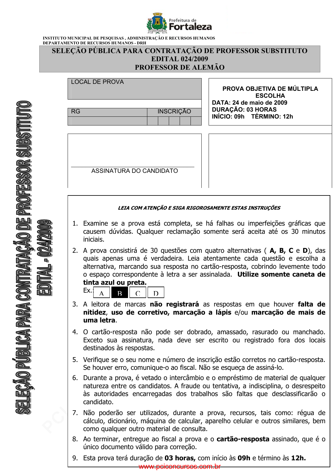 2. A prova consistirá de 30 questões com quatro alternativas ( A, B, C e D), das