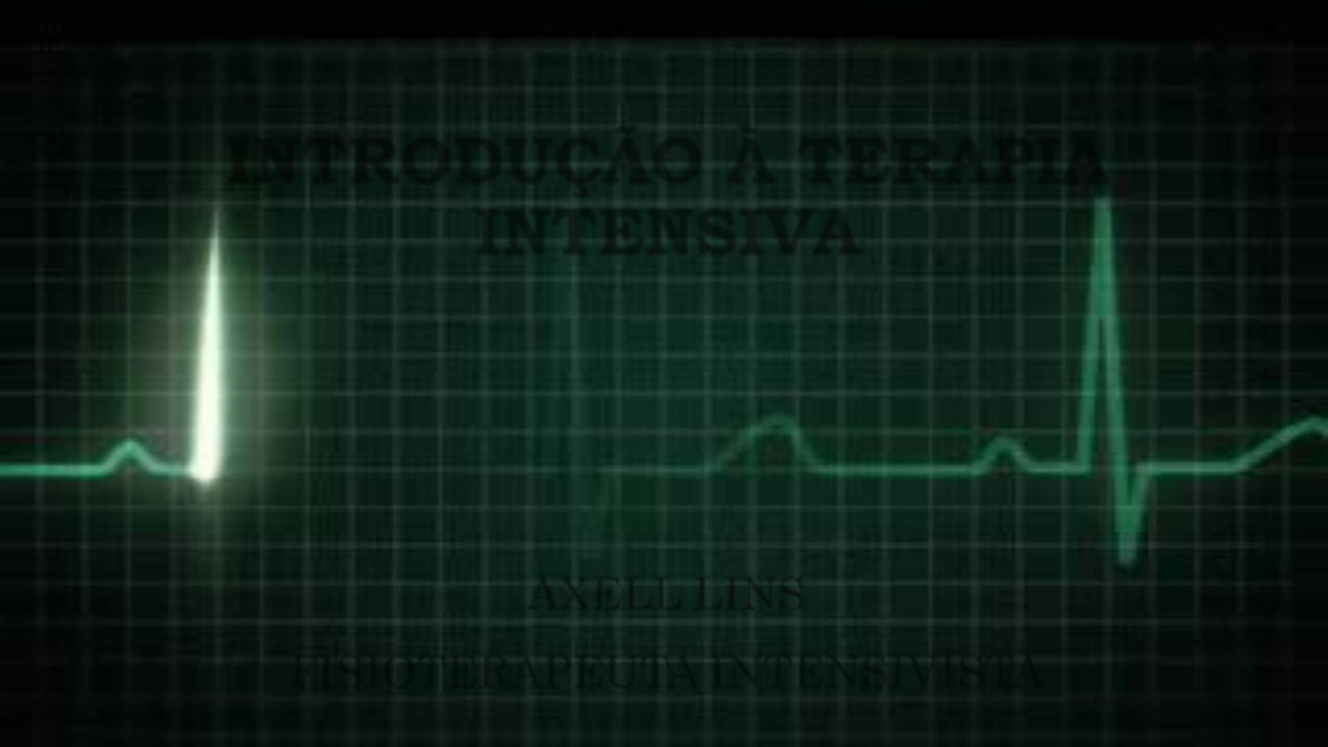 INTRODUÇÃO À TERAPIA INTENSIVA AXELL LINS FISIOTERAPEUTA INTENSIVISTA CARACTERÍSTICAS FÍSICAS DA UTI • Quantidade de leitos • Tipos de UTI • Diferença de UTI para CTI CARACTERÍSTICAS FÍSICAS DA UTI Aparelhos que compõem o leito: • Cama • Monitor multiparâmetros • Ventilador Mecânico • Vacuômetro • Régua • Umidificador NORMA REGULAMENTADORA RECONHECIMENTO DA ESPECIALIDADE EQUIPE MULTIPROFISSIONAL • Fisioterapeuta intensivista 1 • Médico diarista 1 • Médico plantonista 1 • Enfermeiro intensivista 1 • Técnico de enfermagem 5 • Assistente Social 1 • Psicóloga 1 • Fonoaudióloga 1 • Terapeuta Ocupacional 1 TIPOS DE FISIOTERAPIA FISIOTERAPIA MOTORA FISIOTERAPIA RESPIRATÓRIA DEVOLUÇÃO DA FUCIONALIDADE DO CORPO AVALIAÇÃO FISIOTERAPÊUTICA • HEMODINÂMICA • CARDIOLÓGICA • RESPIRATÓRIA • MOTORA • NEUROLÓGICA • PÓS-CIRURGICA • RADIOLÓGICA • LABORATORIAL AVALIAÇÃO HEMODINÂMICA • FREQUÊNCIA CARDÍACA • FREQUÊNCIA RESPIRATÓRIA • PRESSÃO ARTERIAL (SISTÓLICA/DIASTÓLICA/MÉDIA) • SATURAÇÃO PERIFÉRICA DE OXIGÊNICO • CAPNOGRAFIA • TEMPERATURA PERFIL FC FR PA SPO2 CO2 TEMP ADULTO 60-100 12-22 120/80 90- 100 35 – 45 36-36,5 PEDIÁTRIC O 80-120 20-30 100/60 90- 100 35 – 45 36-36,5 NEONATAL 100-181 30-60 85/60 90- 100 35 – 45 36-36,5 AVALIAÇÃO CARDIOLÓGICA B1 B2 B3 B4 FECHAMENTO DAS VALVAS TRICÚSPIDE E MITRAL “TUM” FECHAMENTO DAS VALVAS PULMONAR E AÓRTICA “TÁ” INÍCIO DA DIÁSTOLE IMEDIATO PÓS B2 FINAL DA DIÁSTOLE, SOM DE “GALOPE”, ANTES DE B1 SANGUE ▶ Osanguehumano éconstituído por um líquido amarelado, o plasma, epor células epedaços de células,genericamente denominados elementos figurados. HEMOCITOPOESEOUHEMATOPOIESE ▶ Processo de formação,maturação eliberaçãona correntesanguínea das células do sangue. ▶ Tecido conjuntivo hemocitopoético ou reticular: produtor de leucócitosehemácias•aparecena medula óssea,no baço,no timoe nos nódulos linfáticos. PLASMA ▶ ERITROGRAMA ▶ Índiceshematimétricos(morfologia) ▶ LEUCOGRAMA ▶ PLAQUETOGRAMA HEMOGRAMA ▶ HEMÁCIAS (GV)- 3,500,000 a 5,500,000/mm3 ; ▶ HEMATÓCRITO:Relação Vol.gv/Vol sg - 36% a 45% mulher - 41% a 50% homem; ▶ HEMOGLOBINA: ▶ 12a 15,9 g/dl mulher ▶ 14 a 18 g/dl homem; ERITROGAMA FUNÇÃODAS HEMÁCIAS? Desoxihemoglobina Oxihemoglobina 2,3Difosfoglicerato ▶ INTERFERÊNCIANOS VALORES DE REFERÊNCIA: ▶ - RN:↑ Hb; Ht; VCM; Leucocitose com DE; ▶ - IDOSO: ↓ Hb; ▶ SEXO: homens: ↑ Hb; FATORESFISIOLÓGICOS ▶ GESTAÇÃO: - ↓ Hb; Ht: - aumento volume plasmático (pseudoanemia); - ↑ LEUCÓCITOS; FATORESFISIOLÓGICOS ▶ AUMENTODA % DE GV; ▶ ABSOLUTA:AUMENTODAMASSATOTALDE GV; POLICITEMIAVERA - PROLIFERAÇÃOANORMALDE CÉLULAS PRIMORDIAIS MIELÓIDES; - NÍVEIS AUMENTADOS DE ERITROPOETINA. POLICITEMIA ▶ RELATIVA:PERDADE VOLUME; ▶ FUMANTES:>20CIG/DIA; ▶ ALTASALTITUDES; ▶ OBESOS; ▶ HEMOGLOBINOPATIAS; ▶ QUALO RISCO? POLICITEMIA ▶ DIMINUIÇÃODA[GV] E/OU [Hb]; ▶ Ht 3500 ◦ Irradiação ◦ Hodgkin ◦ Lupus ◦ AIDS LINFOPENIA0,3 mg/dl; ▶ Ptn.plasmática defase aguda; Altoriscocardiovascular: superiora3,0mg/L Médiorisco:1,0a 3,0mg/L Baixorisco:inferiora 1,0 mg/L PCR ALBUMIN A ▶ Uso ▶ Marcadora de distúrbios dometabolismo ▶ Aumentado ▶ Desidratação,infusão EV dealbumina ▶ Diminuído ▶ Ingestão inadequada,absorção diminuída, síntese diminuída, deficiência congênita Valornormal 3,5a 5,0g/dL GLICOS E ▶ Uso ▶ Diagnóstico eacompanhamentodediabetes melito ▶ Aumentado ▶ Diabetes melito,adrenalina circulanteaumentada, pancreatite ▶ Diminuído ▶ doençahepática, distúrbios endócrinos Valornormal (jejum)60 – 100mg/dL EQUILÍBRIOOSMÓTICO ▶ 1000 mLSUOR;PULMÃO COMO VAPOR DE ÁGUA; ▶ 1500 mLpelos rins; ▶ Fezes; ▶ Compensação destas perdas:ingestão deágua e solutos ou mecanismos para conservá- los. PERDAS DIÁRIAS MECANISMODASEDE ▶ CENTRODASEDE É LOCALIZADO PRÓXIMOAO3.º VENTRÍCULO; ▶ SEUS NEURÔNIOS RESPONDEM ASOLUÇÕES HIPERTÔNICAS DE SAL, ESTIMULANDOASSIM AINGESTÃO DE ÁGUA.▶ 2.º ESTÍMULO:↓ VOLUME DO LECE PA↓; ▶ 3.ºESTÍMULO:ANGIOTENSINAII ESTIMULAADIMINUIÇÃO DA EXCREÇÃODE LÍQUIDO PELOS RINS. DESEQUILÍBRIOHIDROELETROLÍTICO ▶ HIPOVOLEMIA: ▶ Ingestade Nae água ESTIMULASNadrenérgico -> secreção ADH-> liberação de aldosterona ->retenção deNa e água. ▶ IR:comprometimento na excreção renal deNa eágua. DESEQUILÍBRIOHIDROELETROLÍTICO ▶ MANUTENÇÃODO VOLUME EXTRACELULAR; ▶ INGESTADIÁRIA:100A150 mEq ▶ ABSORÇÃO:45% LIC – 7% LEC – 58% ESQUELETO 50% PERMUTÁVEL; 50% NÃO-PERMUTÁVEL. ▶ EXCREÇÃO. NA + ▶ 290 mOsm/kg; ▶ Hiperglicemia euso demanitol HIPONATREMIA ▶ AGUDAPOR INGESTADE ÁGUA: ▶ TFGNORMAL+ >INGESTADE ÁGUA:POLIDPSIA PSICOGÊNICA; ▶ TFG145 mEq/L; ▶ Hiperosmolalidade; ▶ Contração do LIC; ▶ Faltade água, infusão desol.hipertônicas ou distúrbio no mec.da sede; HIPERNATREMIA ▶ MANIFESTAÇÕES CLÍNICAS: ▶ Sede; ▶ Peleseca; ▶ Febreetaquicardia; ▶ Confusão mental ecoma. HIPERNATREMIA ▶ 3,5-4,5mEq/L; ▶ INGESTÃODIÁRIA:60-100 mEq; ▶ EXCREÇÃO; K+ K+ e Pmem PANOMÚSCULO CARDÍACO ▶ Rápida despolarização (influxode Na+). ▶ Fasedeplatô (efluxode K+ e influxo de Ca2+) ▶ Repolarização (efluxo deK+ ) POTÁSS IO ▶ Hipercalemia ◦ Resultanteda disfunção renal ◦ Acima de 5,2mEq/l ◦ Agrideo coraçãoea musculatura HIPERPOTASSEMIA RESISTÊNCIAÀ ALDOSTERONA DÇ.RENAL:FALTA RENINA; DÇ.ADRENAL HIPERPOTASSEMIA COMOREMOVEROPOTÁSSIODO CORPO? ▶ Aumentar diuresecom diurético ▶ Aumentar perdade potássio intestinal com drogas efetivas ▶ Diálise ▶