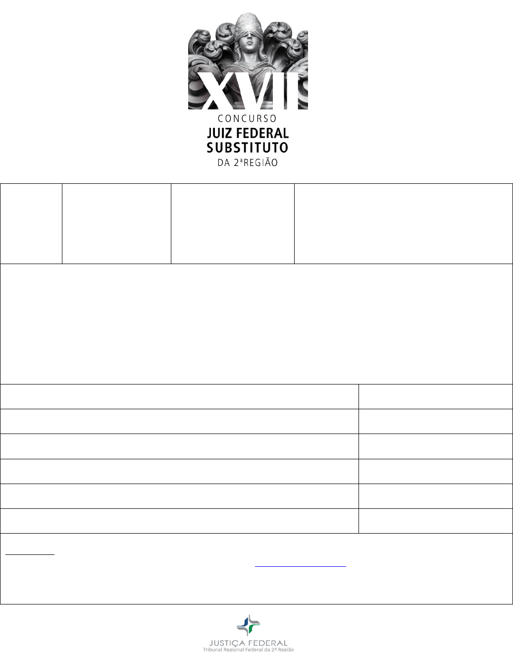Média PROVA DISCURSIVA 09/11/2018 ETIQUETA DE DESIDENTIFICAÇÃO INSTRUÇÕES Tempo de duração: 4 (quatro) horas 1. Só poderá ser utilizada caneta de tinta azul ou preta indelével, fabricada em material transparente. 2. É vedada a utilização de qualquer tipo de material eletrônico. 3. As respostas, de forma legível, deverão limitar-se às folhas pautadas destinadas às questões. 4. Serão desconsideradas as provas com escrita ilegível. 5. Não será fornecida folha de rascunho. O espaço abaixo do enunciado das questões poderá ser utilizado para tal fim. Prova Discursiva – 09/11/2018 Notas Questão Discursiva 1ª Questão 2ª Questão 3ª Questão 4ª Questão Prova Discursiva: 09/11/2018 Observações: • Informações adicionais através do endereço eletrônico: concursojfs@trf2.jus.br Internet: www10.trf2.jus.br/ai/transparencia-publica/concursos/magistrados • É permitida a reprodução deste material apenas para fins didáticos, desde que citada a fonte. BOA SORTE! XVII CONCURSO PARA JUIZ FEDERAL SUBSTITUTO – 2ª REGIÃO PROVA DISCURSIVA - 09/11/2018 2 Dissertação (4,0 pontos; máximo de 5 laudas) Improbidade Administrativa. O candidato deverá abordar, necessariamente, os seguintes tópicos: a) Sujeitos: pessoa jurídica; particular; agente político; conselhos de fiscalização do exercício profissional; sucessores do ímprobo. b) Medidas cautelares: Indisponibilidade de bens: cabimento; duração; afastamento do agente público; sequestro. c) Atos de improbidade: atos administrativos (discricionariedade; controle; erro de apreciação e discricionariedade técnica), legislativos e jurisdicionais. d) Tipologia objetiva e subjetiva: conceitos jurídicos indeterminados e improbidade; enriquecimento ilícito; atos lesivos ao patrimônio público; atos de concessão ou aplicação indevida de benefício financeiro ou tributário; atos atentatórios aos princípios regentes da atividade estatal; atos dolosos e culposos: a culpa grave e a cegueira deliberada. Inter-relação das decisões proferidas nas esferas administrativa, penal e civil. e) Competência: A questão do foro por prerrogativa de função; atos praticados em detrimento de sociedade de economia mista federal. f) Prescrição: Prazos; ato de improbidade que caracteriza crime; prosseguimento, após o advento da prescrição, para fins de viabilizar ressarcimento ao erário público: É cabível? g) Sentença: requisitos; congruência. Consectários. h) Sanções: adequação à natureza do ato e dosimetria: perda de bens ou valores; ressarcimento do dano; dano moral; perda da função pública: Pode o juiz federal decretá-la se o agente é vinculado à administração estadual ou municipal? Há atos ímprobos de pequeno potencial ofensivo? Aplica-se o princípio da insignificância em atos de improbidade? i) Acordo de leniência e Lei de Improbidade Administrativa. XVII CONCURSO PARA JUIZ FEDERAL SUBSTITUTO – 2ª REGIÃO PROVA DISCURSIVA - 09/11/2018 3 __________________________________________________________ __________________________________________________________ __________________________________________________________ __________________________________________________________ __________________________________________________________ __________________________________________________________ __________________________________________________________ __________________________________________________________ __________________________________________________________ __________________________________________________________ __________________________________________________________ __________________________________________________________ __________________________________________________________ __________________________________________________________ __________________________________________________________ __________________________________________________________ __________________________________________________________ __________________________________________________________ __________________________________________________________ __________________________________________________________ __________________________________________________________ __________________________________________________________ __________________________________________________________ __________________________________________________________ __________________________________________________________ __________________________________________________________ __________________________________________________________ __________________________________________________________ __________________________________________________________ __________________________________________________________ __________________________________________________________ __________________________________________________________ __________________________________________________________ __________________________________________________________ XVII CONCURSO PARA JUIZ FEDERAL SUBSTITUTO – 2ª REGIÃO PROVA DISCURSIVA - 09/11/2018 4 __________________________________________________________ __________________________________________________________ __________________________________________________________ __________________________________________________________ __________________________________________________________ __________________________________________________________ __________________________________________________________ __________________________________________________________ __________________________________________________________ __________________________________________________________ __________________________________________________________ __________________________________________________________ __________________________________________________________ __________________________________________________________ __________________________________________________________ _________________