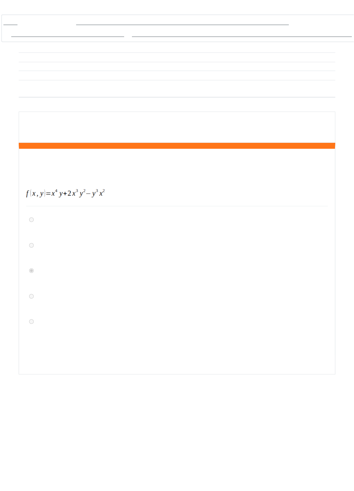 Iniciado em domingo, 20 out 2024, 08:34 Estado Finalizada Concluída em domingo, 20 out 2024, 09:31 Tempo empregado 57 minutos 6 segundos Avaliar 0,35 de um máximo de 0,50(70%) Questão 1 Completo Atingiu 0,05 de 0,05 Na terceira parte da Unidade II de Métodos Matemáticos Aplicados à Física, aprendemos a resolver uma equação diferencial homogênea. Porém, antes disso, é preciso verificar sua condição de homogeneidade. Sendo assim, determine o grau de homogeneidade da função a baixo a. A função não é homogênea. b. Grau 3 c. Grau 5 d. Grau 6 e. Grau 4 Sua resposta está correta. Painel / Minhas Disciplinas / LICENCIATURA EM MATEMÁTICA-disc. 15- MÉTODOS MATEMÁTICOS APLICADOS A FÍSICA / ATIVIDADE DE ESTUDO 01 - VALOR 0,5 PONTOS / AB1 - CLIQUE AQUI PARA REALIZAR A ATIVIDADE DE ESTUDO 01 - PRAZO FINAL: 27/10/2024 https://www.eadunifatecie.com.br/course/view.php?id=50660 https://www.eadunifatecie.com.br/course/view.php?id=50660 https://www.eadunifatecie.com.br/my/ https://www.eadunifatecie.com.br/course/view.php?id=50660 https://www.eadunifatecie.com.br/course/view.php?id=50660#section-4 https://www.eadunifatecie.com.br/mod/quiz/view.php?id=1648703 Questão 2 Completo Atingiu 0,00 de 0,05 Uma das situações que aprendemos na resolução de problemas envolvendo equações diferenciais foi o de problema de valor inicial. Com base nisso, determine a solução da E.D.O. dada a seguir, considerando a condição a. b. c. d. e. Sua resposta está incorreta. Questão 3 Completo Atingiu 0,05 de 0,05 Uma condição para que uma equação diferencial seja exata é somente se a EDO satisfazer a condição Sendo assim, determine se a equação diferencial abaixo é exata e, em caso negativo, a resposta que corresponde às derivadas parciais encontradas. a. A equação diferencial é exata, pois b. Não é uma equação diferencial exata, pois c. A EDO é exata, pois d. Não é uma EDO exata, pois e. A EDO é exata, pois Sua resposta está correta. Questão 4 Completo Atingiu 0,05 de 0,05 O oposto de funções trigonométricas são seus respectivos arcos. Ou seja, uma dada , então Dessa forma, dada a equação diferencial a seguir: Marque a alternativa que corresponde à solução da EDO a. b. c. d. e. Sua resposta está correta. Questão 5 Completo Atingiu 0,05 de 0,05 Como visto na unidade I da disciplina de Métodos Matemáticos Aplicados à Física, um meio de resolver equações diferenciais ordinárias de primeira ordem lineares é por meio de separação de variáveis. Sendo assim, dada a equação diferencial abaixo, encontre a solução . xdx−y2dy=0 a. b. c. d. e. Sua resposta está correta. Questão 6 Completo Atingiu 0,00 de 0,05 Uma equação diferencial exata pode ser verificada quando está no formato : E deve satisfazer a condição: Portanto, verifique se a EDO a baixo é exata e, em caso negativo, assinale a alternativa que corresponde corretamente as suas derivadas parciais. a. A equação diferencial não é exata, uma vez que b. Não é uma EDO exata, pois c. A equação diferencial não é exata, uma vez que d. A EDO é exata, pois e. A EDO é exata, pois Sua resposta está incorreta. Questão 7 Completo Atingiu 0,05 de 0,05 Questão 8 Completo Atingiu 0,00 de 0,05 Quando uma equação diferencial é exata, não é preciso determinar o fator integrante para promover a exatidão da EDO. Com base no que foi estudado sobre o assunto, verifique se a EDO a baixo é exata, em caso afirmativo, calcule sua solução. Caso não seja, calcule o fator integrante e então, a solução da equação diferencial. a. b. c. d. e. Sua resposta está correta. Em determinados problemas de integração, é necessário aplicar a exponencial em ambos os lados da igualdade ou a função ln, para isolar a solução que queremos obter. Com base nessa observação, assinale a alternativa que corresponde à solução da EDO a seguir a. b. c. d. e. Sua resposta está incorreta. Questão 9 Completo Atingiu 0,05 de 0,05 O problema de valor inicial é quando determinamos a solução de uma equação diferencial e depois aplicamos tal condição para encontrar o valor da constante que é adjacente à solução. Portanto, utilizando a condição inicial , encontre a solução para a equação diferencial a seguir: a. b. c. d. e. Sua resposta está correta. Questão 10 Completo Atingiu 0,05 de 0,05 Determine se a equação diferencial a seguir é homogênea. Lembre-se que, para garantir essa condição, devemos fazer: a. A EDO é homogênea e é degrau 4. b. Não, pois não é possível extrair o termo da função seno. c. Sim, a EDO é homogênea. d. Não é uma função homogênea, porque o fator não pode ser extraído da exponencial. e. Não é homogênea, uma vez que o denominador o fator é de grau 4 e o numerado é de grau 2. é de grau 4 e o numerado é de grau 2. é de grau 4 e o numerado é de grau 2. Sua resposta está correta. ◄ ÁUDIO AULA 04 Seguir para... ÁUDIO AULA 05 ► https://www.eadunifatecie.com.br/mod/url/view.php?id=1648702&forceview=1 https://www.eadunifatecie.com.br/mod/url/view.php?id=1648705&forceview=1