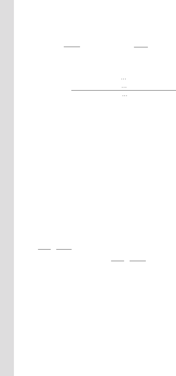 156 › Answers 25. (B) Eliminate (D) because only numbers are involved. The sum of the whole numbers from 1 to n is +n n( 1) 2 . Thus, Quantity A is 50 51 2 1,275. ⋅ = Quantity B is greater. Tip: Another way to work this problem is to list the sum of the numbers from 1 to 50 in two ways, one in increasing order and one in decreasing order, and then add the pairs of numbers as shown here. 1 2 3 4 5 46 47 48 49 50 50 49 48 47 46 5 4 3 2 1 51 51 51 51 51 51 51 51 51 51 + + + + + + + + + + + + + + + + + + + + + + + + + + + + + + There are 50 pairs, each with a sum of 51. The double sum is 50(51) 2,550= , so the single sum is 2,550 2 1,275÷ = . 26. (C) Because = ⋅ +3 4 0 3, the least positive number that will leave a remainder of 3 when divided by 4 is 3 (Quantity A). Because = ⋅ +3 5 0 3, the least positive number that will leave a remainder of 3 when divided by 5 is 3 (Quantity B). The two quantities are equal. Select (C). 27. (B) Let x = the number of $5 bills and y = the number of $10 bills. You have two equations: (1) + =x y 8, = −y x8 ; and (2) + =x y$5 $10 $50. Substitute (1) = −y x8 into (2) and solve for x (omitting units for convenience). + =x y5 10 50 + − =x x5 10(8 ) 50 + − =x x5 80 10 50 = x30 5 =x 6 (Quantity B); = − = − =y x8 8 6 2 (Quantity A) Quantity B is greater. 28. (D) Substitute values for n. If n = 1, Quantity A is + = + =n 2 1 2 3, and Quantity B is + = + =n n 2 1 2(1) 1 1 3. In this case, the two quantities are equal. If n = 2, Quantity A is + = + =n 2 2 2 4, and Quantity B is + = + =n n 2 1 2(2) 1 2 2.5. In this case, Quantity A is greater. Because you found different results (one where the quantities were equal and one where Quantity A was greater), the relationship cannot be determined from the information given. Select (D). 29. (C) Eliminate (D) because only numbers are involved. In this question, use the division algorithm that states if an integer n is divided by a nonzero integer d, there exist unique integers q and r such that n = qd + r, where 0 ≤ r