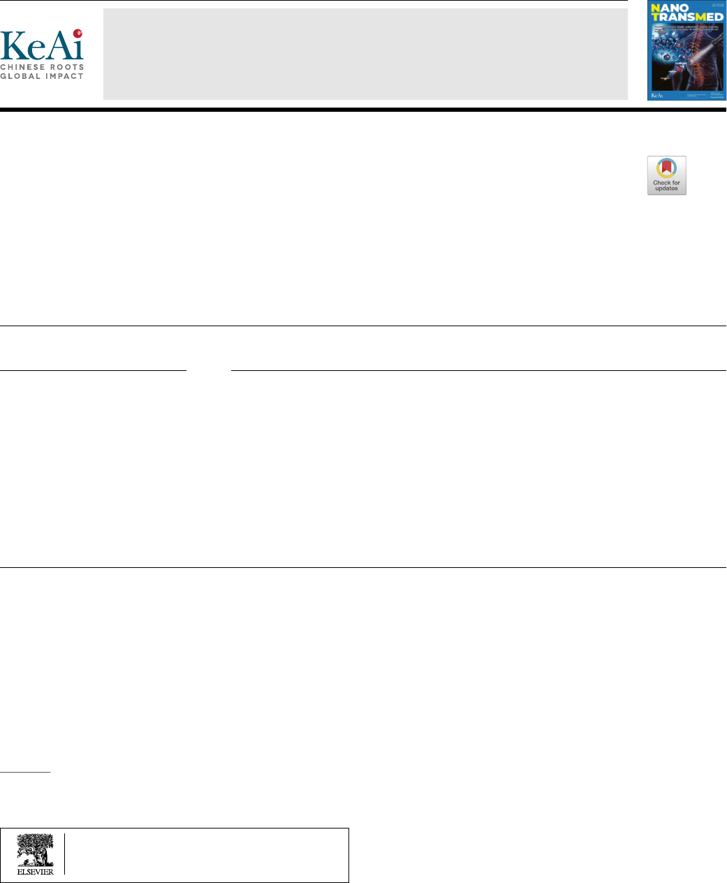 Nano TransMed 2 (2023) 100004 Contents lists available at ScienceDirect Nano TransMed journal homepage: www.keaipublishing.com/en/journals/nano-transmed/ Edible plant-derived extracellular vesicles serve as promising therapeutic systems Chun Yanga,1, Wenjing Zhangb,1, Muran Baia,1, Qiyuan Luoc, Qing Zhenga, Yao Xuc, Xiaoya Lic, Cheng Jiangb,⁎, William C. Chod,⁎, Zhijin Fane,⁎ a College of Basic Medicin, Beihua University, Jilin 132033, China b School of Medicine, The Chinese University of Hong Kong, Shenzhen 518172, China c Guangzhou University of Chinese Medicine, Guangzhou, China d Department of Clinical Oncology, Queen Elizabeth Hospital, 30 Gascoigne Road, Kowloon, Hong Kong, China e School of Medicine, South China University of Technology, Guangzhou 510006, China A R T I C L E I N F O Keywords: Plant-derived extracellular vesicles Nanomedicine Therapeutic system Drug delivery Anti-inflammatory Cancer therapy A B S T R A C T Extracellular vesicles (EVs), which are natural nanocarriers characterized by a phospholipid bilayer structure, are released by living cells. They play a crucial role in the intercellular transport of proteins, nucleic acids, lipids, and metabolites, facilitating substance delivery and information exchange between cells. In light of recent nu- merous studies, EVs has been found to transcend their basic role as mere delivery vehicle. Instead, they de- monstrate an impressive array of biological activities, displaying preventive and therapeutic potential in miti- gating various pathological processes encompassing cancer, neoplastic proliferation, infectious diseases, and oxidative trauma. Particularly, EVs derived from edible plants (EPDEVs) have been emphasized for their ex- tensive range of physiological regulatory functions in animals and humans, with the potential for targeted drug delivery through oral administration. Leveraging these advantages, EPDEVs are expected to have excellent competitiveness in clinical applications or preventive healthcare products. This review provides a brief overview of the biogenesis, structure, and composition of EPDEVs, and summarizes their biological functions and me- chanisms. It also analyzes the methods for isolating and purifying plant-EVs, assessing their advantages and disadvantages; discusses the latest advancements in biomedical applications, and concludes with a prospective insight into the research and development directions of EPDEVs. 1. Introduction Extracellular vesicles (EVs) are small membrane-bound particles secreted by cells, which can carry a range of biological marcomolecules including proteins, nucleic acids, and metabolites [1–6]. Due to their low immunogenicity, good biocompatibility, and capacity for en- gineered cargo loading with functional modules, EVs have emerged as a new generation of natural drug delivery systems [7–15]. However, their practical application is curtailed by the high production cost and low yield of animal cell-derived EVs. In contrast, edible plant-derived EVs (EPDEVs),which can be produced in large quantities from plant sap, have been attracting mounting attention [16,17]. Moreover, recent studies have unveiled the therapeutic potential of plant-derived EVs (PDEVs) in tissue repair, [18] anti-inflammation, [19] and anti-tumor effects, [20,21] thereby enhancing the potential of EPDEVs as a pio- neering nanotherapeutic system [22]. In this review, we give an over- view of the biogenesis, structural composition, and biological functions of EPDEVs. We also highlight the latest advances in their biomedical applications with a special emphasis on their potential clinical appli- cations in tissue repair, chronic inflammation, and anti-tumor Production and Hosting by Elsevier on behalf of KeAi https://doi.org/10.1016/j.ntm.2023.100004 Received 29 June 2023; Received in revised form 3 August 2023; Accepted 7 August 2023 Available online 16 October 2023 2790-6760/© 2023 The Author(s). Publishing services by Elsevier B.V. on behalf of KeAi Communications Co. Ltd. This is an open access article under the CC BY license (http://creativecommons.org/licenses/by/4.0/). ]]]] ]]]]]] ⁎ Corresponding authors. E-mail addresses: jiangcheng@cuhk.edu.cn (C. Jiang), chocs@ha.org.hk (W.C. Cho), fanzhj5@mail.sysu.edu.cn (Z. Fan). 1 These authors contributed equally. https://doi.org/10.1016/j.ntm.2023.100004 http://www.sciencedirect.com/science/journal/27906760 https://www.keaipublishing.com/en/journals/nano-transmed/ https://doi.org/10.1016/j.ntm.2023.100004 https://doi.org/10.1016/j.ntm.2023.100004 http://creativecommons.org/licenses/by/4.0/ http://crossmark.crossref.org/dialog/?doi=10.1016/j.ntm.2023.100004&domain=pdf http://crossmark.crossref.org/dialog/?doi=10.1016/j.ntm.2023.100004&domain=pdf mailto:jiangcheng@cuhk.edu.cn mailto:chocs@ha.org.hk mailto:fanzhj5@mail.sysu.edu.cn treatments. Our aim is to explore the translational applications of EP- DEVs in realm of nanomedicine (Fig. 1). 2. Genesis, structure and composition of plant-derived EVs 2.1. Biogenesis of plant-derived EVs EVs are a diverse group of membranous vesicles that originate from endosomes and cell membranes and are released into the extracellular environment [23–26]. They can be categorized in mammals based on their mode of biosynthesis, including exosomes, microvesicles, apoptotic bodies, ectosomes, and migrasomes [24]. Exosomes, a prominent type of EVs, are primarily observed in immune and tumor cells and are surrounded by a phospholipid bilayer that bulges inwards through the endocytosome to form a multivesicular body (MVB) [27,28]. Subsequently, these exosomes are discharged via the fusion of MVBs with the cell membrane. In recent years, a groundbreaking study by Rutter and Innes suc- cessfully isolated and purified EVs from Arabidopsis leaf exoplastids [29]. These vesicles are known to contain a high concentration of stress- and defense-related proteins, including PEN1 (a plant synthetic protein). Notably, the secreti