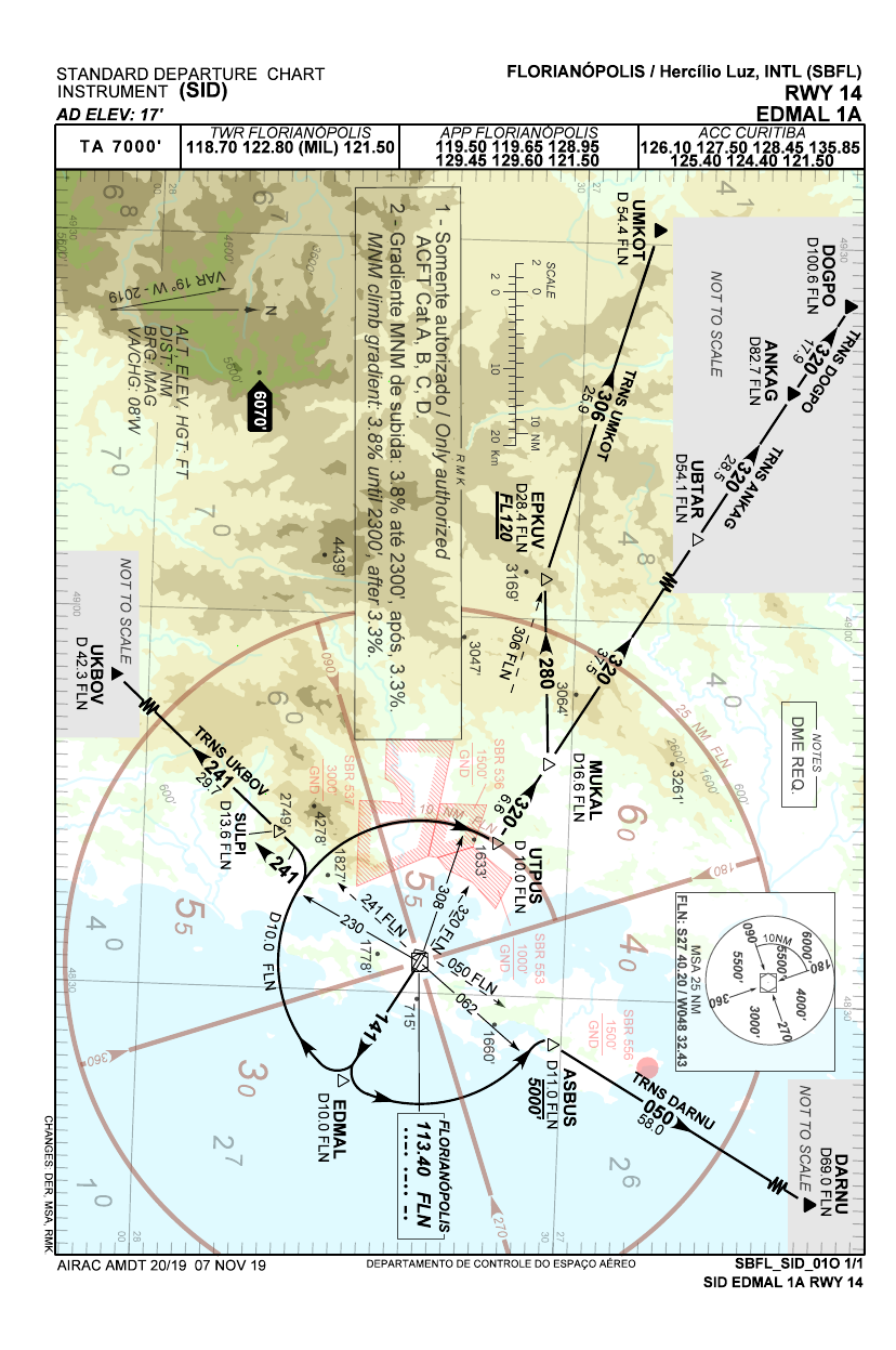 1 4 1 05058.0 TA 7000’ 118.70 122.80 (MIL) 121.50 TW R FLORIANÓPOLIS APP FLORIANÓPOLIS ACC CURITIBA 126.10 127.50 128.45 135.85 125.40 124.40 121.50 INSTRUMENT (SID) STANDARD DEPARTURE CHART FLORIANÓPOLIS / Hercílio Luz, INTL (SBFL) RW Y 14 EDMAL 1A DEPARTAMENTO DE CONTROLE DO ESPA˙O AÉREO SID EDMAL 1A RW Y 14 119.50 119.65 128.95 129.45 129.60 121.50 E D M A L D 1 0 .0 F L N C H A N G E S : D E R , M S A , R M K . SBFL_SID_01O 1/1AIRAC AMDT 20/19 07 NOV 19 S C A L E 2 0 K m 0 2 0 2 1 0 N M 1 0 AD ELEV: 17’ N O T T O S C A L E N O T T O S C A L E N O T T O S C A L E F L N 6 0 7 0 ’ 5 6 0 0 ’ 4 9 3 0 4 9 0 0 4 8 3 0 4 8 3 0 4 9 0 0 4 9 3 0 3 0 2 7 0 0 2 8 0 0 2 8 3 0 2 7 4 1 4 8 2 6 0 7 6 0 2 7 0 1 0 7 3 6 0 0 ’ 2 6 0 0 ’ 1 6 0 0 ’ 6 0 0 ’ 6 0 0 ’ 180 2 7 0 360 0 9 0 5 5 3 0 4 0 5 5 6 0 N O T E S G N D 1 5 0 0 ’ S B R 5 5 6 G N D 1 0 0 0 ’ S B R 5 5 3 G N D 1 5 0 0 ’ S B R 5 3 6 G N D 3 0 0 0 ’ S B R 5 3 7 6 7 6 8 4 0 4 0 2 8 0 3 2 0 3 7 .5 3 2 0 2 8 .5 3 0 6 2 5 .9 3 0 6 F L N 3 2 0 1 7 .9 A N K A G U M K O T D O G P O T R N S A N K A G T R N S D O G P O T R N S U M K O T TRNS DARNU TR N S U K B O V 241 D 8 2 .7 F L N D 5 4 .4 F L N S U L P I D 1 3 .6 F L N 24129.7 3 2 0 6 .6 E P K U V D 2 8 .4 F L N F L 1 2 0 U B T A R D 5 4 .1 F L N D A R N U D 6 9 .0 F L N M U K A L D 1 6 .6 F L N D 1 0 0 .6 F L N D 4 2 .3 F L N U K B O V 050 FLN 241 FLN 3 2 0 F L N 062 230 3 0 8 4 6 0 0 ’ F L O R IA N ÓP O L IS 1 1 3 .4 0 F L N U T P U S D 1 0 .0 F L N D M E R E Q . 3 1 6 9 ’ 3 0 6 4 ’ 3 2 6 1 ’ 1 7 7 8 ’ 2 7 4 9 ’ 4 2 7 8 ’ 1 8 2 7 ’ 1 6 3 3 ’ 3 0 4 7 ’ 4 4 3 9 ’ N VAR 19î�� W - V A /C H G : 0 8 ’W B R G : M A G D IS T : N M A L T , E L E V , H G T : F T 1 6 6 0 ’ 7 1 5 ’ A C F T C a t A , B , C , D . 1 - S o m e n te a u to riz a d o / O n ly a u th o riz e d R M K 2 - G ra d ie n te M N M d e s u b id a : 3 .8 % a tØ 2 3 0 0 ’, a p ós , 3 .3 % . 5 6 0 0 ’ N L F 0. 0 1 D A S B U S D 1 1 .0 F L N 5 0 0 0 ’ N L F M N 5 2 NL F MN 01 2 7 0 3 0 0 0 ’ 6 0 0 0 ’ 180 0 9 0 4 0 0 0 ’ 5 5 0 0 ’ 360 F L N : S 2 7 4 0 .2 0 / W 0 4 8 3 2 .4 3 M S A 2 5 N M MN01 5 5 0 0 ’ M N M c lim b g ra d ie n t: 3 .8 % u n til 2 3 0 0 ’, a fte r 3 .3 % .