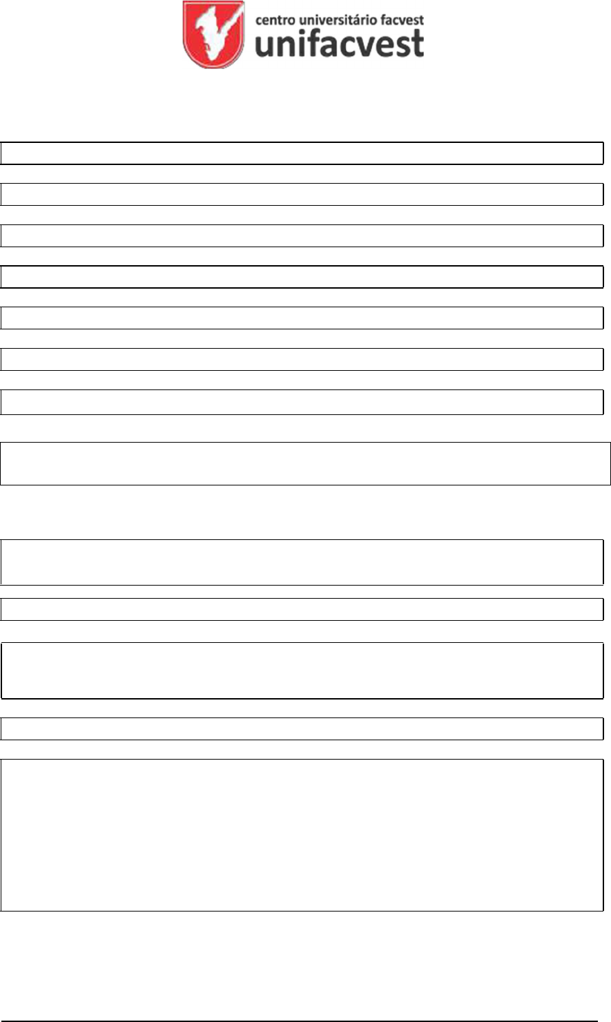 CENTRO UNIVERSITÁRIO UNIFACVEST FORMULÁRIO DE ATIVIDADE CURRICULAR DE EXTENSÃO - ACE ACADÊMICO: Lucas Henrique Souza de Oliveira CPF:487.410.588-28 E-MAIL:lucas.henrique31@hotmail.com TELEFONE: (15) 99750-4121 MATRÍCULA: 1699092 CURSO: Licenciatura em Ciências Biológicas MODALIDADE: ( ) PRESENCIAL (X) EAD FASE/SEMESTRE: 1º Módulo B TEMA DO PROJETO: Conscientização Sobre a Importância de Separar os Lixos Recicláveis OBJETIVOS: Promover a conscientização indo de casa em casa falando sobre a importância, e doar recursos para que aconteça de forma efetiva. ORGANIZAÇÃO ONDE REALIZOU: INSTITUIÇÃO: Escola Estadual Bairro Boa Vista Intervales CNPJ: 04.407.453.0001/98 ENDEREÇO COMPLETO COM TELEFONE Rua Joaquim Ezequiel da Costa, 1415; Bairro Boa Vista Intervales; (15) 3444-6100 CIDADE/ESTADO Ribeirão Grande- SP DESCRIÇÃO DO PROJETO EXECUTADO COM AS ETAPAS REALZIADAS, DATAS E RESULTADOS OBTIDOS. Os estudantes do 6º e 7º ano EF toparam o desafio de virem em um sábado na escola, para realizarmos a conscientização, com isso agendamos para o dia 11/05/2024 às 09h na UE, fomos de casa em casa, conseguimos fazer a conscientização em 70 casas e boa parte dos moradores alegaram que já faziam a separação, mostrando para nós a separação. Com Tudo acreditamos que vamos ter um resultado positive dessa ação, tendo em vista o retorno dos moradores ASSINATURA DO ACADÊMICO ASSINATURA E CARIMBO DO RESPONSÁVEL PELA INSTITUIÇÃO DE REALIZAÇÃO DO ROJETO