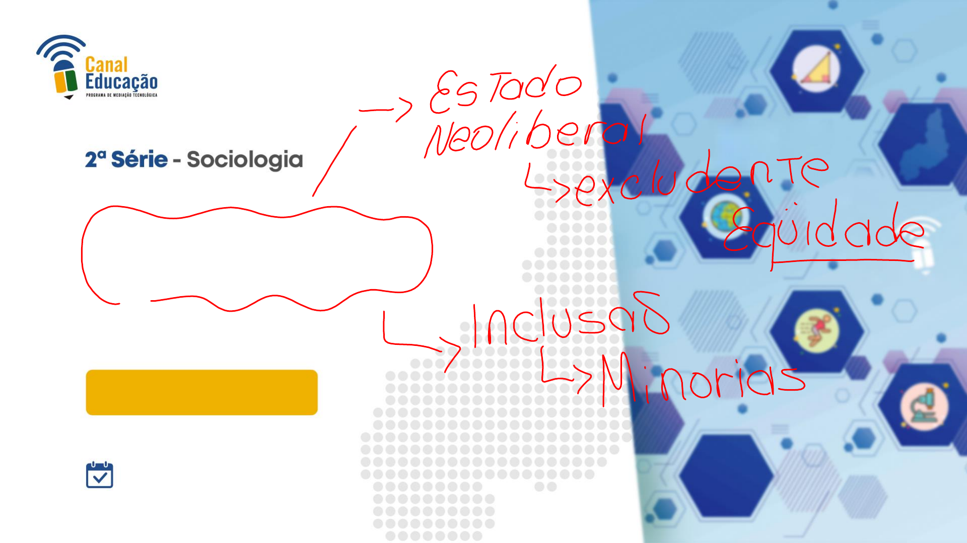 O ESTADO NO SÉCULO XXI E INCLUSÃO SOCIAL PROF. MARCIANO DE BRITO 31/05/2023 OBJETO DO CONHECIMENTO: • A exclusão e invisibilidade das minorias sociais. O Estado neoliberal e exclusão. A exclusão e invisibilidade das minorias sociais. O Estado no Século XXI e inclusão. HABILIDADE: • (EM13CHS204) Comparar e avaliar os processos de ocupação do espaço e a formação de territórios, territorialidades e fronteiras, identificando o papel de diferentes agentes (como grupos sociais e culturais, impérios, Estados Nacionais e organismos internacionais) e considerando os conflitos populacionais (internos e externos), a diversidade étnico- cultural e as características socioeconômicas, políticas e tecnológicas. OBJETIVOS: • Analisar o papel das organizações internacionais na elaboração e regulação de normas e acordos entre países, considerando as tensões entre interesses globais e locais. Entender o debate sobre o papel do Estado hoje. DA TEORIA À PRÁTICA: • Questões de ENEM e de vestibulares. Analisar o papel das organizações internacionais na elaboração e regulação de normas e acordos. 2 ROTEIRO DE AULA ESTADO NEOLIBERAL Alguns teóricos (Milton Friedman, Friedrich Hayek etc) achavam que a política social estava comprometendo a liberdade do mercado e até mesmo a liberdade individual, além de gerar déficits orçamentários para o Estado. Por causa disso, o bem-estar dos cidadãos deveria ficar por conta deles mesmos, ou seja, os serviços públicos deveriam ser privatizados e pagos por quem os utilizasse. Defendia-se o Estado mínimo (o que propunha o liberalismo), com o mínimo de intervenção estatal na vida das pessoas. 3 Nasceu o chamado Estado Neoliberal, cujas expressões mais claras foram os governos de Margareth Thatcher, na Inglaterra, e de Ronald Reagan, nos EUA. Os setores mais atingidos foram aqueles que beneficiavam diretamente os trabalhadores e os setores marginalizados da sociedade, como assistência social, habitação, transportes, saúde pública, previdência e direitos trabalhistas. Em contrapartida, os setores mais amparados foram as grandes empresas e o sistema financeiro. 4 As políticas neoliberais começaram a ser implementadas primeiramente na Inglaterra e nos EUA, em governos ultraconservadores nos anos 80, e logo se expandiram a outros países. Em 1989 foi um marco para a consolidação do neoliberalismo, quando no Consenso de Washington, o Banco Mundial e outras instituições implementaram metas: 5 ✓ Limitação das despesas do Estado, estimulando o fim dos subsídios à agricultura ou à indústria. ✓ Liberalização do mercado financeiro. ✓ Liberalização do comércio, eliminando taxas alfandegárias. ✓ Favorecimento do investimento estrangeiro. ✓ Privatização das empresas estatais. ✓ Introdução da concorrência nos diversos setores da economia. ✓ Garantia legal do direito de propriedade, com respeito às “patentes”. ✓ Reforma tributária e trabalhista. 6 7 1. Na década de 1990, durante seu mandato como ministro da fazenda e posteriormente presidente da república em dois pleitos consecutivos até 1º de janeiro de 2003, Fernando Henrique Cardoso implantou uma política que buscava, além da estabilidade econômica, uma maior aproximação do Brasil com o comércio internacional. Para muitos analistas, o alicerce dessa política foi edificado sobre as ideias do neoliberalismo. Pode ser considerado como uma das estratégias dessa política no Brasil: a) a ampliação da participação do Estado no setor terciário. b) a privatização de empresas estatais pelo governo. c) o investimento maciço em infraestrutura de produção. d) a recuperação salarial da classe trabalhadora 2. De acordo com o geógrafo David Harvey, a corrente das práticas político- econômicas que propõe que o bem-estar humano pode ser mais bem promovido liberando-se as capacidades empreendedoras individuais no âmbito de uma estrutura institucional, caracterizada por sólidos direitos de propriedade privada, expansão das forças mercadológicas, qualidade e integridade monetária e intervenção mínima do Estado na economia, refere- se ao: a) socialismo. b) keynesianismo. c) Estado de bem-estar social. d) Liberalismo. e) neoliberalismo. 8 O caminho para o qual apontam essas reformas é a desregulação da economia, diminuir ou até eliminar os obstáculos à livre- concorrência. Na prática, significa que o Estado não deveria mais interferir na economia, investindo no crescimento econômico do país. Tratava-se, na verdade, da construção de um mundo “paradisíaco” para aqueles que vivem das rendas do capital. 9 10 3. Durante quase todo o século XX o Estado foi um dos agentes fundamentais da organização das sociedades por meio do planejamento territorial. A ideologia do neoliberalismo rompe com essa forma até então característica da relação entre o Estado e a Sociedade. Assinale entre as opções abaixo aquela que resume os argumentos dessa ideologia: a) A eficiência da organização econômica é atingida quando o Estado orienta suas atividades pelas regras da empresa privada. b) Os recursos arrecadados em impostos pelo Estado devem visar ao investimento em infra-estrutura, como a refinação de petróleo, produção de aço e telecomunicações. c) A lógica da cobrança de impostos é prover o Estado de recursos para priorizar o desenvolvimento da pesquisa, do bem-estar social e dos ramos estratégicos à soberania nacional. d) A ação do Estado deve sobrepor-se aos mecanismos do mercado, corrigindo-os e substituindo-os de acordo com a demanda social. e) O papel do Estado é o de complemento das empresas privadas por sua presença nos setores que levem ao desenvolvimento global da sociedade. O ESTADO NO SÉCULO XXI E A INCLUSÃO SOCIAL 11 12 ✓ A equidade tem como objetivo promover um tratamento mais justo entre as pessoas. Parte-se do princípio de que pessoas diferentes precisam ser tratadas de fo