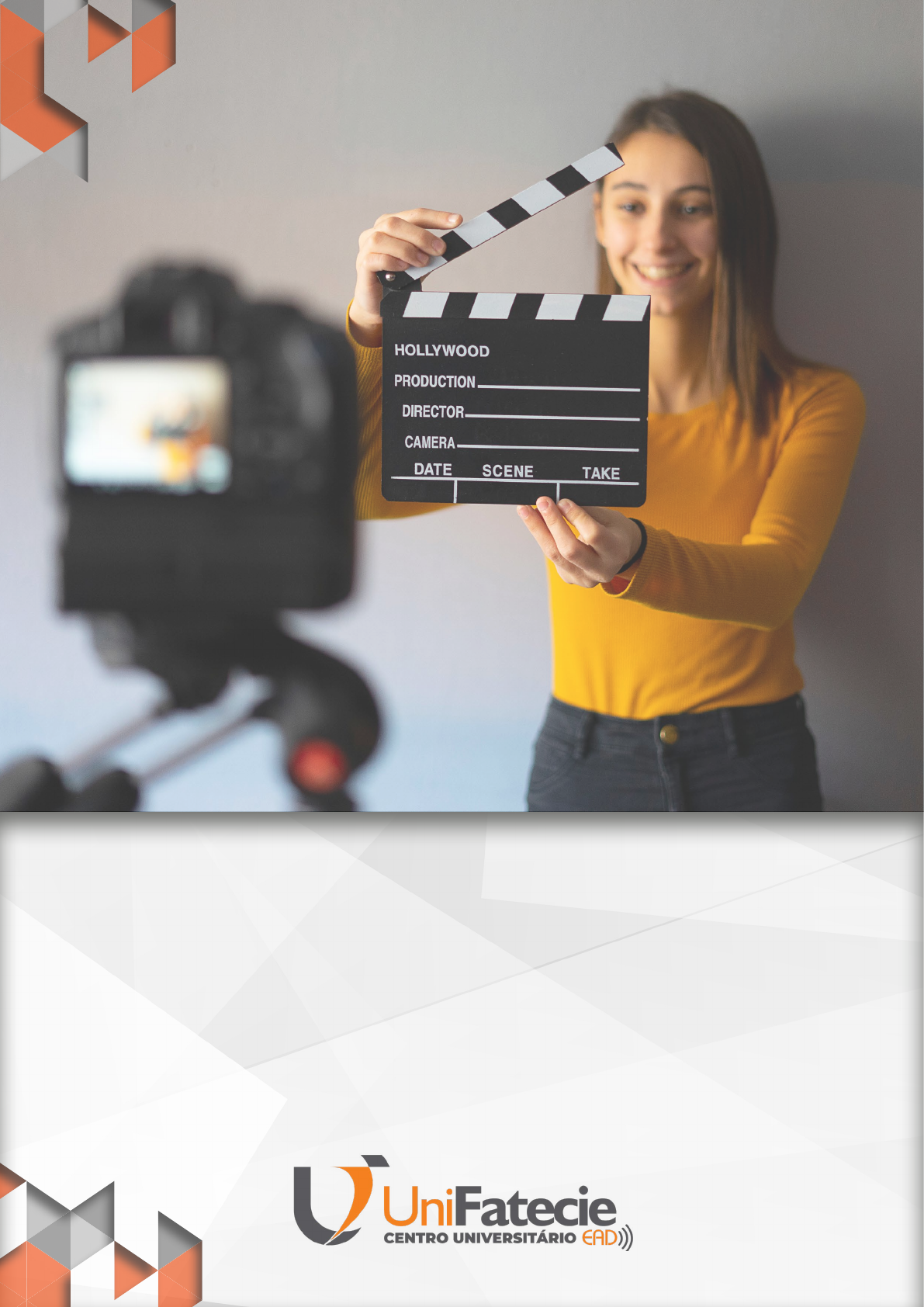 PRODUÇÃO E EDIÇÃO DE AUDIOVISUAL Professora Esp. Aleksa Marques REITOR Prof. Ms. Gilmar de Oliveira DIRETOR DE ENSINO PRESENCIAL Prof. Ms. Daniel de Lima DIRETORA DE ENSINO EAD Prof. Dra. Geani Andrea Linde Colauto DIRETOR FINANCEIRO EAD Prof. Eduardo Luiz Campano Santini DIRETOR ADMINISTRATIVO Guilherme Esquivel SECRETÁRIO ACADÊMICO Tiago Pereira da Silva COORDENAÇÃO DE ENSINO, PESQUISA E EXTENSÃO Prof. Dr. Hudson Sérgio de Souza COORDENAÇÃO ADJUNTA DE ENSINO Prof. Dra. Nelma Sgarbosa Roman de Araújo COORDENAÇÃO ADJUNTA DE PESQUISA Prof. Ms. Luciana Moraes COORDENAÇÃO ADJUNTA DE EXTENSÃO Prof. Ms. Jeferson de Souza Sá COORDENAÇÃO DO NÚCLEO DE EDUCAÇÃO A DISTÂNCIA Prof. Me. Jorge Luiz Garcia Van Dal COORDENAÇÃO DOS CURSOS - ÁREAS DE GESTÃO E CIÊNCIAS SOCIAIS Prof. Dra. Ariane Maria Machado de Oliveira COORDENAÇÃO DOS CURSOS - ÁREAS DE T.I E ENGENHARIAS Prof. Me. Arthur Rosinski do Nascimento COORDENAÇÃO DOS CURSOS - ÁREAS DE SAÚDE E LICENCIATURAS Prof. Dra. Katiúscia Kelli Montanari Coelho COORDENAÇÃO DO DEPTO. DE PRODUÇÃO DE MATERIAIS Luiz Fernando Freitas REVISÃO ORTOGRÁFICA E NORMATIVA Beatriz Longen Rohling Caroline da Silva Marques Carolayne Beatriz da Silva Cavalcante Geovane Vinícius da Broi Maciel Jéssica Eugênio Azevedo Kauê Berto PROJETO GRÁFICO E DIAGRAMAÇÃO André Dudatt Carlos Firmino de Oliveira Vitor Amaral Poltronieri ESTÚDIO, PRODUÇÃO E EDIÇÃO Carlos Eduardo da Silva DE VÍDEO Carlos Henrique Moraes dos Anjos Yan Allef FICHA CATALOGRÁFICA Dados Internacionais de Catalogação na Publicação - CIP M357p Marques, Aleksa Produção e edição de audiovisual / Aleksa Marques. Paranavaí: EduFatecie, 2022. 88 p. 1. Gravação em vídeo . 2. Comunicação de massa. 3. Multimeios. I. Centro Universitário UniFatecie. II. Núcleo de Educação a Distância. III. Título. CDD:23.ed. 791.43 Catalogação na publicação: Zineide Pereira dos Santos – CRB 9 /1577 As imagens utilizadas neste material didático são oriundas dos bancos de imagens Shutterstock . 2022 by Editora Edufatecie. Copyright do Texto C 2022. Os autores. Copyright C Edição 2022 Editora Edufatecie. O conteúdo dos artigos e seus dados em sua forma, correção e confiabilidade são de responsabilidade exclusiva dos autores e não representam necessariamente a posição oficial da Editora Edufatecie. Permitido o download da obra e o compartilhamento desde que sejam atribuídos créditos aos autores, mas sem a possibilidade de alterá-la de nenhuma forma ou utilizá-la para fins comerciais. https://www.shutterstock.com/pt/ https://unifatecie.edu.br/ 3 AUTORA Professora Esp. Aleksa Marques - Formada em Comunicação Social - Jornalismo (Unopar); - Especialista em Criação e Produção Audiovisual (Pitágoras); - Pós-graduanda de MBA em Comunicação e Mídias Digitais (UniFatecie); - Professora de Fotografia EAD (UniFatecie); - Professora de Audiovisual EAD (UniFatecie). Trabalhou com produção de cinema entre 2016-2019 e produção e coordenação de TV entre 2019-2022 e trabalha atualmente na TV Maringá - Band. CURRÍCULO LATTES: http://lattes.cnpq.br/6071843806766202 http://lattes.cnpq.br/6071843806766202 4 Olá, aluno (a), Como amante do conhecimento, fico muito feliz que esteja aqui. A disciplina de Audiovisual irá agregar muito em sua vida, pois é uma área que está muito presente em nossos dias, nos mais diversos momentos. O audiovisual pode ser encontrado na televisão, no Youtube, plataformas de strea- ming, no celular, nas animações, nos jogos... enfim. Há milhares de maneiras de se criar produtos audiovisuais e de consumí-lo. Na Unidade I deste material, vamos entender um pouco mais sobre a história do audiovisual e sua contextualização, além de estudar os primeiros passos para se fazer uma produção desde a pré-produção, elaboração do roteiro e definição de equipe, por exemplo. Já na Unidade II, daremos seguimento às etapas da produção e sairemos do pla- nejamento para entrar no plano da execução. Dá escolha dos atores à definição dos locais das gravações. Direção de arte à continuidade, que diga-se de passagem é uma etapa de extrema importância e você irá entender o motivo. Na Unidade III, abordaremos a produção propriamente dita como equipe, a gra- vação de imagens e do áudio, além de passar pelos processos de montagem de todo o material captado e da decupagem do conteúdo. Um processo também importante. A última Unidade será destinada à pós-produção de seu produto. A forma como ele será editado pode mudar toda sua estrutura, por isso é de suma relevância pensar todo o processo antes de iniciar. Veremos também os principais softwares utilizados na atualidade para ajudar os criadores no processo final. Se tudo isso soa estranho e trabalhoso para você, querido (a) aluno (a), não se preocupe. Estou aqui para te auxiliar na criação de suas peças audiovisuais de forma simples e leve. O importante aqui é você aprender e fixar o conteúdo de forma agradável. Vamos lá? Prepare a pipoca, o filme vai começar! Prof. Esp. Aleksa Marques APRESENTAÇÃO DO MATERIAL SUMÁRIO 5 . . . . . . . . . . . . . . . . . . . . . . . . . . . . . . . . . . . . . . . . . . . . . . . . . . . . . . . . . . . . . . . . . . . . . . . . . . . . . . . . . . . . . . . . . . . . . . . . . . . . . . . . . . . . . . . . . . . . . . . . . . . . . . . . . . . . . . . . . . . . . . . . . . . . . . . . . . . . . . . . . . . . . . . . . . . . . . . . . . . . . . . . . . . . . . . . . . . . . . . . . . . . . . . . . . . . . . . . . . . . . . . . . . . . . . . . . . . . . . . . . . . . . . . . . . . . . . . . . . . . . . . . . . . . . . . . . . . . . . . . . . . . . . . . . . . . . . . . . . . . . . . . . . . . . . . . . . . . . . . . . . . . . . . . . . . . . . . . . . . . . . . . . . . . . . . . . . . . . . . . . . . . . . . . . . . . . . . . . . . . . . . . . . . . . . . . . . . . . . . . . . . . . . . . . . . . . . 